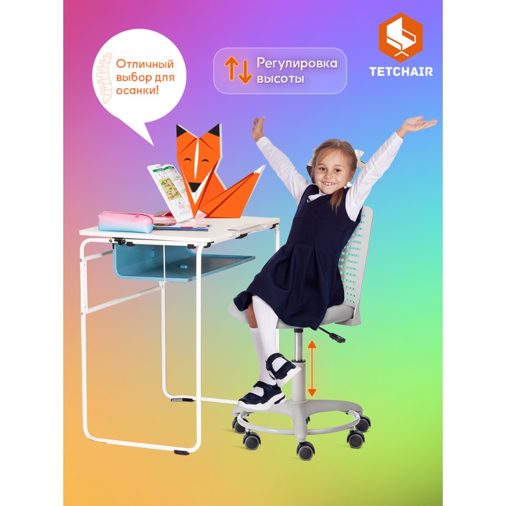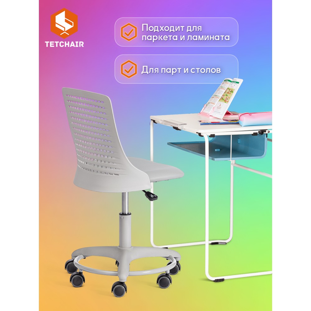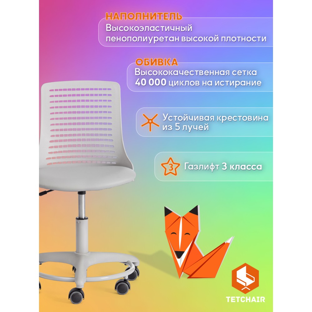 Оригинальное кресло KIDDY – это незаменимый предмет мебели в комнате вашего ребенка. Привлекательная модель серого цвета прекрасно дополнит любой интерьер и создаст в помещении атмосферу комфорта и уюта. Пластиковый каркас модели серого цвета долговечен и надежен, не теряет своего первоначального вида продолжительное время. Сиденье кресла выполнено из износостойкой высокопрочной экокожи серого цвета с наполнителем из мягкого пенополиуретана стандартной плотности. Экокожа, используемая при изготовлении кресла, выдерживает до 50 000 циклов на истирание по Мартиндейлу. Ткани с прочностью более 35 000 циклов являются самыми долговечными. Прочная и устойчивая пластиковая крестовина диаметром 500 мм оснащена металлической подставкой для ног, которая позволит ребенку расположиться на кресле с комфортом и удобством. Бесшумные высококачественные прорезиненные ролики не повреждают поверхность, подойдут для использования на паркете и ламинате. Ролики и крестовина в креслах бренда TETCHAIR соответствуют стандарту BIFMA. Во всех креслах бренда TETCHAIR используются газлифты 3 класса, он способен выдерживать вес до 80 кг. Яркая расцветка, привлекательный дизайн, крепкое основание, эргономичная спинка и надежный механизм регулировки высоты будут доставлять удовольствие, восхищать вас и вашего ребенка долгие годы. Модель поставляется в разобранном виде. Необходима несложная сборка по прилагаемой инструкции. Максимальная нагрузка модели 80 кг.