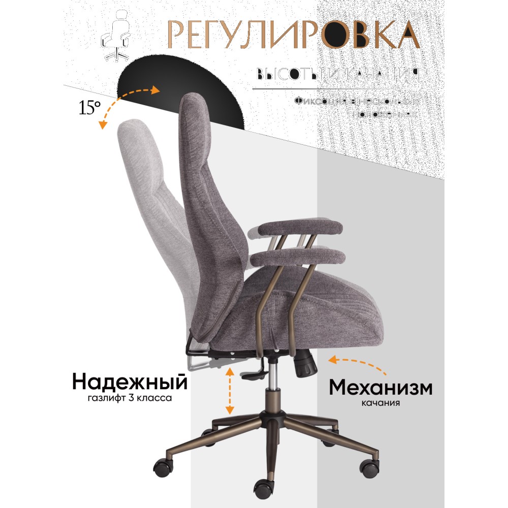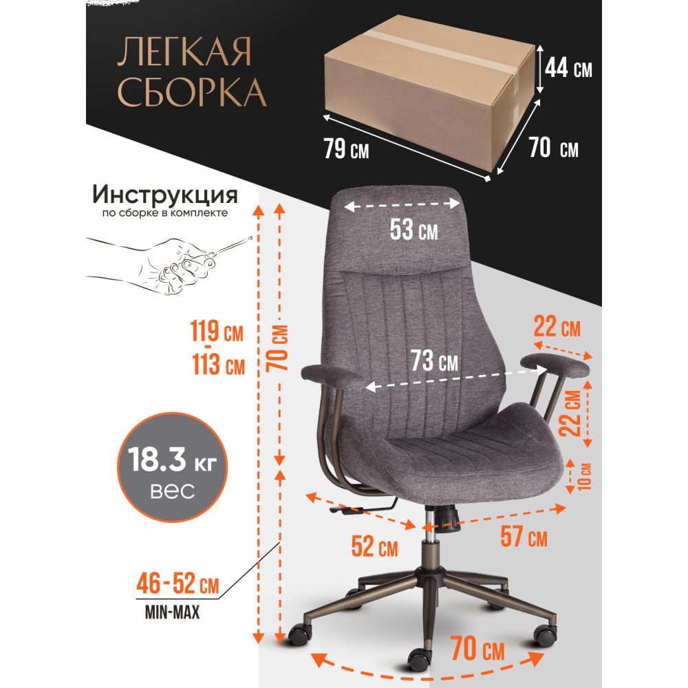 Кресло MAJOR действительно является отличным выбором для офисных пространств благодаря своему качеству, функциональности и эстетическому дизайну. Рассмотрим его преимущества более подробно: Основание: 5-лучевая стальная крестовина обеспечивает стабильность и надежность, а вороненая сталь придает современный вид. Диаметр 700 мм. Ролики: Полиуретановые ролики защищают полы от повреждений и подходят для любых типов покрытий, включая паркет и ламинат, что делает кресло универсальным. Пройдены испытания по тесту BIFMA. Газовый лифт: Класс 3 обеспечивает плавную регулировку высоты, увеличивая комфорт пользователя. Цвет "вороненая сталь". Механизм: Возможность изменения высоты сидения и наклона спинки с фиксацией в нескольких положениях дает возможность настроить кресло под индивидуальные предпочтения пользователя, а регулировка жесткости качания способствует комфортному отдыху во время работы. Подлокотники: Фиксированные подлокотники из стальной трубы с покрытием "вороненая сталь" с мягкими накладками обеспечивают дополнительную поддержку и комфорт, особенно при длительной работе. Наполнение и каркас: Использование первичных материалов, таких как фанера 15 мм и ППУ плотность до 30кг/м3, гарантирует долговечность и комфорт. Класс эмиссии Е1 подтверждает безопасность материалов. Обивка: Ткань рогожка с высокой износостойкостью (не менее 50000 циклов по тесту Мартиндейла) обеспечивает долгий срок службы и сохранение эстетического вида кресла. Вес: Легкое кресло с весом всего 19 кг облегчит его перемещение по пространству. Максимальная нагрузка до 120 кг делает кресло подходящим для большинства пользователей. Кресло MAJOR сочетает в себе стильный дизайн, прочность и функциональность, что делает его отличным выбором для офисного или домашнего пространства.