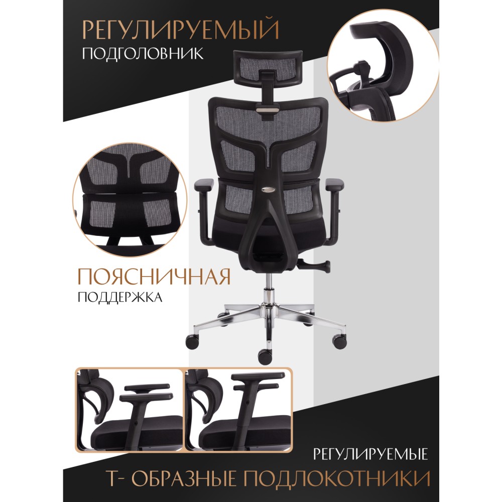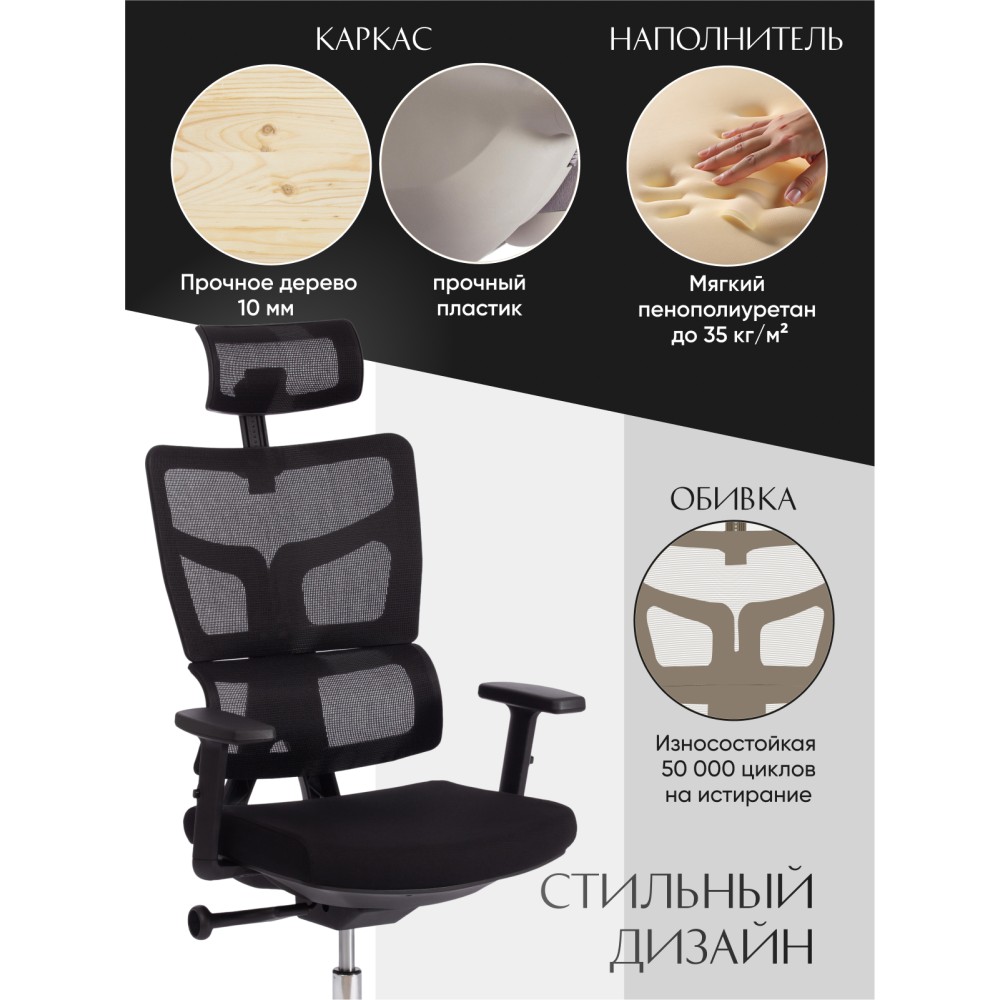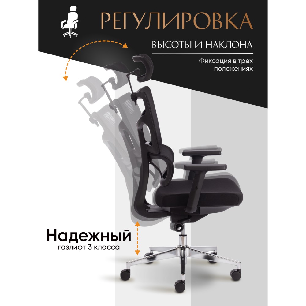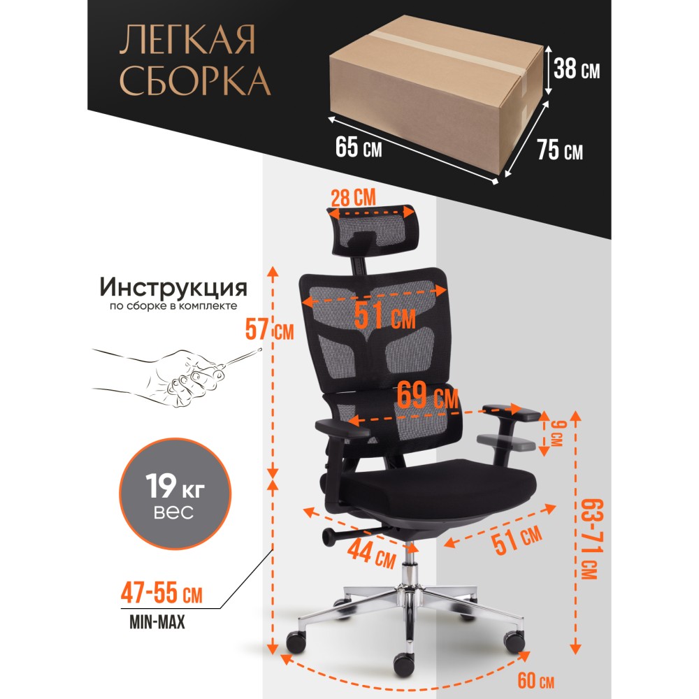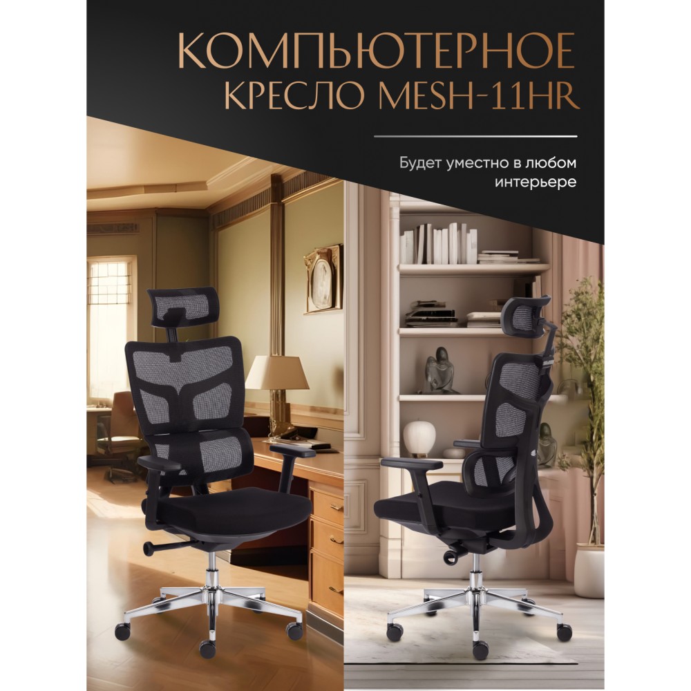 Удобное компьютерное кресло MESH-11HR из коллекции OFFICE идеально дополнит интерьер вашего рабочего кабинета в доме или офисе. Надежный и долговечный каркас выполнен из прочного пластика и фанеры. Благодаря наполнителю из пенополиуретана высокой плотности мягкое сиденье может принимать необходимую форму и быстро возвращаться в исходное состояние. Черное тканевое сиденье в сочетании с сетчатой спинкой не требует сложного ухода, отлично впишется в любую обстановку. Пластиковые T-образные подлокотники настраиваются по высоте. Металлическая хромированная крестовина основательна и устойчива к усиленной эксплуатации. Высота кресла регулируется, наклон фиксируется в трех положениях. Бесшумные ролики из полиуретана обеспечивают плавный ход, минимизируют повреждения пола, подойдут для использования на паркете и ламинате. Настраиваемый подголовник и поясничная поддержка добавят дополнительный комфорт, помогут провести рабочий день без усталости. Компьютерное кресло MESH-11HR будет хорошо смотреться в любом помещении, домашнем кабинете или офисе, восхитит вас своей функциональностью и практичностью. Максимальная нагрузка модели 120 кг. Кресло поставляется в разобранном виде, необходима несложная сборка по прилагаемой инструкции.