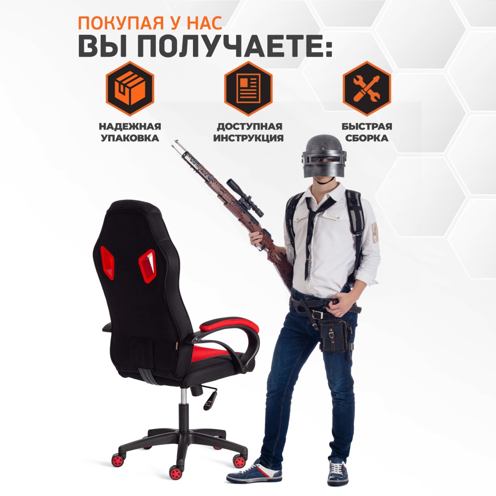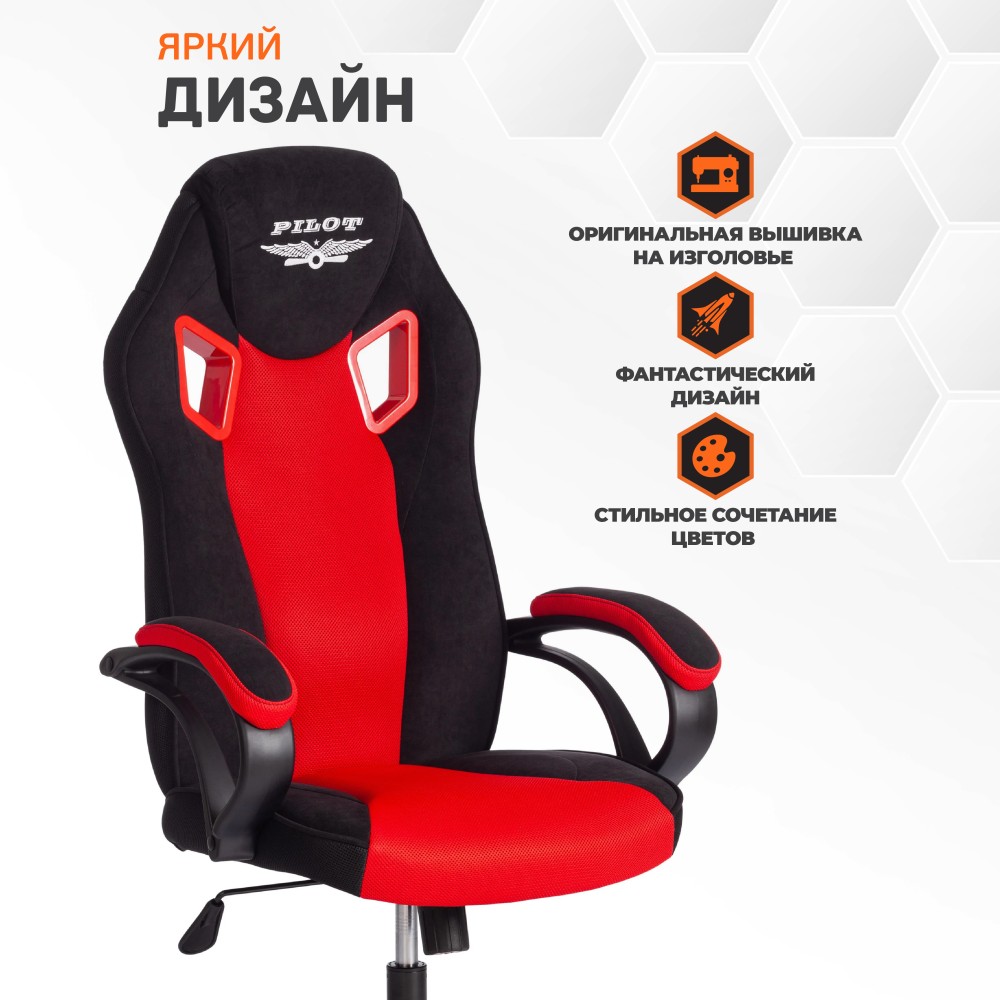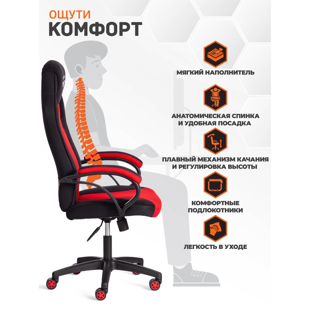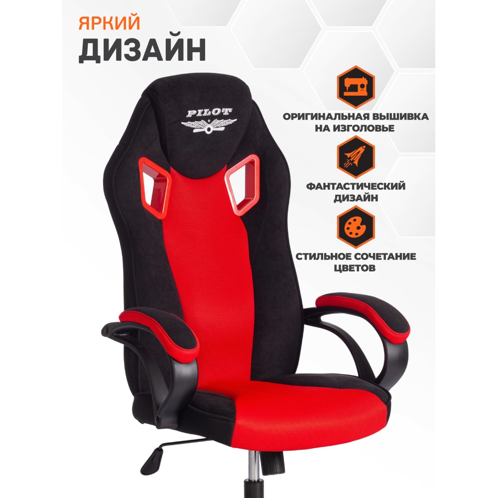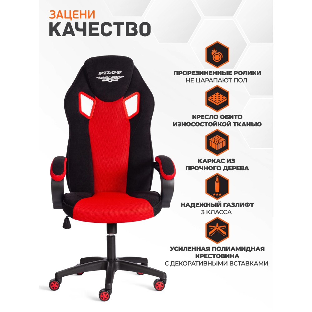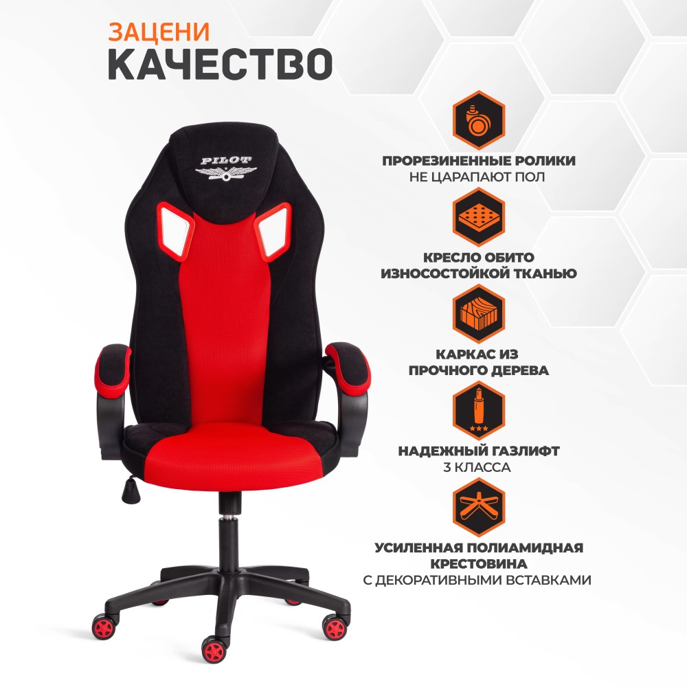 Оригинальный дизайн геймерского кресла - Pilot создаст в вашем доме или офисе атмосферу комфорта. Модель прекрасно впишется в интерьер игрового пространства, переговорной комнаты офиса, городской квартиры или загородного дома. Каркас изготовлен из фанеры толщиной более 10 мм. Такой материал отличается практичностью, прочностью и основательностью. Мягкое сиденье с наполнителем из пенополиуретана (до 35 кг/м2) стандартной плотности обладает высокими эксплуатационными качествами, не меняет форму на протяжении длительного времени. Кресло регулируется по высоте. Механизм качания с фиксацией в одном положении настраивается при помощи специального барабана. Полиамидная крестовина с декоративными вставками надёжна и устойчива к усиленной эксплуатации. На ней есть специальные насечки для предотвращения соскальзывания ног. Благодаря высококачественным полиамидным роликам с декоративными вставками кресло легко перемещается из одного помещения в другое. Колёсики дополнительно прорезинены, не царапают напольное покрытие и подходят для использования на паркете и ламинате. Ролики и крестовина в креслах бренда TETCHAIR соответствуют стандарту BIFMA. Во всех креслах бренда TETCHAIR используются газлифты 3 класса, он способен выдерживать вес до 120 кг. Анатомическая спинка и удобная посадка повторяют естественные изгибы спины, поддерживая позвоночник и поясницу в нужных точках. Небольшие отверстия для вентиляции повысят комфорт работы и долговечность самой модели. Подголовник кресла обеспечит возможность отдыха для головы, а вышивка предаст свою уникальность. Декоративная стежка придаёт креслу особый стиль и удобство. Геймерское кресло долговечно и функционально, не нуждается в сложном уходе, будет радовать вас своим исходным видом на протяжении длительного времени. Спинка в форме гоночного кресла выглядит стильно, необычно и ярко. Данная модель представлена в во флоке черно-красного цвета. Ткань, используемая при изготовлении кресла, выдерживает до 50 000 циклов на истирание по Мартиндейлу. Ткани с прочностью более 35 000 циклов являются самыми долговечными. Кресло поставляется в разобранном виде. Необходима простая сборка по прилагаемой инструкции. Максимальная нагрузка 120 кг.