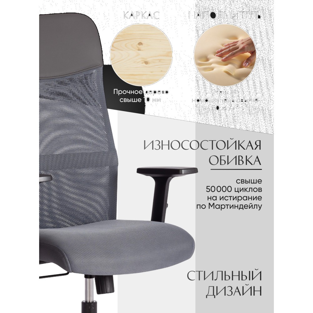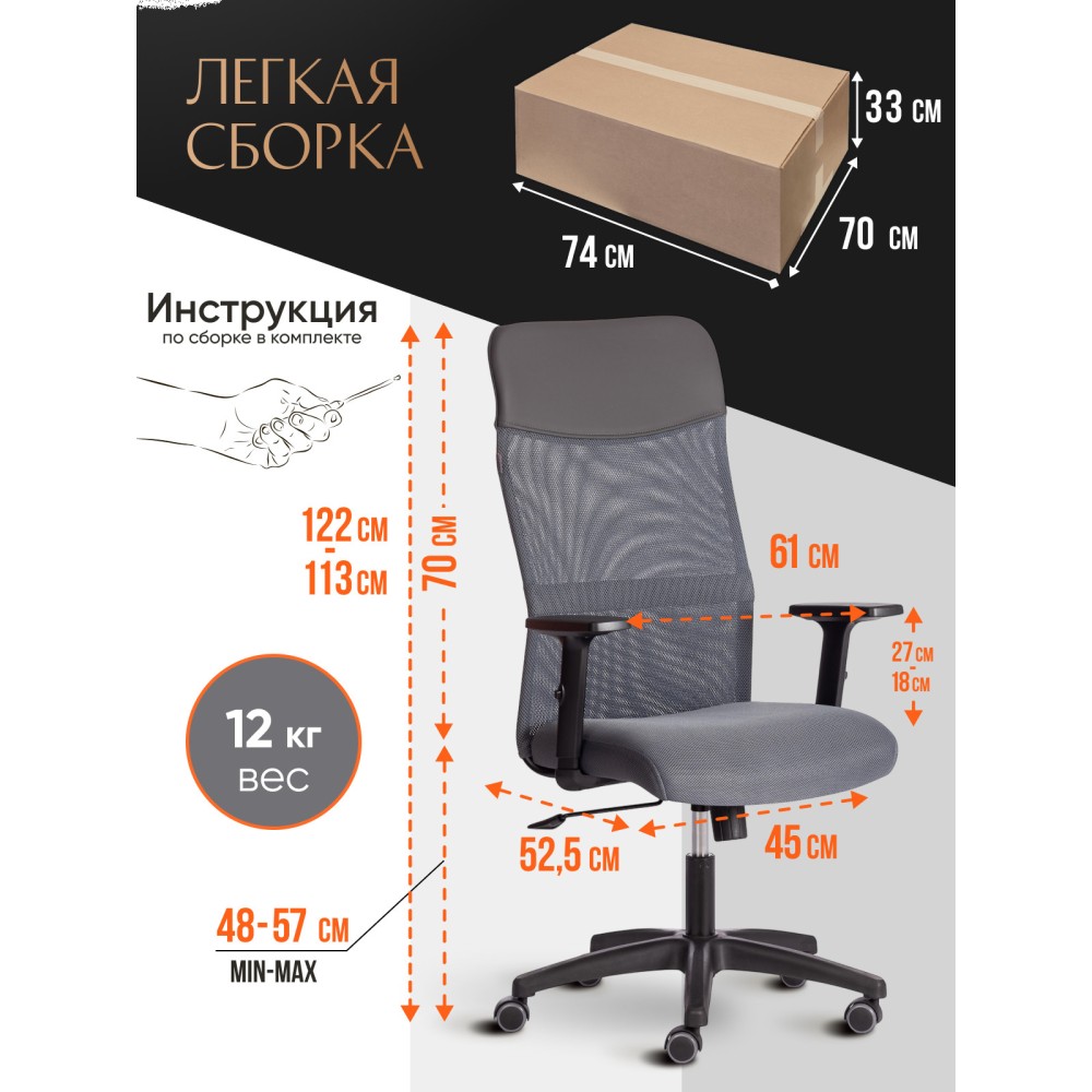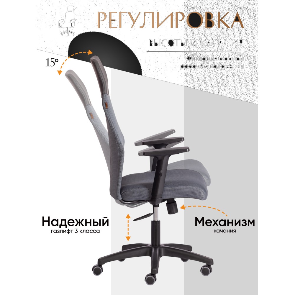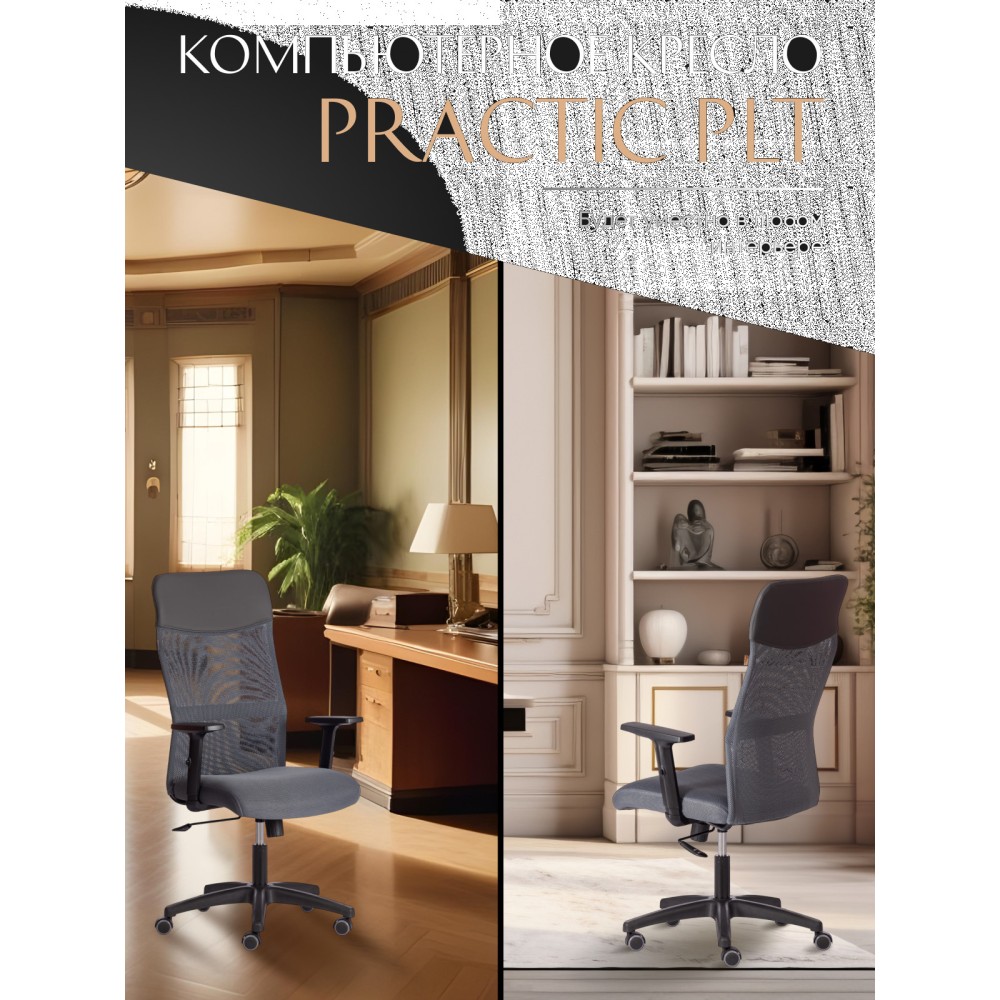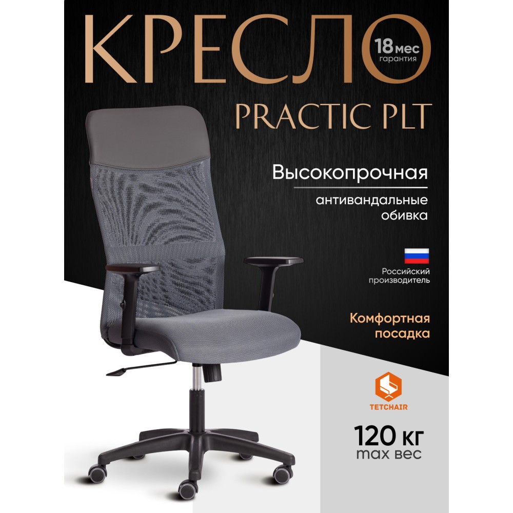 Практичное компьютерное кресло PRACTIC PLT – стильное решение для создания идеального интерьера в рабочем кабинете офиса или городской квартиры или загородного дома. Прочная 5-лучевая полиамидная крестовина диаметром 650 мм надежна и устойчива к усиленной эксплуатации. Подлокотники Т-образные с регулировкой по высоте, накладка из текстурированного пластика, механизм регулировки высоты сиденья и угла наклона до 15 градусов позволят принять комфортную позу и снять напряжение с позвоночника. Интегрированный в чехол подголовник сделает длительное времяпрепровождение за компьютером комфортным и приятным. Модель оборудована газлифтом 3 класса с ходом 100 мм. Мягкое сиденье с наполнителем из пенополиуретана плотностью не менее 30 кг/м3 обладает высокими эксплуатационными качествами, не меняет форму на протяжении длительного времени. Благодаря высококачественным полиамидным роликам кресло легко перемещается из одного помещения в другое. Колесики дополнительно прорезинены, не царапают напольное покрытие и подходят для использования на паркете и ламинате. Диаметр штока ролика – 11 мм. Анатомическая спинка и удобная посадка модели максимально точно подстраиваются под физические особенности тела человека. Компьютерное кресло обито сеткой плотностью 280 г/м2, обеспечивающей вентиляцию в летний период времени, а также износостойкой высококачественной искусственной кожей, не требующей сложного ухода. Сетка используемая при изготовлении кресла, выдерживает до 25 000 циклов на истирание по Мартиндейлу, экокожа 50 000 циклов. Модель серого цвета выглядит стильно и необычно, подчеркнет безупречный вкус владельца, будет радовать своей долговечностью, красотой и практичностью продолжительное время. Кресло поставляется в разобранном виде. Необходима простая сборка по прилагаемой инструкции. Максимальная нагрузка 120 кг.
