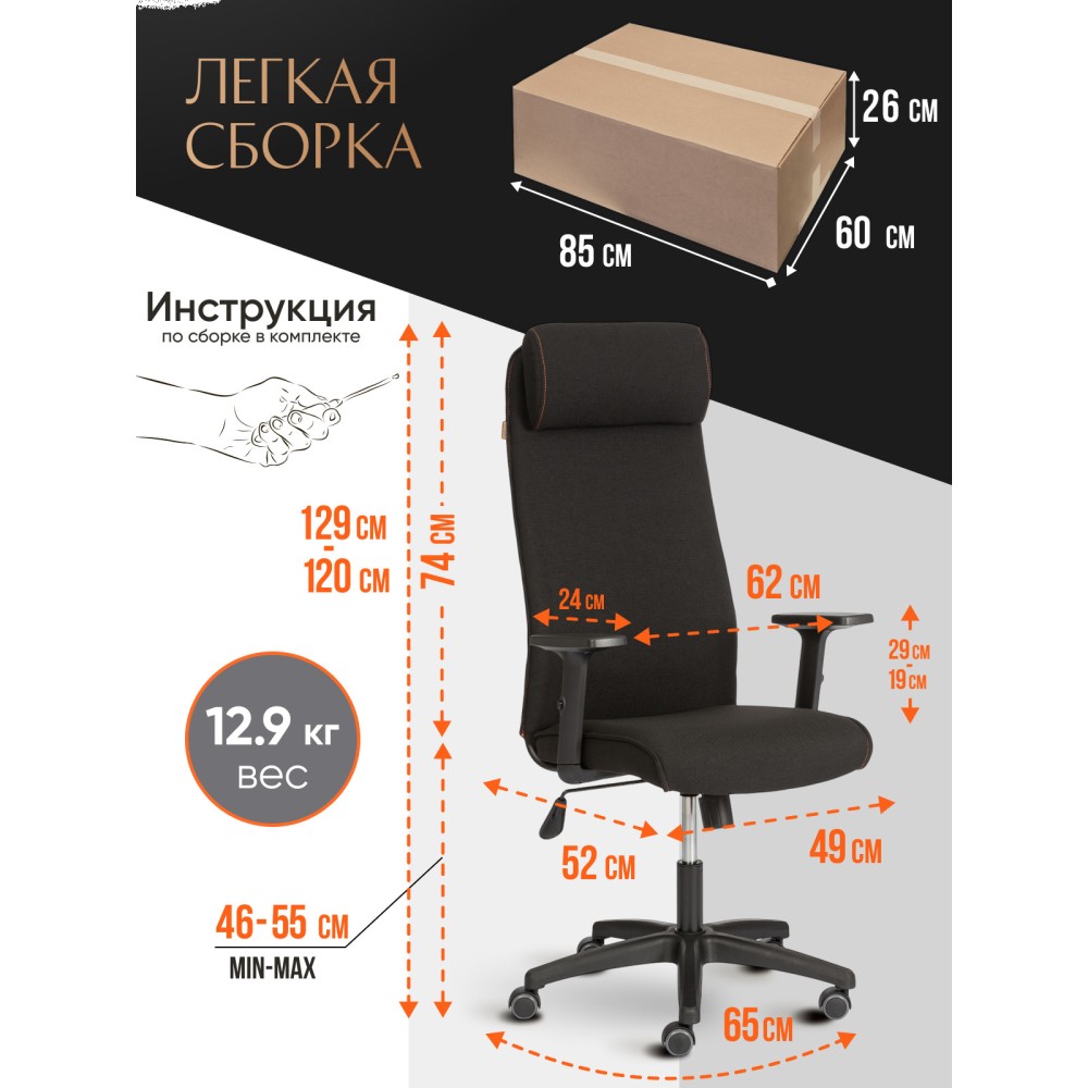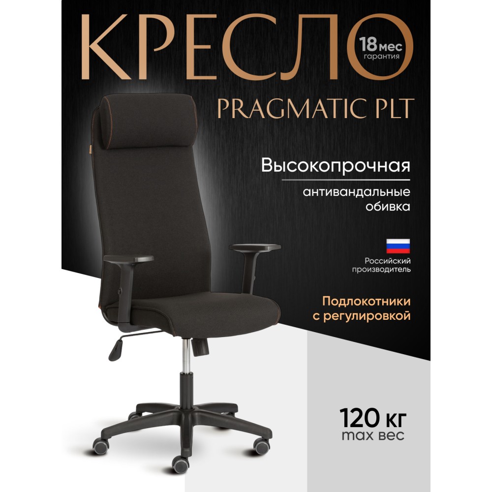 Кресло Pragmatic PLT — это удобное и функциональное офисное кресло, обладающее рядом характеристик, которые делают его привлекательным выбором для различных условий работы. Рассмотрим подробнее основные характеристики: 1. Наполнение: Сиденье выполнено из фанеры (10 мм) и первичного ППУ (полиуретановой пены) плотностью не менее 30 кг/м³, что гарантирует долговечность и комфорт. Спинка также имеет металлический каркас и аналогичное наполнение. 2. Обивка: Ткань рогожка с плотностью не менее 260 г/м² устойчива к износу и легко очищается, что сделает кресло долговечным в использовании. 3. Подголовник: Мягкий подголовник обеспечивает дополнительный комфорт, особенно в моменты отдыха. 4. Подлокотники: Т-образные подлокотники с регулировкой по высоте и накладками из текстурированного пластика обеспечивают дополнительный комфорт и поддержку для рук. 5. Газовый лифт: Черный газовый лифт 3 класса позволяет регулировать высоту сиденья примерно на 100 мм, обеспечивая комфортную посадку для пользователей разного роста. 6.Механизм наклона: Кресло имеет механизм изменения высоты и угла наклона спинки до 15 градусов с возможностью фиксации в рабочем положении, что способствует правильной осанке и уменьшает усталость во время длительной работы. 7.Основание: Кресло оснащено 5-лучевой полиамидной крестовиной диаметром 650 мм, что обеспечивает хорошую устойчивость и защиту от переворачивания. 8. Ролики: Прорезиненные полиуретановые ролики идеально подходят для использования на паркете и ламинате, предотвращая повреждения полов и обеспечивая плавное передвижение. 9. Вес и габариты: Вес кресла составляет 10,7 кг (нетто) и 12,95 кг (брутто), а габариты упаковки 85*60*26 см, что делает его достаточно компактным для транспортировки. 10. Вместимость: Кресло предназначено для пользователей весом до 120 кг, что делает его универсальным выбором для большинства людей. В целом, кресло Pragmatic PLT сочетает в себе эргономичные решения и качественные материалы, что делает его подходящим для офисного использования или домашнего рабочего пространства.