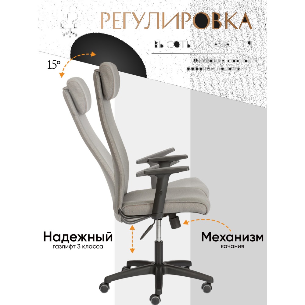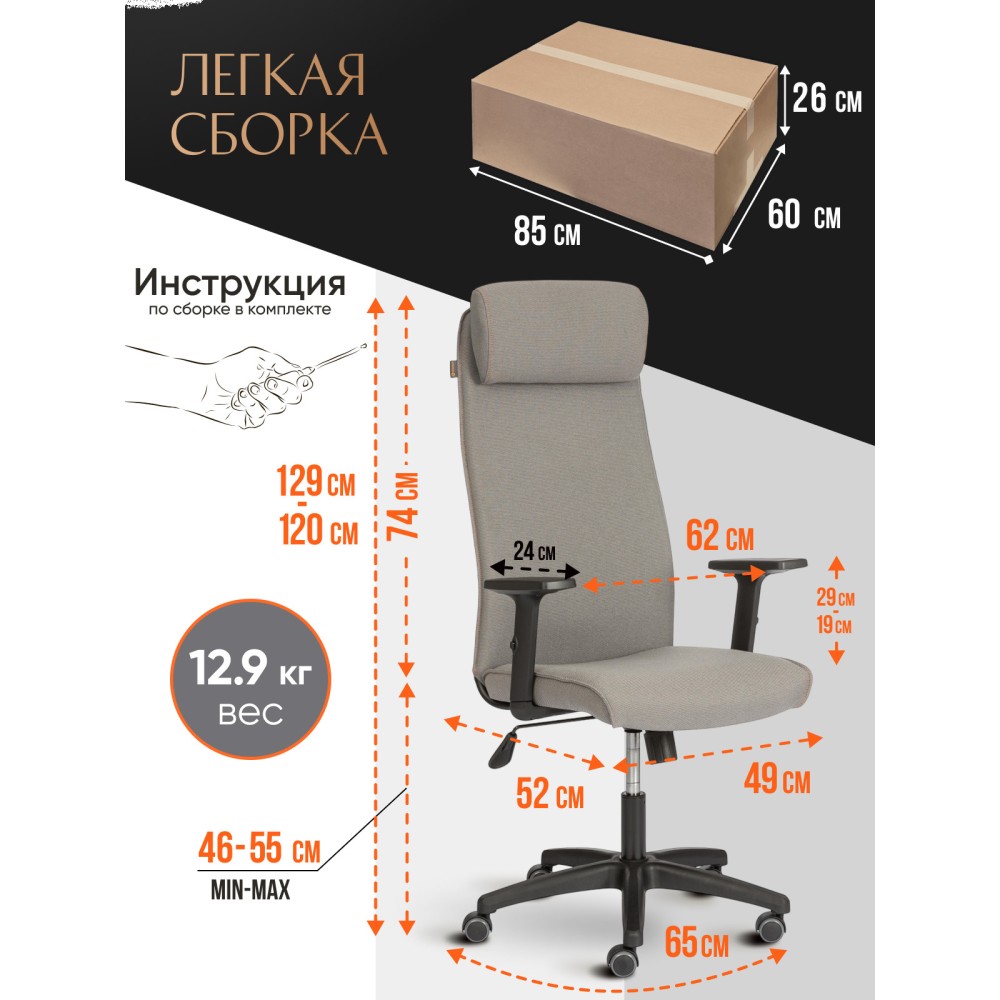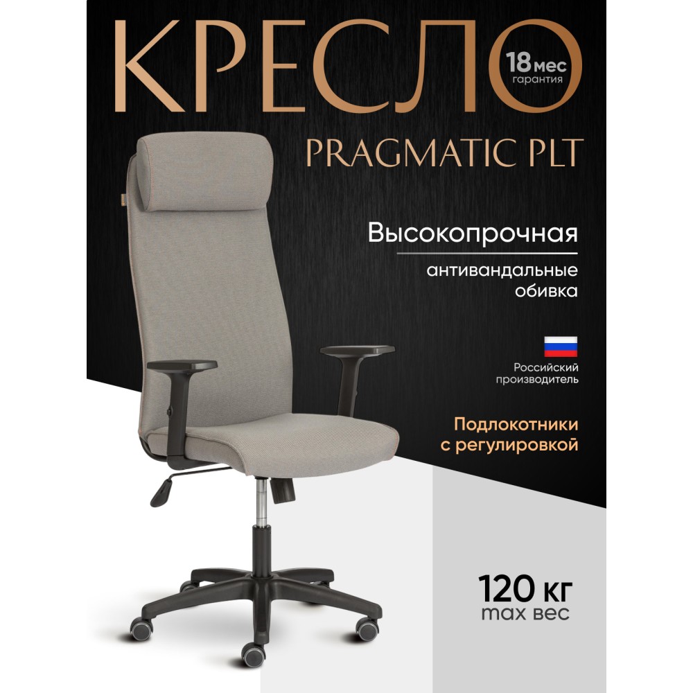 Кресло Pragmatic PLT — это удобное и функциональное офисное кресло, обладающее рядом характеристик, которые делают его привлекательным выбором для различных условий работы. Рассмотрим подробнее основные характеристики: 1. Наполнение: Сиденье выполнено из фанеры (10 мм) и первичного ППУ (полиуретановой пены) плотностью не менее 30 кг/м³, что гарантирует долговечность и комфорт. Спинка также имеет металлический каркас и аналогичное наполнение. 2. Обивка: Ткань рогожка с плотностью не менее 260 г/м² устойчива к износу и легко очищается, что сделает кресло долговечным в использовании. 3. Подголовник: Мягкий подголовник обеспечивает дополнительный комфорт, особенно в моменты отдыха. 4. Подлокотники: Т-образные подлокотники с регулировкой по высоте и накладками из текстурированного пластика обеспечивают дополнительный комфорт и поддержку для рук. 5. Газовый лифт: Черный газовый лифт 3 класса позволяет регулировать высоту сиденья примерно на 100 мм, обеспечивая комфортную посадку для пользователей разного роста. 6.Механизм наклона: Кресло имеет механизм изменения высоты и угла наклона спинки до 15 градусов с возможностью фиксации в рабочем положении, что способствует правильной осанке и уменьшает усталость во время длительной работы. 7.Основание: Кресло оснащено 5-лучевой полиамидной крестовиной диаметром 650 мм, что обеспечивает хорошую устойчивость и защиту от переворачивания. 8. Ролики: Прорезиненные полиуретановые ролики идеально подходят для использования на паркете и ламинате, предотвращая повреждения полов и обеспечивая плавное передвижение. 9. Вес и габариты: Вес кресла составляет 10,7 кг (нетто) и 12,95 кг (брутто), а габариты упаковки 85*60*26 см, что делает его достаточно компактным для транспортировки. 10. Вместимость: Кресло предназначено для пользователей весом до 120 кг, что делает его универсальным выбором для большинства людей. В целом, кресло Pragmatic PLT сочетает в себе эргономичные решения и качественные материалы, что делает его подходящим для офисного использования или домашнего рабочего пространства.