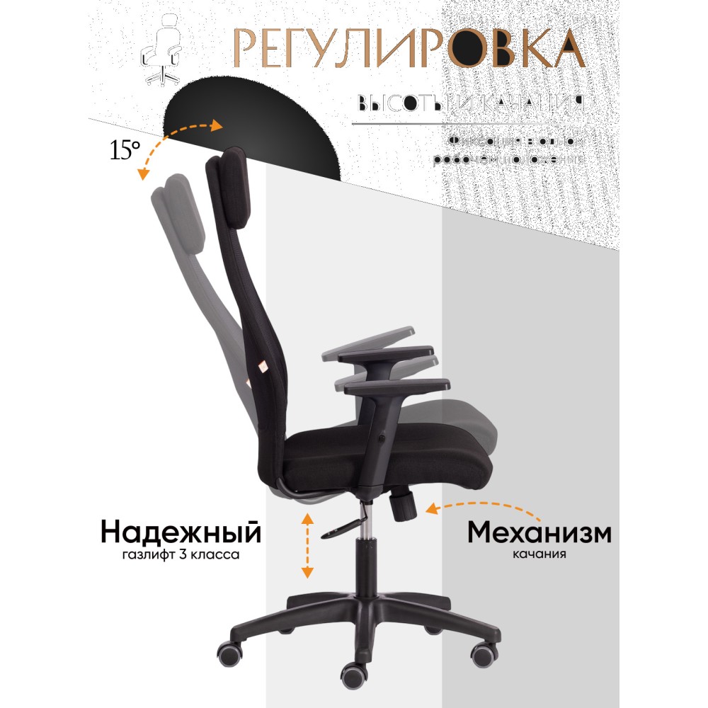 Компьютерное кресло PROFIT PLT удачно сочетает в себе черты функциональности, практичности и привлекательности. Современный дизайн модели позволит использовать ее в любом интерьере, как в офисе так и в домашнем кабинете. Надежная 5-лучевая полиамидная крестовина черного цвета диаметром 650 мм устойчива, прочна и имеет долгий срок службы. Кресло оснащено газлифтом 3 класса с ходом 100 мм, обеспечивающим подъем сиденья на нужную высоту. Высококачественные ролики дополнительно прорезинены для предотвращения повреждения напольного покрытия. Такие колесики отлично подходят для использования на паркете и ламинате. Диаметр штока - 11 мм. Подлокотники Т-образные с регулировкой по высоте, накладка из текстурированно пластика, механизм регулировки сиденья и угла наклона до 15 градусов, интегрированный в чехол мягкий подголовник помогут принять комфортную позу и снять напряжение с позвоночника.Компьютерное кресло обито сеткой плотностью 280 г/м2, обеспечивающей вентиляцию в летний период времени, а также тканью плотностью 270 г/м2, не требующей сложного ухода. Ткань, используемая при изготовлении кресла, выдерживает до 50 000 циклов на истирание по Мартиндейлу, сетка до 25 000 циклов. Сиденье и спинка с мягким наполнителем из пенополиуретана плотностью не менее 30 кг/м3 обладают долгим сроком службы, не меняют форму со временем, пропускают воздух, отводят влагу и не накапливают пыль. Компьютерное кресло PROFIT PLT серого цвета удобно, долговечно и функционально, не требует специального ухода, будет радовать вас своим первоначальным видом на протяжении длительного времени. Модель поставляется в разобранном виде. Необходима простая сборка по прилагаемой инструкции. Максимальная нагрузка 120 кг.