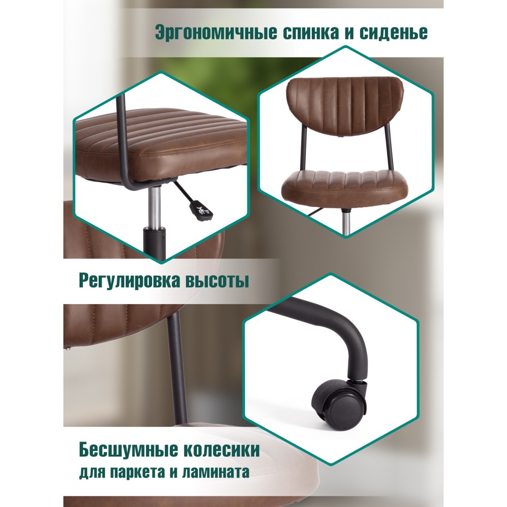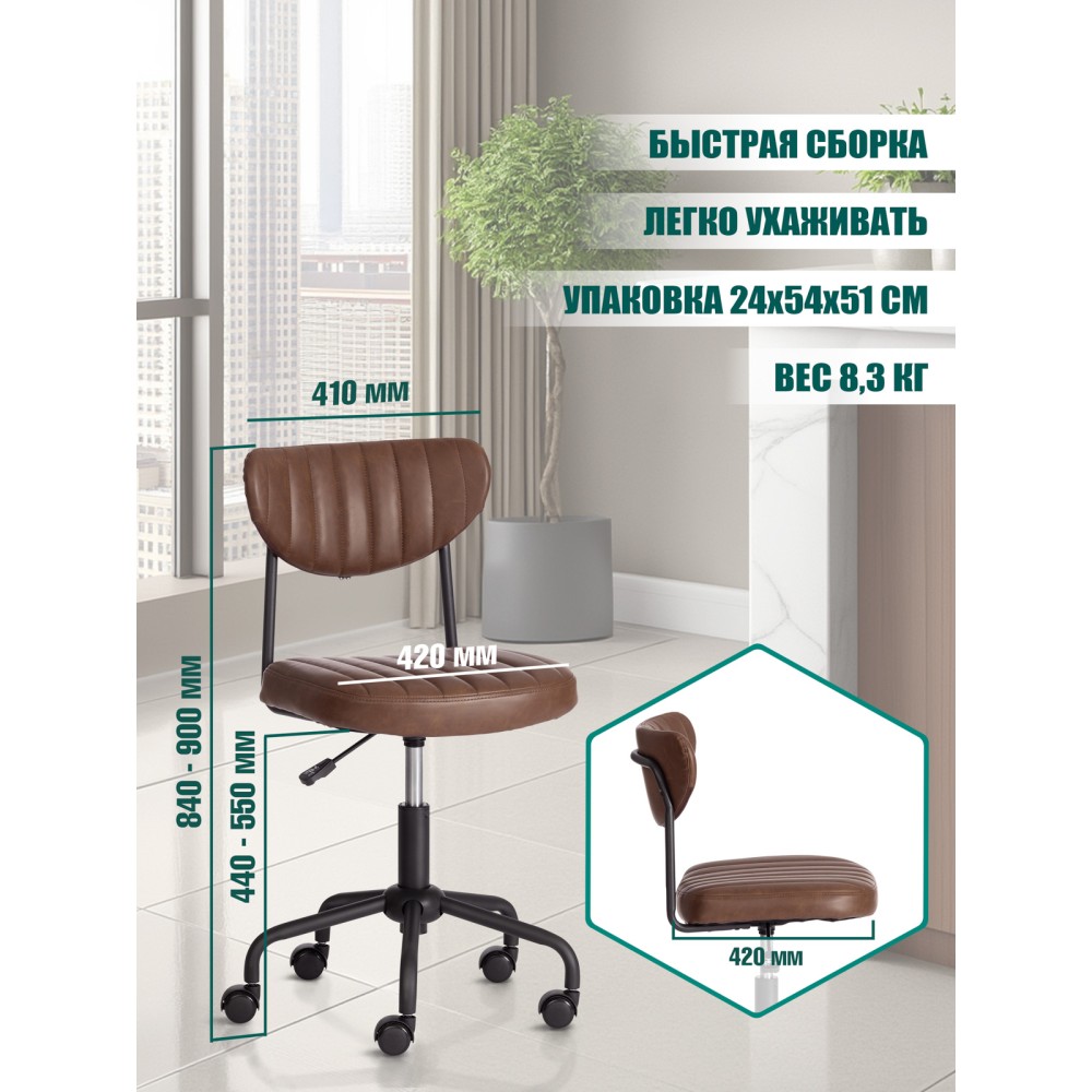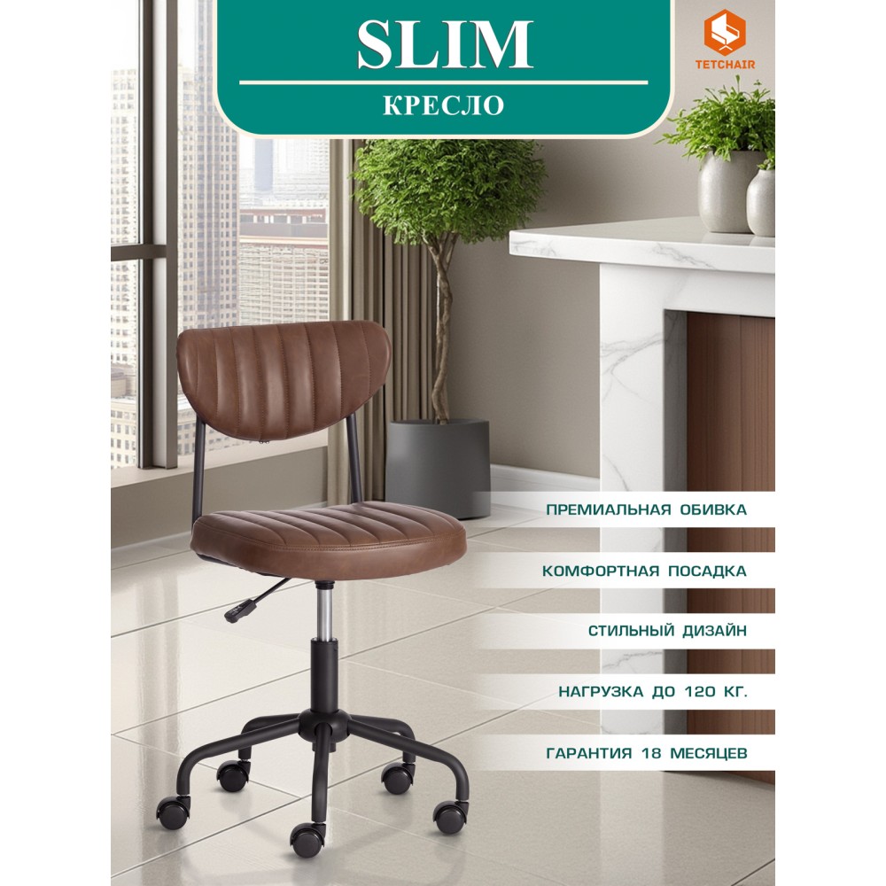 Привлекательный дизайн офисного кресла SLIM создаст в вашем доме или офисе атмосферу комфорта и элегантности. Модель прекрасно впишется в интерьер и рабочего кабинета, и переговорной комнаты. 5-лучевая стальная крестовина диаметром 540 мм прочна и устойчива к усиленной эксплуатации. Кресло регулируется по высоте. Модель оборудована надежным газлифтом 3 класса с ходом 80 мм. Мягкое сиденье с наполнителем из пенополиуретана плотностью 30 кг/м3 обладает высокими эксплуатационными качествами, не меняет форму на протяжении длительного времени. Благодаря высококачественным полиамидным роликам кресло легко перемещается из одного помещения в другое. Колесики дополнительно прорезинены, не царапают напольное покрытие и подходят для использования на паркете и ламинате. Диаметр штока ролика – 11 мм. Компьютерное кресло обито высокопрочной износостойкой экокожей. Такой материал водонепроницаем, прост в уходе, устойчив к истиранию. Сочетание черной крестовины и темно-коричневой обивки (Dark brown) выглядит стильно и современно. Выгнутая спинка и удобная посадка уменьшат дискомфорт в спине при длительном времяпрепровождении за компьютером. Кресло удобно, долговечно и функционально, не нуждается в сложном уходе, будет радовать вас своим исходным видом на протяжении длительного времени. Модель поставляется в разобранном виде. Необходима простая сборка по прилагаемой инструкции. Максимальная нагрузка 100 кг.