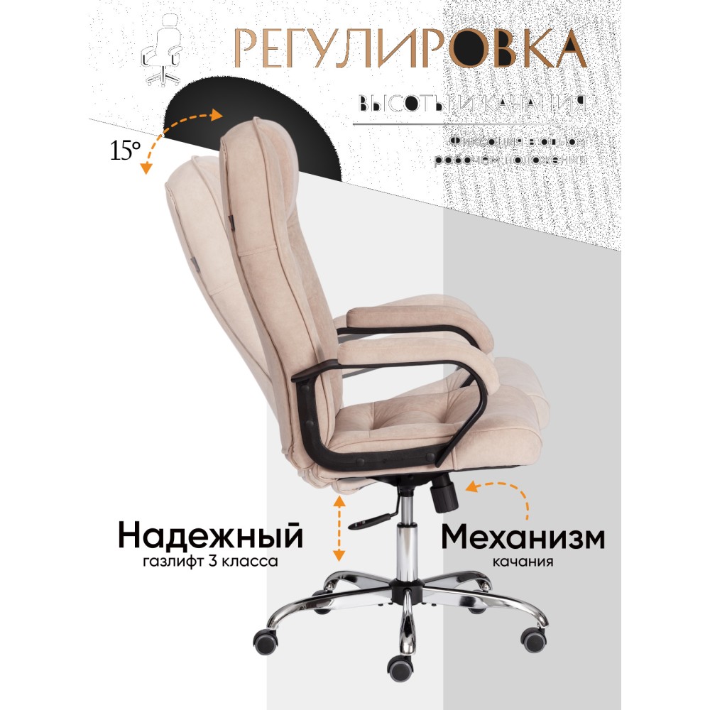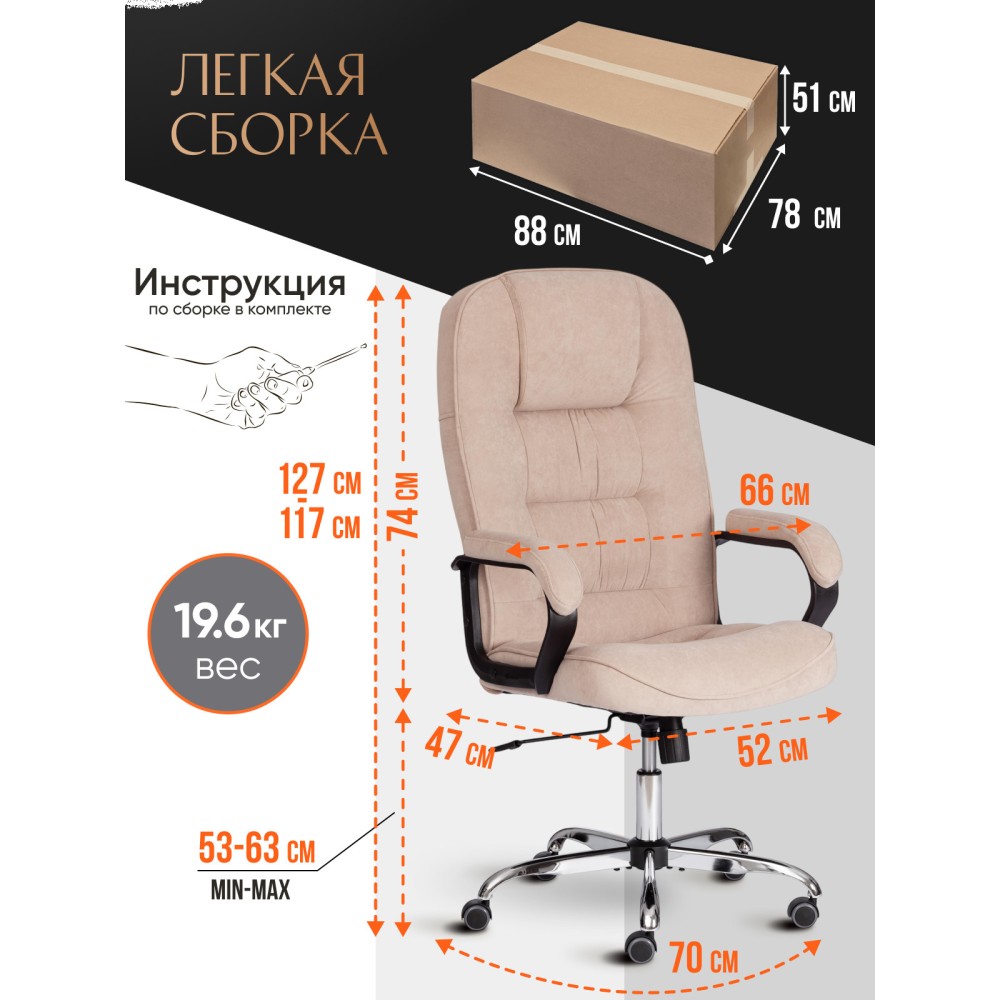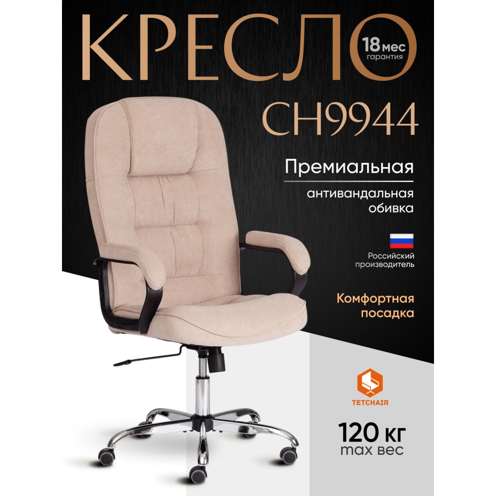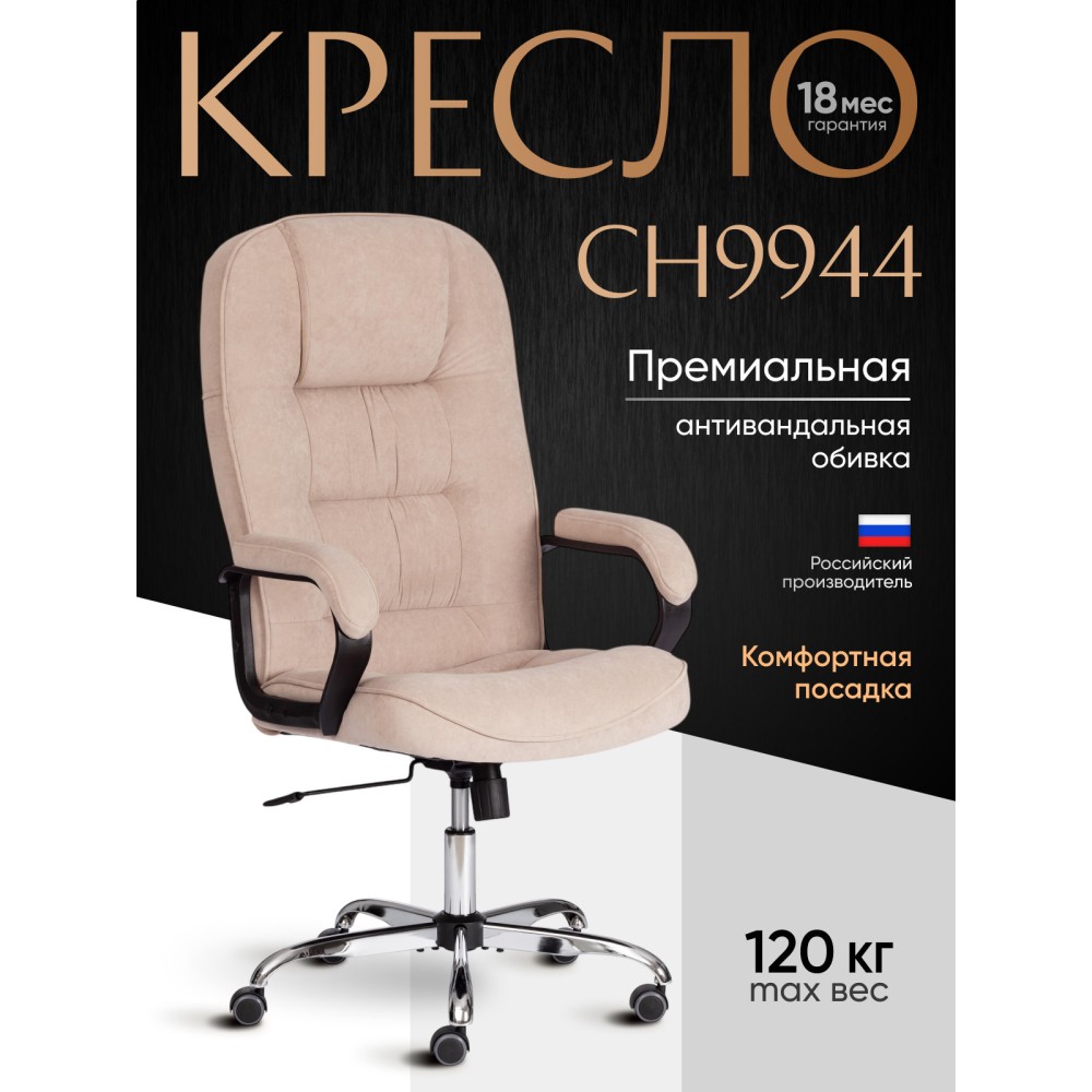 Компьютерное кресло СН9944 (22) хром из коллекции OFFICE из высокопрочной износостойкой экокожи - идеальное решение для кабинета руководителя или переговорной комнаты. Уникальная модель произведет впечатление на партнеров и клиентов своим презентабельным внешним видом, подчеркнет состоятельность вашей компании. Крепкий каркас выполнен из фанеры толщиной более 10 мм – экологически чистого, надежного и долговечного материала. Сиденье с мягким наполнителем из пенополиуретана (до 35 кг/м2) стандартной плотности обладает высокими эксплуатационными качествами, не меняет форму со временем. Офисное кресло регулируется по высоте и наклону с фиксацией в одном положении. Жесткость качания настраивается при помощи специального барабана. Металлическая хромированная крестовина устойчива, надежна, выглядит фундаментально и респектабельно. Высококачественные полиуретановые ролики с прорезиненными вставками позволяют бесшумно перемещать кресло с места на место, не оставляют следов на напольном покрытии, подходят для использования на паркете и ламинате. Ролики и крестовина в креслах бренда TETCHAIR соответствуют стандарту BIFMA. Во всех креслах бренда TETCHAIR используются газлифты 3 класса, он способен выдерживать вес до 120 кг. Компьютерные кресла обиты высокопрочной износостойкой экокожей, флоком. Такие материалы имеют долгий срок службы, просты в уходе, воздухопроницаемы. Обивка используемый при изготовлении кресел, выдерживает до 50 000 циклов на истирание по Мартиндейлу. Ткани с прочностью более 35 000 циклов являются самыми долговечными. Мебель, в которой используются такие ткани можно использовать не только дома но и в ресторанах, салонах красоты, приемных. Фиксированные пластиковые подлокотники с мягкими накладками, анатомическая спинка, вместительное сиденье обеспечат правильную посадку и снимут напряжение с позвоночника. Офисное кресло представлено в коричневом, черном, сером, белом и бежевом цветах. Модель поставляется в разобранном виде. Необходима простая сборка по прилагаемой инструкции. Максимально нагрузка 120 кг.