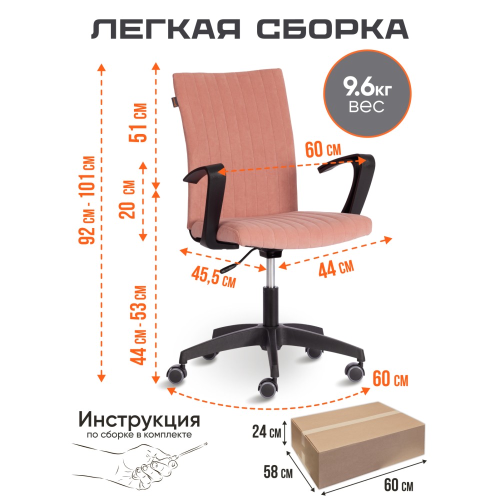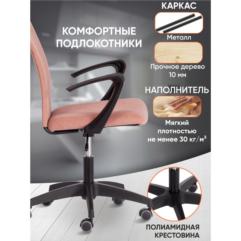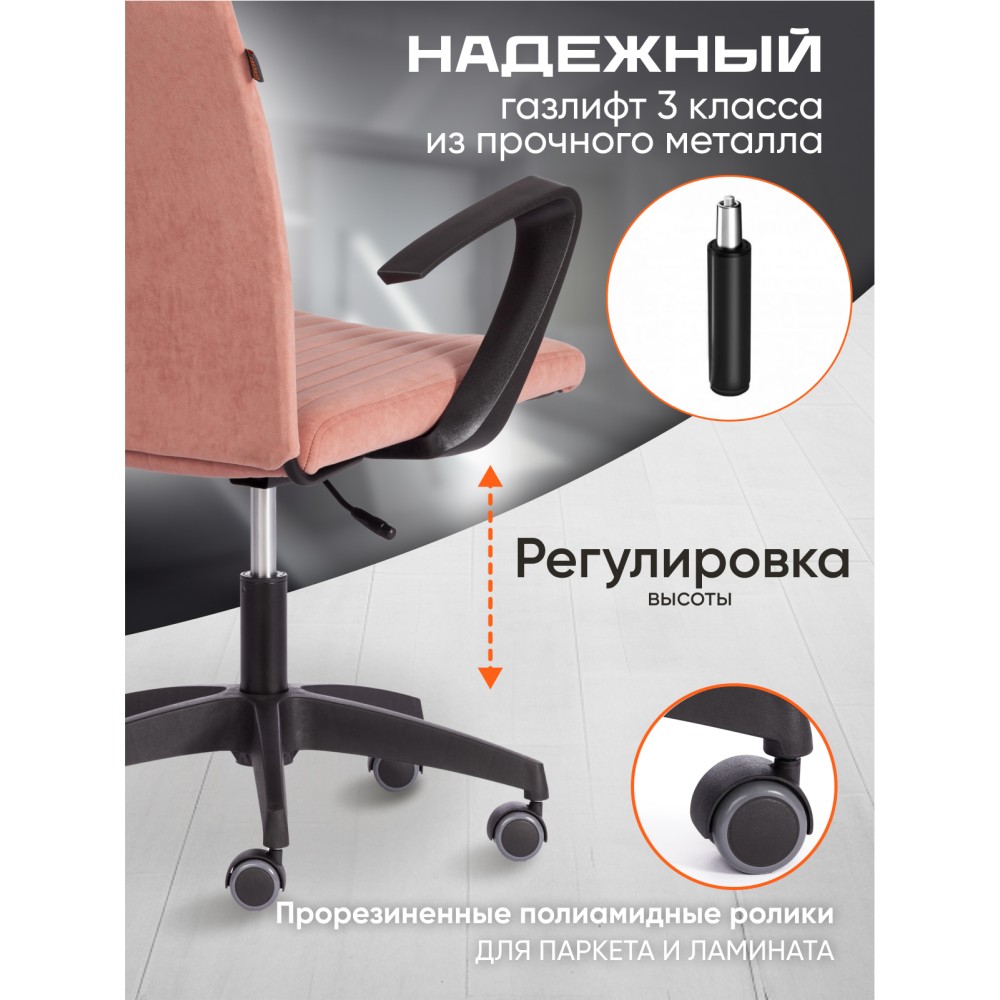 Практичное компьютерное кресло SPARK идеально подойдет для создания комфортного рабочего пространства в доме или офисе. 5-лучевая полиамидная крестовина диаметром 600 мм надежна, прочна, долговечна. Компьютерное кресло регулируется по высоте при помощи газлифта 3 класса с ходом 100 мм, что позволяет настроить его исходя из анатомических особенностей владельца. Высококачественные ролики дополнительно прорезинены для предотвращения повреждения напольного покрытия. Отлично подходят для использования на паркете и ламинате. Диаметр штока ролика – 11 мм. Эргономичная спинка и удобное сиденье с мягким наполнителем из пенополиуретана плотностью не менее 30 кг/м3 легко подстраиваются под контуры тела, не деформируются со временем. Фиксированные пластиковые подлокотники помогут снизить нагрузку на шею и спину, уменьшат усталость и напряжение в позвоночнике, повысят производительность на рабочем месте. Оригинальная модель обита флоком с водоотталкивающей пропиткой 320г/м2. Такой материал не требует сложного ухода, устойчив к механическим повреждениям, приятен на ощупь. Ткань, используемая при изготовлении кресла, выдерживает до 50 000 циклов на истирание по Мартиндейлу. Стильное компьютерное кресло розового цвета отличается элегантностью, практичностью и привлекательностью, удивит владельца своей функциональностью, надежностью и долгим сроком службы. Модель поставляется в разобранном виде. Необходима простая сборка по прилагаемой инструкции. Максимальная нагрузка 100 кг