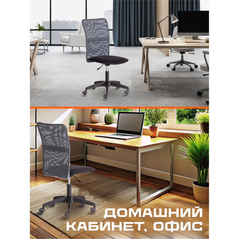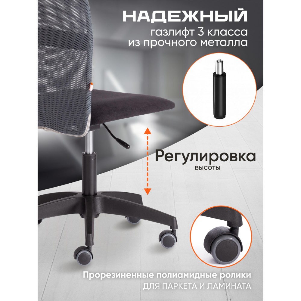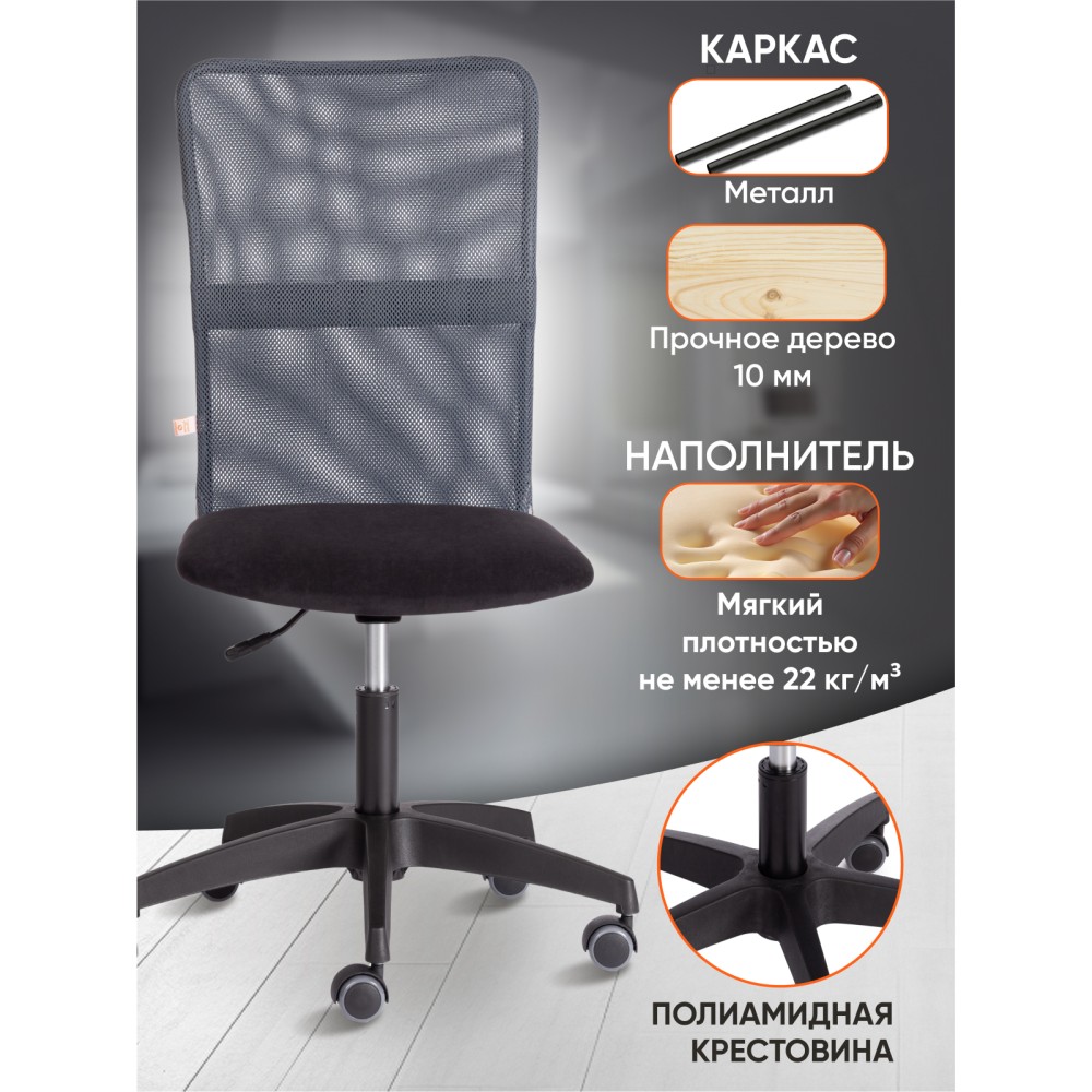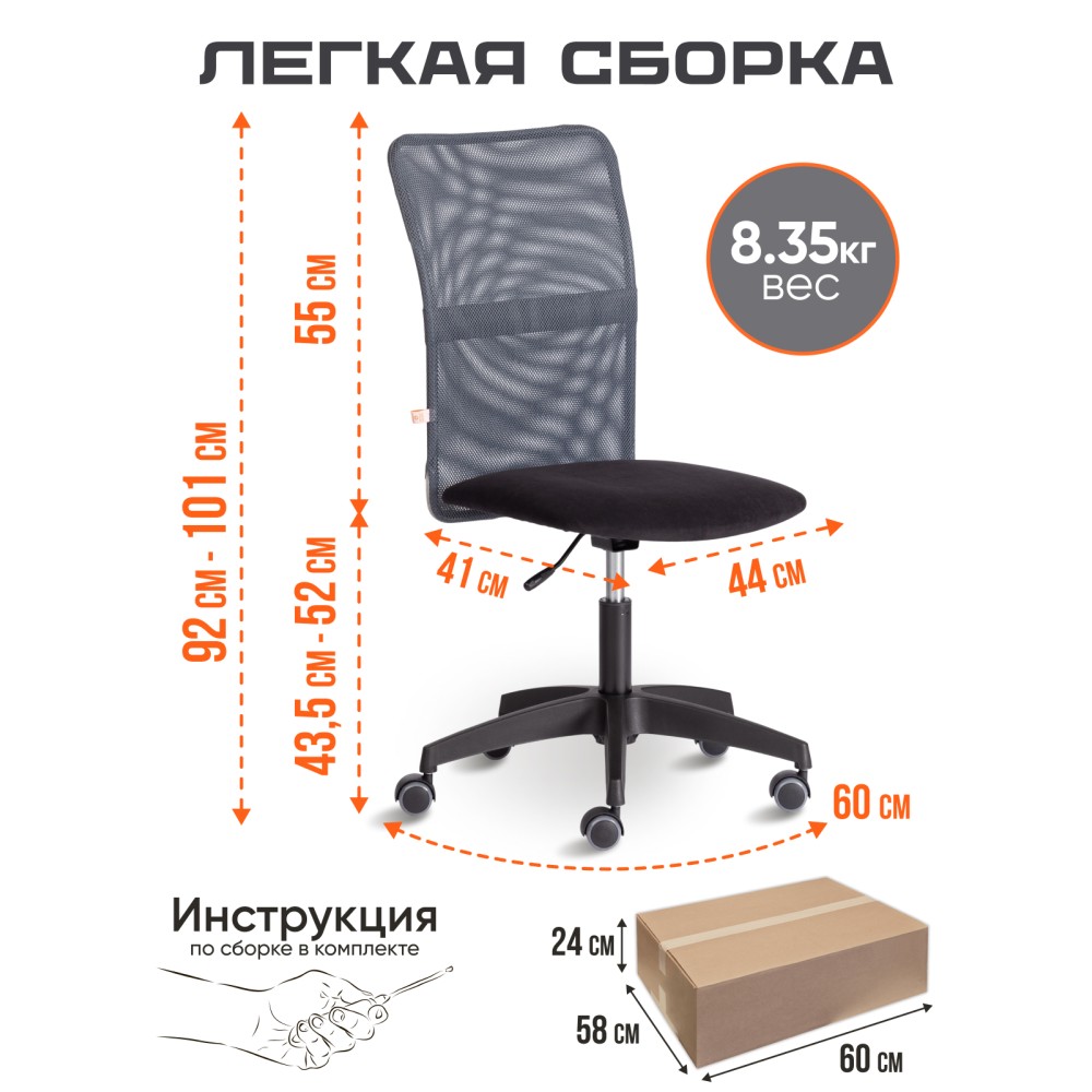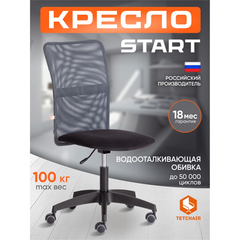 Оригинальное компьютерное кресло START – незаменимый предмет мебели в рабочем кабинете городской квартиры, загородного дома или офиса. Одновременно простая и функциональная модель прекрасно дополнит любой интерьер и создаст в помещении атмосферу комфорта и уюта. Крепкая 5-лучевая полиамидная крестовина диаметром 600 мм устойчива, прочна и надежна. Компьютерное кресло оснащено газлифтом 3 класса с ходом 100 мм, позволяющим настроить нужную высоту. Высококачественные ролики дополнительно прорезинены, не шумят при передвижении кресла и не оставляют царапин на паркете или ламинате. Диаметр штока – 11 мм. Компьютерное кресло с мягким наполнителем из пенополиуретана плотностью не менее 22 кг/м3 обладает отличными эксплуатационными качествами, не деформируется, пропускает тепло и отводит влагу, не накапливает пыль. Удобная спинка из однослойной сетки, обеспечивающей вентиляцию в жаркое время года, уменьшит дискомфорт в позвоночнике при длительном времяпрепровождении за компьютером. Оригинальная модель обита флоком с водоотталкивающей пропиткой 320 г/м2.Ткань, используемая при изготовлении кресла, выдерживает до 50 000 циклов на истирание по Мартиндейлу. Такой материал прост в уходе, устойчив к механическим повреждениям, приятен на ощупь. Сочетание черного и серого цветов идеально подойдет для создания гармоничного и привлекательного образа рабочего кабинета. Кресло поставляется в разобранном виде. Необходима простая сборка по прилагаемой инструкции. Максимальная нагрузка 100 кг.