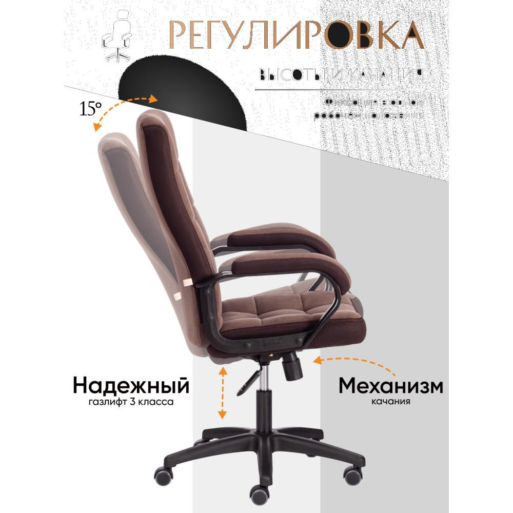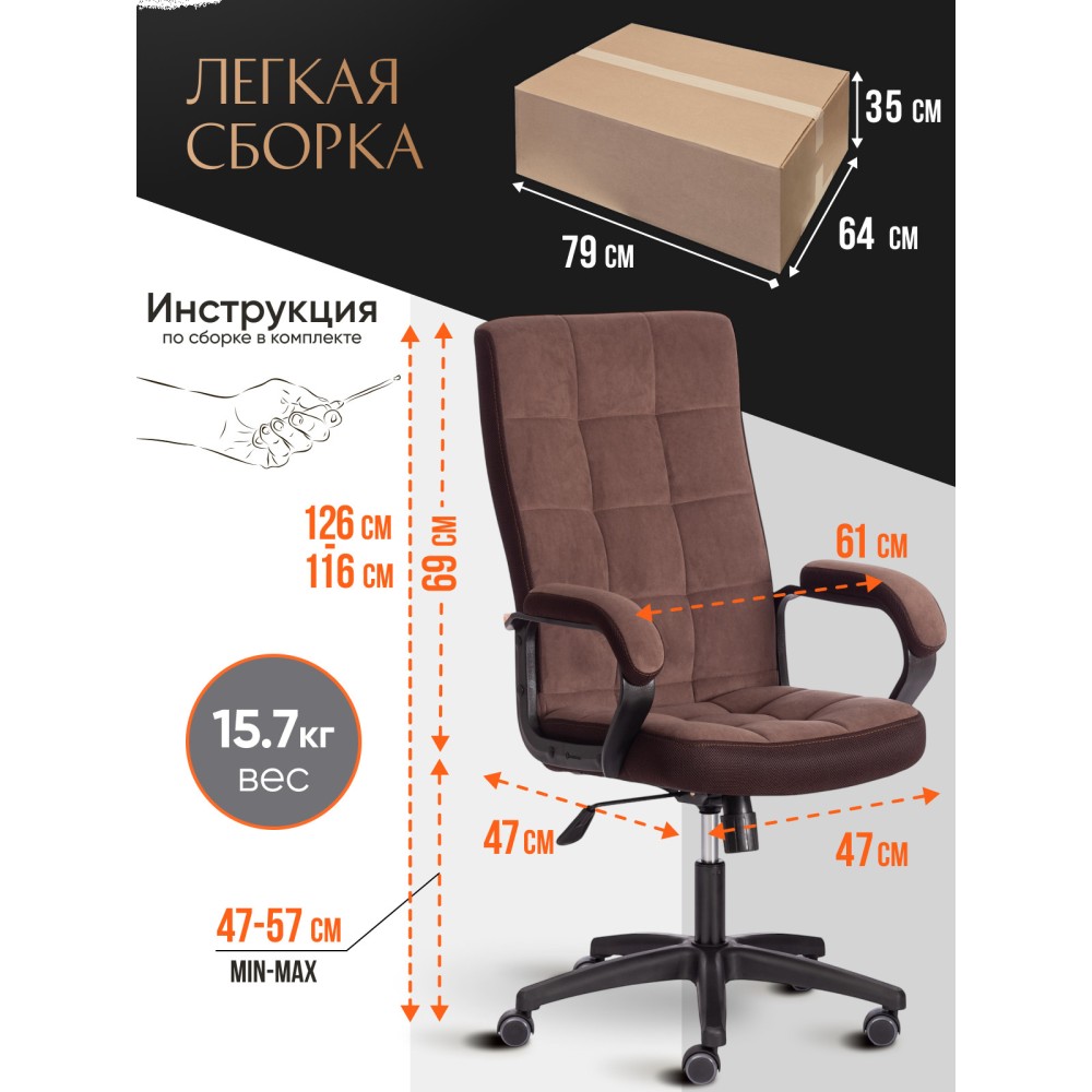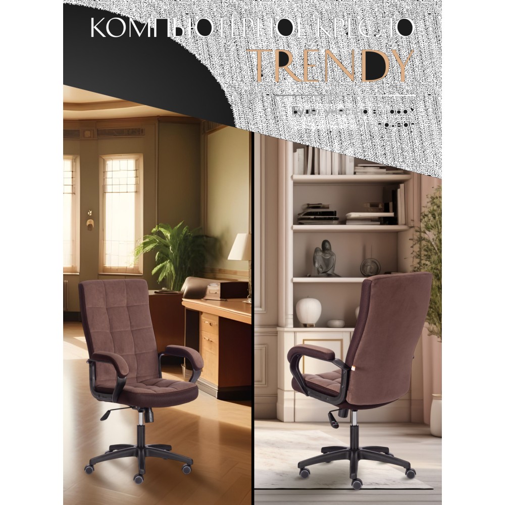 Необычный дизайн компьютерного кресла TRENDY (22) из коллекции OFFICE создаст в рабочем кабинете атмосферу комфорта и великолепия. Модель будет отлично смотреться как в стильном офисе, так и в уютной квартире. Каркас из фанеры толщиной более 10 мм прочен, гипоаллергенен, обладает отличными эксплуатационными качествами. Сиденье и спинка с мягким наполнителем из пенополиуретана (до 35 кг/м2) стандартной плотности легко подстраиваются под контуры тела человека, располагая к расслабленному отдыху. Высота и наклон с фиксацией в одном положении регулируется при помощи основательного механизма. Пластиковая крестовина с декоративными глянцевыми вставками и специальными насечками против соскальзывания ног проста в уходе, устойчива, надежна и долговечна. Благодаря полиуретановым роликам с прорезиненными вставками компьютерное кресло легко перемещается в пространстве. Прорезиненные колесики бесшумны, не повреждают напольное покрытие, не оставляют следов на паркете и ламинате. Ролики и крестовина в креслах бренда TETCHAIR соответствуют стандарту BIFMA. Во всех креслах бренда TETCHAIR используются газлифты 3 класса, он способен выдерживать вес до 120 кг. Эргономичная спинка, фиксированные пластиковые подлокотники с мягкими накладками, широкое сиденье помогут снять напряжение с плечевого пояса и позвоночника. Сочетание высокопрочной износостойкой экокожи и флока, а также ткани и флока выглядит стильно и необычно. Компьютерное кресло TRENDY (22) представлено в черном, бежевом, сером, бордовом и зеленом цветах. Экокожа, используемая при изготовлении кресла, выдерживает до 50 000 циклов на истирание по Мартиндейлу, ткань флок также выдерживает до 50 000 циклов. Ткани с прочностью более 35 000 циклов являются самыми долговечными. Модель поставляется в разобранном виде. Необходима простая сборка по прилагаемой инструкции. Максимальная нагрузка 120 кг.