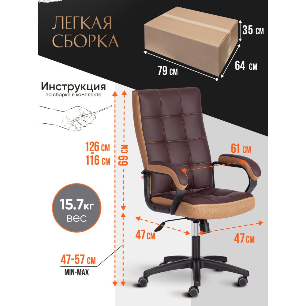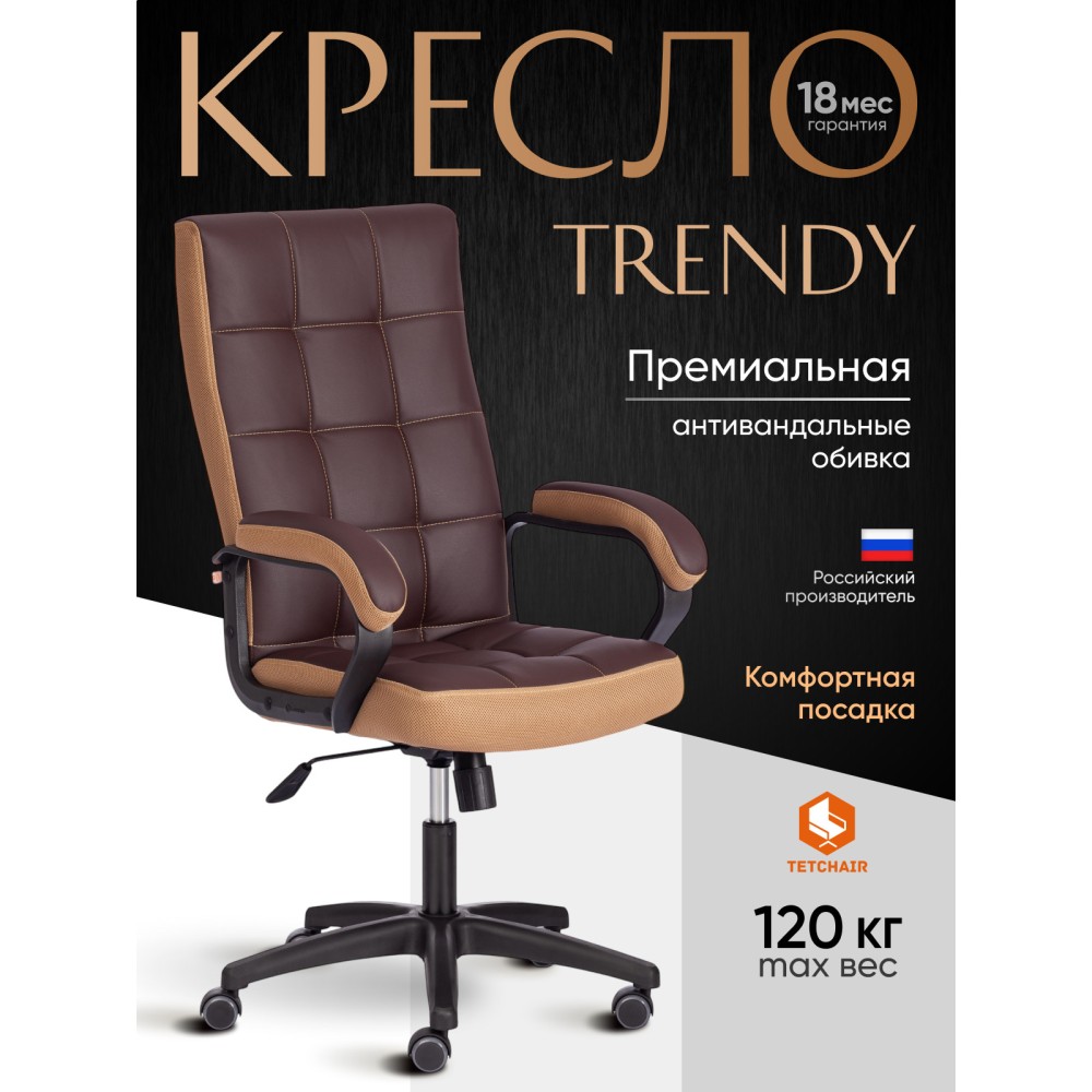 Необычный дизайн компьютерного кресла TRENDY (22) из коллекции OFFICE создаст в рабочем кабинете атмосферу комфорта и великолепия. Модель будет отлично смотреться как в стильном офисе, так и в уютной квартире. Каркас из фанеры толщиной более 10 мм прочен, гипоаллергенен, обладает отличными эксплуатационными качествами. Сиденье и спинка с мягким наполнителем из пенополиуретана (до 35 кг/м2) стандартной плотности легко подстраиваются под контуры тела человека, располагая к расслабленному отдыху. Высота и наклон с фиксацией в одном положении регулируется при помощи основательного механизма. Пластиковая крестовина с декоративными глянцевыми вставками и специальными насечками против соскальзывания ног проста в уходе, устойчива, надежна и долговечна. Благодаря полиуретановым роликам с прорезиненными вставками компьютерное кресло легко перемещается в пространстве. Прорезиненные колесики бесшумны, не повреждают напольное покрытие, не оставляют следов на паркете и ламинате. Ролики и крестовина в креслах бренда TETCHAIR соответствуют стандарту BIFMA. Во всех креслах бренда TETCHAIR используются газлифты 3 класса, он способен выдерживать вес до 120 кг. Эргономичная спинка, фиксированные пластиковые подлокотники с мягкими накладками, широкое сиденье помогут снять напряжение с плечевого пояса и позвоночника. Сочетание высокопрочной износостойкой экокожи и флока, а также ткани и флока выглядит стильно и необычно. Компьютерное кресло TRENDY (22) представлено в черном, бежевом, сером, бордовом и зеленом цветах. Экокожа, используемая при изготовлении кресла, выдерживает до 50 000 циклов на истирание по Мартиндейлу, ткань флок также выдерживает до 50 000 циклов. Ткани с прочностью более 35 000 циклов являются самыми долговечными. Модель поставляется в разобранном виде. Необходима простая сборка по прилагаемой инструкции. Максимальная нагрузка 120 кг.