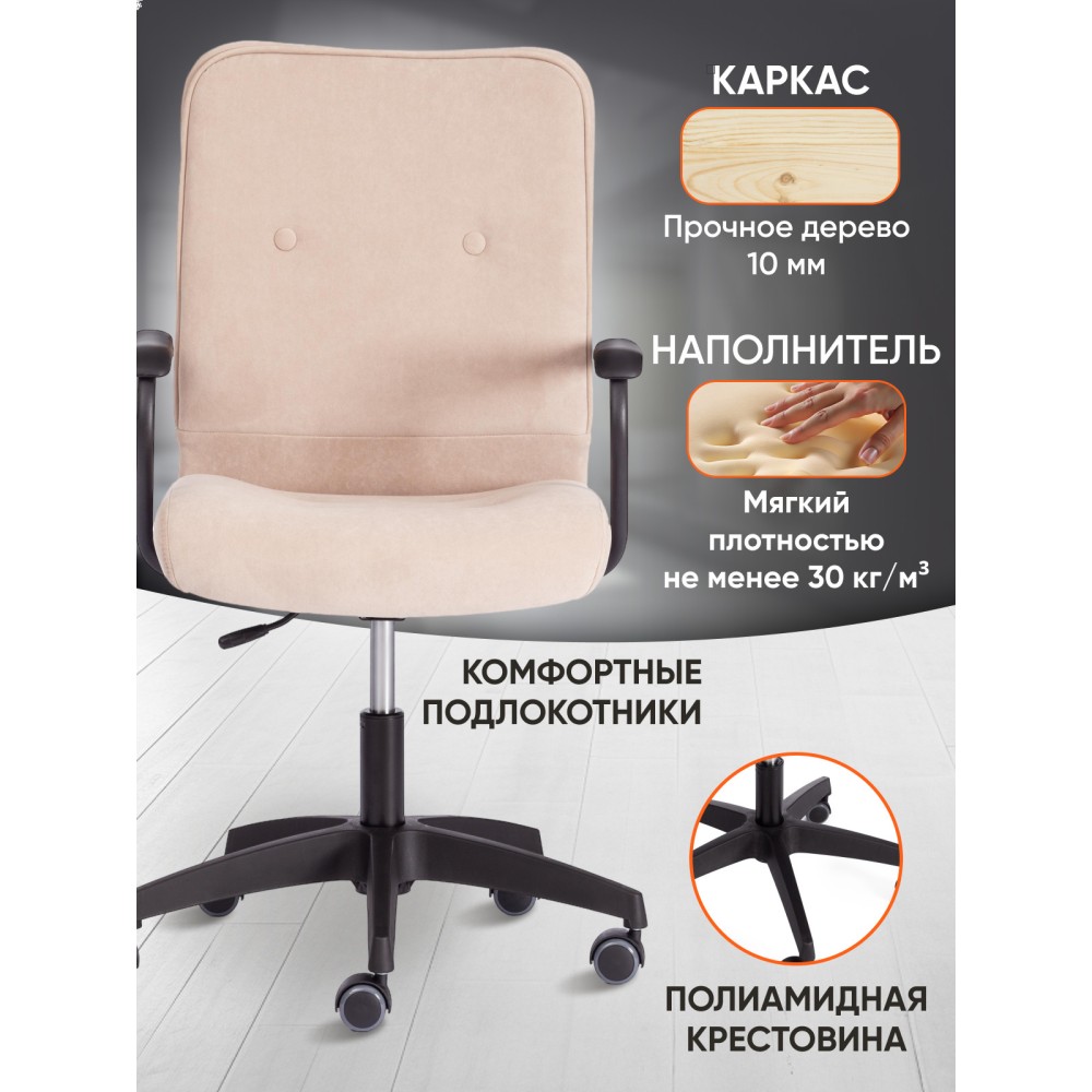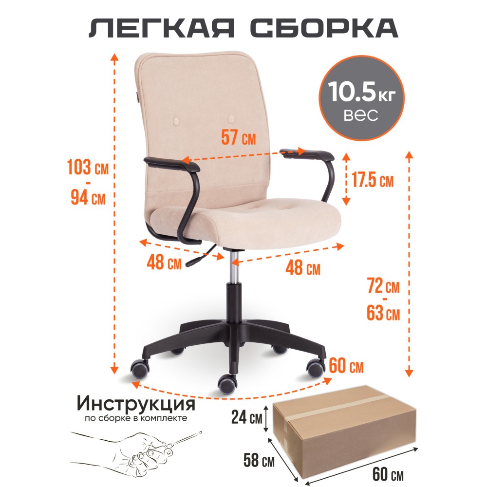 Оригинальное компьютерное кресло WIND - идеальное решение для создания уюта и комфорта в любом помещении. Модель удачно впишется в дизайн рабочего кабинета как офиса, так и дома. Устойчивое полиамидное основание обладает повышенной прочностью и отличными эксплуатационными качествами. Ролики дополнительно прорезинены для предотвращения повреждения напольного покрытия. Подходят для использования на паркете и ламинате. Металлические подлокотники с пластиковыми накладками помогут расслабиться и принять удобную позу. При помощи механизма пиастра кресло регулируется по высоте. Модель оборудована надежным газлифтом 3 класса с ходом 100 мм. Спинка и сиденье с наполнителем из пенополиуретана плотностью 30 кг/м3, легко подстраиваются под контуры тела, не деформируются со временем. Компьютерное кресло обито износостойким флоком с водоотталкиваюшей пропиткой. Такой материал практичен, не требует сложного ухода, не впитывает влагу, отлично пропускает воздух. Анатомическая спинка и удобная посадка модели максимально точно подстроены под физические особенности тела человека. Компьютерное кресло WIND не требует сложного ухода, подчеркнет безупречный вкус владельца, будет радовать своей долговечностью, красотой и практичностью продолжительное время. Модель поставляется в разобранном виде. Необходима простая сборка по прилагаемой инструкции. Максимальная нагрузка 100 кг.