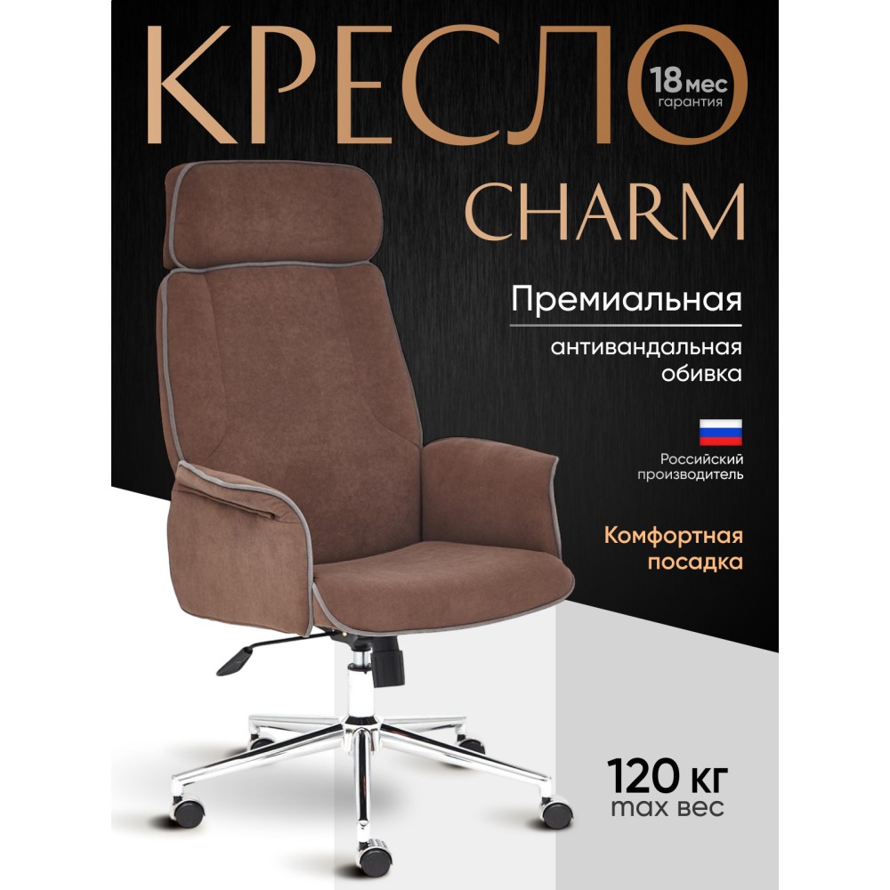 Элегантное и прочное компьютерное кресло CHARM из коллекции OFFICE - показатель безупречного вкуса своих владельцев. Уникальная модель прекрасно впишется в дизайн офиса или дома. Деревянный каркас из фанеры толщиной более 10 мм гипоаллергенен и надежен. Сиденье и спинка с мягким наполнителем из пенополиуретана (до 35 кг/м2) стандартной плотности пропускают воздух, не накапливают пыль, не деформируются на протяжении длительного времени. Для принятия удобной позы кресло регулируется по высоте и наклону с фиксацией в одном положении. Металлическая хромированная крестовина обеспечивает устойчивость и безопасность модели. Фиксированные подлокотники из фанеры помогут уменьшить дискомфорт в плечах и шее при длительной работе, а также комфортно расположиться у стола. Высококачественные полиуретановые ролики с прорезиненными вставками помогут плавно передвигаться по офису или дому, подходят для использования на паркете и ламинате. Ролики и крестовина в креслах бренда TETCHAIR соответствуют стандарту BIFMA. Во всех креслах бренда TETCHAIR используются газлифты 3 класса, он способен выдерживать вес до 120 кг. Съемный подголовник положительно влияет на работоспособность человека, снижает уровень утомляемости. Компьютерное кресло, обитое флоком или тканью, легко моется, приятно на ощупь, отталкивает воду, обладает повышенной износостойкостью. Ткань флок , используемая при изготовлении кресла, выдерживает до 50 000 циклов на истирание по Мартиндейлу, мягкая ткань рогожка выдерживает до 40 000 циклов. Ткани с прочностью более 35 000 циклов являются самыми долговечными. Мебель, в которой используются такие ткани можно использовать не только дома но и в ресторанах, салонах красоты, приемных. Модель представлена в нескольких цветовых вариантах: синем, коричневом, сером, черном, розовом, оливковом и в клетку. Кресло для компьютера поставляется в разобранном виде. Необходима простая сборка по прилагаемой инструкции. Максимальная нагрузка 120 кг.