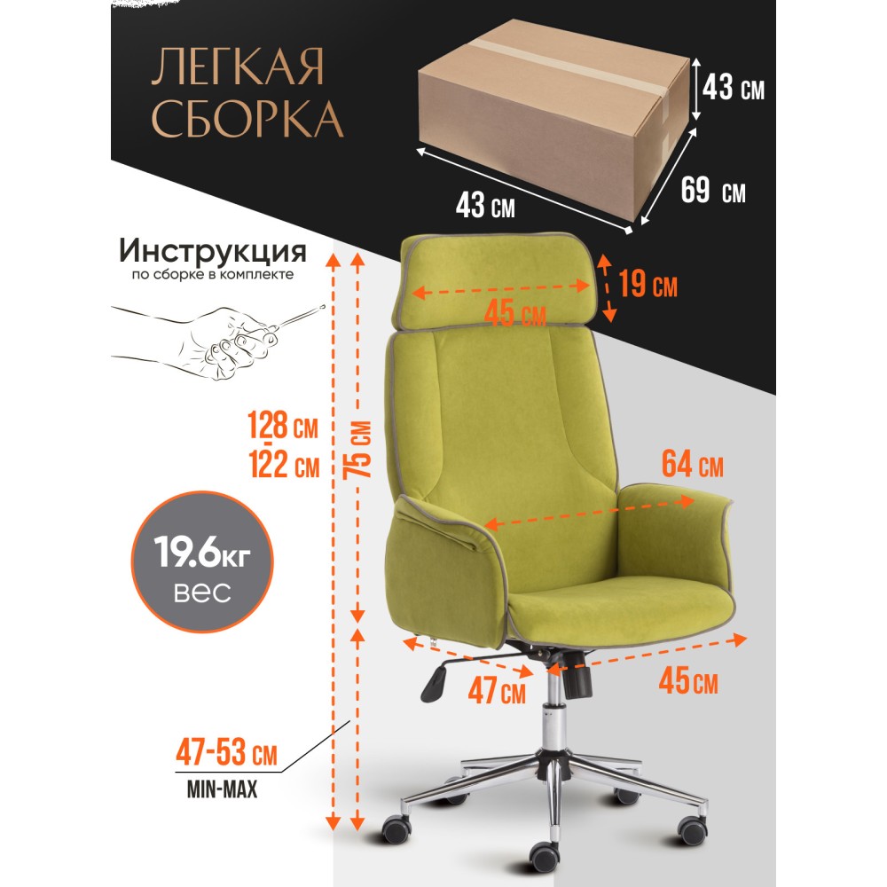 Элегантное и прочное компьютерное кресло CHARM из коллекции OFFICE - показатель безупречного вкуса своих владельцев. Уникальная модель прекрасно впишется в дизайн офиса или дома. Деревянный каркас из фанеры толщиной более 10 мм гипоаллергенен и надежен. Сиденье и спинка с мягким наполнителем из пенополиуретана (до 35 кг/м2) стандартной плотности пропускают воздух, не накапливают пыль, не деформируются на протяжении длительного времени. Для принятия удобной позы кресло регулируется по высоте и наклону с фиксацией в одном положении. Металлическая хромированная крестовина обеспечивает устойчивость и безопасность модели. Фиксированные подлокотники из фанеры помогут уменьшить дискомфорт в плечах и шее при длительной работе, а также комфортно расположиться у стола. Высококачественные полиуретановые ролики с прорезиненными вставками помогут плавно передвигаться по офису или дому, подходят для использования на паркете и ламинате. Ролики и крестовина в креслах бренда TETCHAIR соответствуют стандарту BIFMA. Во всех креслах бренда TETCHAIR используются газлифты 3 класса, он способен выдерживать вес до 120 кг. Съемный подголовник положительно влияет на работоспособность человека, снижает уровень утомляемости. Компьютерное кресло, обитое флоком или тканью, легко моется, приятно на ощупь, отталкивает воду, обладает повышенной износостойкостью. Ткань флок , используемая при изготовлении кресла, выдерживает до 50 000 циклов на истирание по Мартиндейлу, мягкая ткань рогожка выдерживает до 40 000 циклов. Ткани с прочностью более 35 000 циклов являются самыми долговечными. Мебель, в которой используются такие ткани можно использовать не только дома но и в ресторанах, салонах красоты, приемных. Модель представлена в нескольких цветовых вариантах: синем, коричневом, сером, черном, розовом, оливковом и в клетку. Кресло для компьютера поставляется в разобранном виде. Необходима простая сборка по прилагаемой инструкции. Максимальная нагрузка 120 кг.