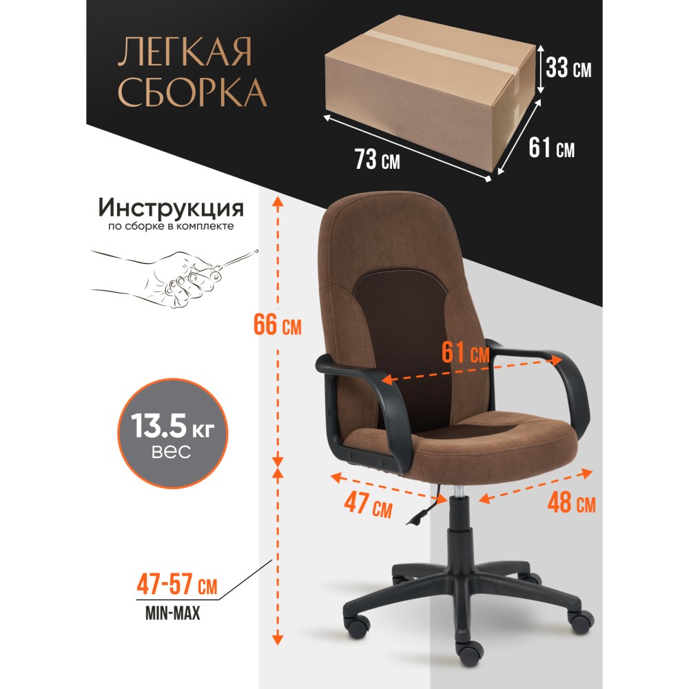 Элегантный дизайн офисного кресла PARMA из коллекции OFFICE добавит элемент индивидуальности и эксклюзивности вашему дому или офису, создаст приятный микроклимат в любом рабочем пространстве. Модель прекрасно подойдет как для руководителя, так и для рядового сотрудника. Каркас из фанеры толщиной более 10 мм прочен, надежен, экологически безопасен и долговечен. Кресло оснащено анатомическим прогибом. Сиденье мягким наполнителем из пенополиуретана (до 35 кг/м2) стандартной плотности не меняет форму на протяжении длительного времени, хорошо пропускает воздух, не накапливает пыль. Для удобства использования у компьютерного стула есть механизм подъема. Черная полиамидная крестовина основательна, проста в уходе, выглядит стильно и современно. Фиксированные пластиковые подлокотники помогут снять напряжение во время сидячей работы с шеи и плечевых суставов, разнообразить позу при посадке, расслабить руки и передохнуть. Бесшумные полиамидные ролики с прорезиненными вставками не повреждают напольные покрытие, могут использоваться на низковорсовых поверхностях. Ролики и крестовина в креслах бренда TETCHAIR соответствуют стандарту BIFMA. Во всех креслах бренда TETCHAIR используются газлифты 3 класса, он способен выдерживать вес до 100 кг. Такое кресло можно выбрать в одном из нескольких вариантов: из износостойкой высокопрочной экокожи, ткани или ткани в сочетании с флоком. Экокожа, используемая при изготовлении кресла, выдерживает до 50 000 циклов на истирание по Мартиндейлу, ткань флок также выдерживает до 50 000 циклов, мягкая ткань рогожка выдерживает до 40 000 циклов. Ткани с прочностью более 35 000 циклов являются самыми долговечными. Модель представлена в синем, коричневом, сером, черном, красном, бордовом и бежевом цветах. Максимальная нагрузка 100 кг. Компьютерное кресло PARMA поставляется в разобранном виде. Необходима несложная сборка по прилагаемой инструкции.