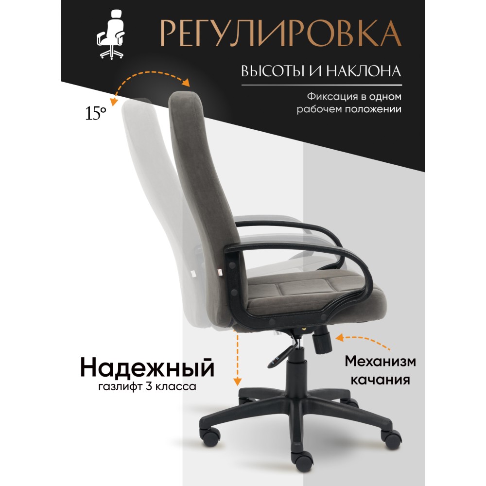 Простой и стильный дизайн компьютерного кресла CH747 из коллекции OFFICE подчеркнет особый вкус своего владельца. Модель отлично подойдет как для кабинета руководителя, так и для любого другого рабочего пространства в доме или офисе. Кресло оборудовано механизмом регулировки высоты и наклона с фиксацией в рабочем вертикальном положении. Жесткость качания настраивается при помощи специального барабана. Каркас модели изготовлен из прочной фанеры толщиной более 10 мм. Сиденье с мягким наполнителем из пенополиуретана (до 35 кг/м2) стандартной плотности воздухопроницаемо, долговечно, не накапливает пыль, отталкивает воду, гипоаллергенно. Черная пластиковая крестовина основательна, проста в уходе, выглядит стильно и современно. Бесшумные полиамидные ролики позволяют легко перемещать кресло по комнате, не оставляя следов на поверхности пола. Ролики и крестовина в креслах бренда TETCHAIR соответствуют стандарту BIFMA. Во всех креслах бренда TETCHAIR используются газлифты 3 класса, он способен выдерживать вес до 120 кг. Удобные фиксированные пластиковые подлокотники, имеющие надежные крепления, помогут разгрузить суставы и плечи, снимая накопившуюся усталость. Обивка из флока, ткани или износостойкой высокопрочной экокожи приятна на ощупь, устойчива к истиранию, не требует сложного обслуживания. Экокожа, используемая при изготовлении кресла, выдерживает до 50 000 циклов на истирание по Мартиндейлу, ткань флок также выдерживает до 50 000 циклов, мягкая ткань рогожка выдерживает до 40 000 циклов. Ткани с прочностью более 35 000 циклов являются самыми долговечными. Привлекательное офисное кресло CH747 представлено в черном, бежевом, коричневом, сером, синем, бордовом и красном цветах. Разнообразие оттенков модели позволит создать идеальный интерьер под ваш вкус. Максимальная нагрузка 120 кг. Компьютерное кресло поставляется в разобранном виде. Необходима несложная сборка по прилагаемой инструкции.