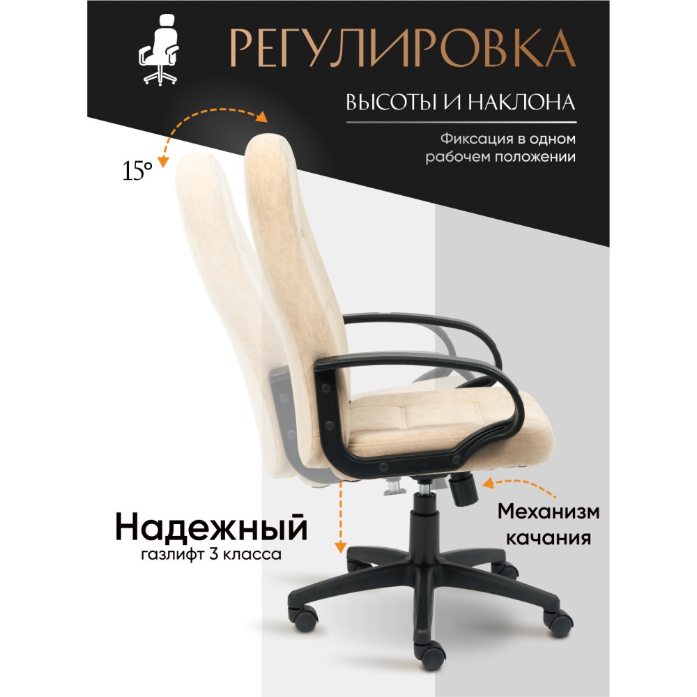 Простой и стильный дизайн компьютерного кресла CH747 из коллекции OFFICE подчеркнет особый вкус своего владельца. Модель отлично подойдет как для кабинета руководителя, так и для любого другого рабочего пространства в доме или офисе. Кресло оборудовано механизмом регулировки высоты и наклона с фиксацией в рабочем вертикальном положении. Жесткость качания настраивается при помощи специального барабана. Каркас модели изготовлен из прочной фанеры толщиной более 10 мм. Сиденье с мягким наполнителем из пенополиуретана (до 35 кг/м2) стандартной плотности воздухопроницаемо, долговечно, не накапливает пыль, отталкивает воду, гипоаллергенно. Черная пластиковая крестовина основательна, проста в уходе, выглядит стильно и современно. Бесшумные полиамидные ролики позволяют легко перемещать кресло по комнате, не оставляя следов на поверхности пола. Ролики и крестовина в креслах бренда TETCHAIR соответствуют стандарту BIFMA. Во всех креслах бренда TETCHAIR используются газлифты 3 класса, он способен выдерживать вес до 120 кг. Удобные фиксированные пластиковые подлокотники, имеющие надежные крепления, помогут разгрузить суставы и плечи, снимая накопившуюся усталость. Обивка из флока, ткани или износостойкой высокопрочной экокожи приятна на ощупь, устойчива к истиранию, не требует сложного обслуживания. Экокожа, используемая при изготовлении кресла, выдерживает до 50 000 циклов на истирание по Мартиндейлу, ткань флок также выдерживает до 50 000 циклов, мягкая ткань рогожка выдерживает до 40 000 циклов. Ткани с прочностью более 35 000 циклов являются самыми долговечными. Привлекательное офисное кресло CH747 представлено в черном, бежевом, коричневом, сером, синем, бордовом и красном цветах. Разнообразие оттенков модели позволит создать идеальный интерьер под ваш вкус. Максимальная нагрузка 120 кг. Компьютерное кресло поставляется в разобранном виде. Необходима несложная сборка по прилагаемой инструкции.