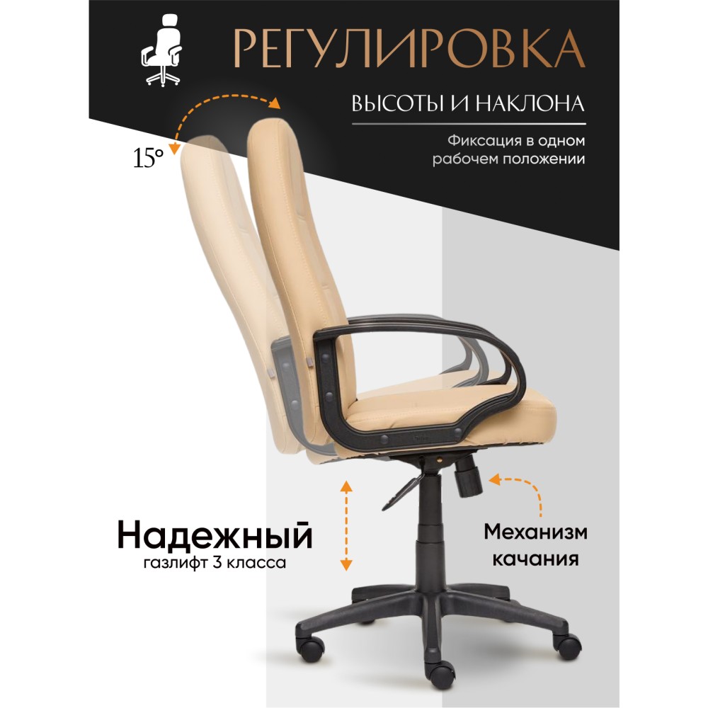 Простой и стильный дизайн компьютерного кресла CH747 из коллекции OFFICE подчеркнет особый вкус своего владельца. Модель отлично подойдет как для кабинета руководителя, так и для любого другого рабочего пространства в доме или офисе. Кресло оборудовано механизмом регулировки высоты и наклона с фиксацией в рабочем вертикальном положении. Жесткость качания настраивается при помощи специального барабана. Каркас модели изготовлен из прочной фанеры толщиной более 10 мм. Сиденье с мягким наполнителем из пенополиуретана (до 35 кг/м2) стандартной плотности воздухопроницаемо, долговечно, не накапливает пыль, отталкивает воду, гипоаллергенно. Черная пластиковая крестовина основательна, проста в уходе, выглядит стильно и современно. Бесшумные полиамидные ролики позволяют легко перемещать кресло по комнате, не оставляя следов на поверхности пола. Ролики и крестовина в креслах бренда TETCHAIR соответствуют стандарту BIFMA. Во всех креслах бренда TETCHAIR используются газлифты 3 класса, он способен выдерживать вес до 120 кг. Удобные фиксированные пластиковые подлокотники, имеющие надежные крепления, помогут разгрузить суставы и плечи, снимая накопившуюся усталость. Обивка из флока, ткани или износостойкой высокопрочной экокожи приятна на ощупь, устойчива к истиранию, не требует сложного обслуживания. Экокожа, используемая при изготовлении кресла, выдерживает до 50 000 циклов на истирание по Мартиндейлу, ткань флок также выдерживает до 50 000 циклов, мягкая ткань рогожка выдерживает до 40 000 циклов. Ткани с прочностью более 35 000 циклов являются самыми долговечными. Привлекательное офисное кресло CH747 представлено в черном, бежевом, коричневом, сером, синем, бордовом и красном цветах. Разнообразие оттенков модели позволит создать идеальный интерьер под ваш вкус. Максимальная нагрузка 120 кг. Компьютерное кресло поставляется в разобранном виде. Необходима несложная сборка по прилагаемой инструкции.