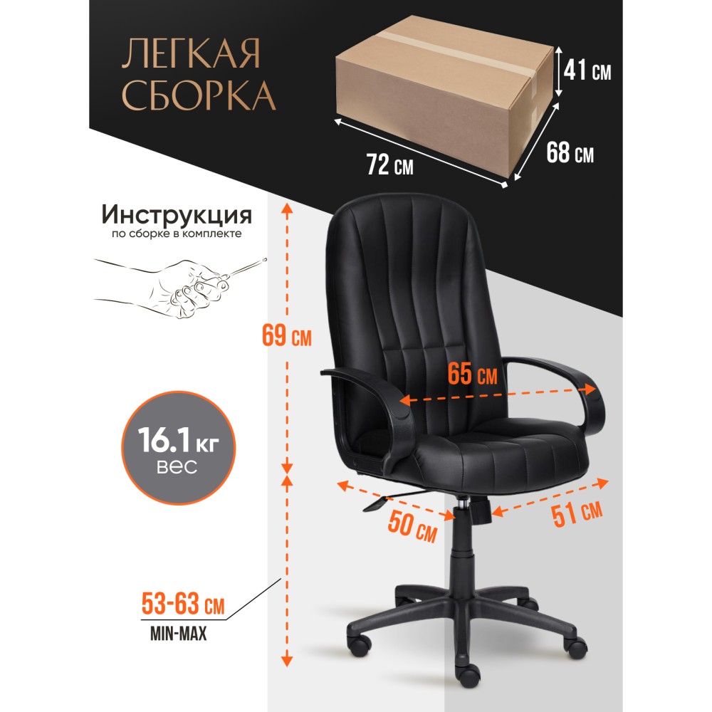 Элегантное компьютерное кресло СН833 из коллекции OFFICE – удобный и функциональный предмет мебели для офиса или дома. Модель поможет создать комфортную рабочую обстановку и стильный современный интерьер. Кресло имеет регулируемую высоту и наклон с фиксацией в одном положении. Крепкий каркас выполнен из фанеры толщиной более 10 мм – экологически чистого, надежного и долговечного материала. Сиденье и спинка с мягким наполнителем из пенополиуретана стандартной плотности (до 35 кг/м2) обладают высокими эксплуатационными качествами, не меняют форму со временем. Пластиковая крестовина черного цвета устойчива, не требует специального ухода, удачно сочетается с другими предметами интерьера. Высококачественные полиуретановые ролики с прорезиненными вставками помогут плавно передвигаться по офису или дому, подходят для использования на паркете и ламинате. Ролики и крестовина в креслах бренда TETCHAIR соответствуют стандарту BIFMA. Во всех креслах бренда TETCHAIR используются газлифты 3 класса, он способен выдерживать вес до 120 кг. Фиксированные пластиковые подлокотники, анатомическая спинка и вместительное сиденье уменьшат дискомфорт в спине при длительном времяпрепровождении за компьютером. Оригинальное офисное кресло обито прочной тканью и эккокожей. Такой материал воздухопроницаем, обладает отличными эксплуатационными свойствами, долговечен. Экокожа, используемая при изготовлении кресла, выдерживает до 50 000 циклов на истирание по Мартиндейлу, мягкая ткань рогожка выдерживает до 40 000 циклов. Ткани с прочностью более 35 000 циклов являются самыми долговечными. Мебель, в которой используются такие ткани можно использовать не только дома но и в ресторанах, салонах красоты, приемных. Модель представлена в черном, синем, бордовом, коричневом и сером цветах. Компьютерное кресло CH833 является отличным выбором для тех, кто хочет создать уютное и практичное рабочее пространство. Максимальная нагрузка 120 кг. Офисное кресло поставляется в разобранном виде. Необходима несложная сборка по прилагаемой инструкции.