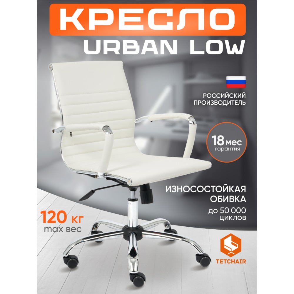 Эргономичное компьютерное кресло на колесиках URBAN LOW из коллекции OFFICE станет центральным элементом в рабочем кабинете дома или офиса. Хромированный каркас модели выполнен из высокопрочного металла он прочен, надежен и долговечен. Эргономичная слегка изогнутая спинка отлично поддерживает спину в поясничной области. Фиксированные подлокотники с декоративными чехлами уменьшат дискомфорт в плечах и шее при длительной работе. Кресло регулируется по высоте. Механизм качания с фиксацией в одном положении поможет расслабиться и принять удобную позу. Металлическая хромированная крестовина не только обеспечивает маневренность и мобильность модели, она также необходима для устойчивости кресла. Во всех креслах бренда TETCHAIR используются газлифты 3 класса, он способен выдерживать вес до 120 кг. при интенсивном использовании кресла. Высококачественные полиуретановые ролики с прорезиненными вставками отличаются плавным и тихим ходом, устойчивы к износу и разрывам, бесшумны, не повреждают напольное покрытие. Компьютерное кресло изготавливается в нескольких вариантах: из флока серого, синего, коричневого, оттенка олива и бордового цвета, а также из износостойкой высокопрочной экокожи цвета металлик, черного, белого, коричневого и бежевого цвета. Экокожа, используемая при изготовлении кресла, выдерживает до 50 000 циклов на истирание по Мартиндейлу, ткань флок выдерживает до 50 000 циклов. Ткани с прочностью более 35 000 циклов являются самыми долговечными. Мебель, в которой используются такие ткани можно использовать не только дома но и в ресторанах, салонах красоты, приемных. Привлекательная модель URBAN LOW не требует сложного ухода, подчеркнет безупречный вкус владельца, будет радовать своей долговечностью, красотой и практичностью продолжительное время. Кресло поставляется в разобранном виде. Необходима простая сборка по прилагаемой инструкции. Максимальная нагрузка модели 120 кг.