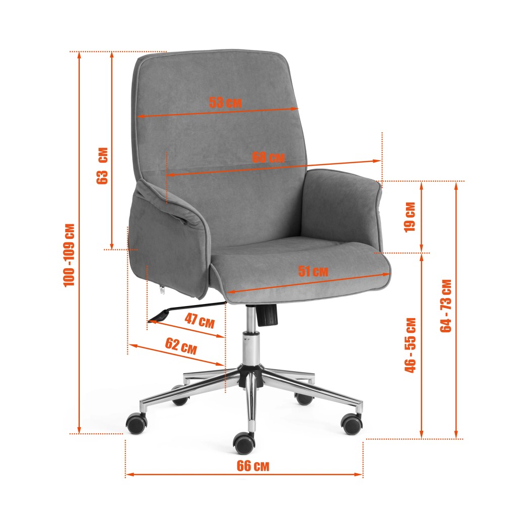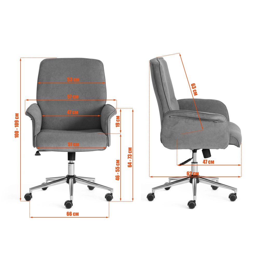 Оригинальное офисное кресло YORK из коллекции OFFICE гармонично впишется в интерьер вашего дома или офиса. Благодаря своему презентабельному внешнему виду модель можно использовать в кабинете руководителя или в переговорной комнате. Прочный каркас выполнен из экологически безопасной фанеры толщиной более 10 мм. Мягкое сиденье и спинка с наполнителем из пенополиуретана (до 35 кг/м2) стандартной плотности не деформируются со временем. Регулировка высоты и наклона с фиксацией в одном положении помогут расслабиться, а также принять комфортную позу при длительной работе. Жесткость механизма качания настраивается при помощи специального барабана. Фиксированные подлокотники из фанеры способствуют снятию напряжения с позвоночника, поясницы и шеи. Высококачественные прорезиненные ролики из полиуретана с прорезиненными вставками не царапают поверхность, подойдут для использования на паркете и ламинате. Устойчивая хромированная крестовина изготовлена из металла. Ролики и крестовина в креслах бренда TETCHAIR соответствуют стандарту BIFMA. Во всех креслах бренда TETCHAIR используются газлифты 3 класса, он способен выдерживать вес до 120 кг. Обивка из флока не требует сложного ухода, воздухопроницаема, отталкивает воду. Ткань флок , используемая при изготовлении кресла, выдерживает до 50 000 циклов на истирание по Мартиндейлу. Ткани с прочностью более 35 000 циклов являются самыми долговечными. Изысканное компьютерное кресло YORK представлено в нескольких цветовых вариантах: синем, бежевом, коричневом, сером и черном. Модель поставляется в разобранном виде. Необходима простая сборка по прилагаемой инструкции. Максимальная нагрузка 120 кг.
