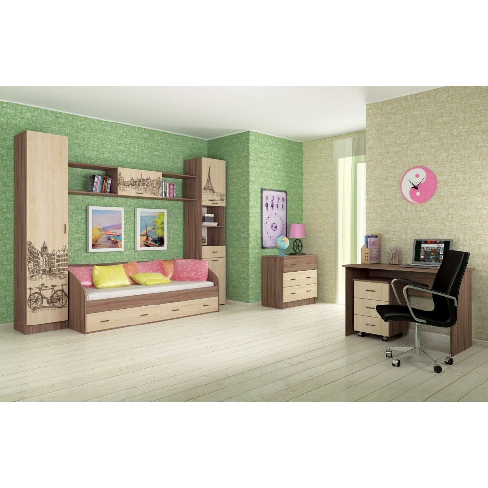 - Широкий выбор модулей: функциональная кровать-чердак, вместительные шкафы и пенал с выдвижными ящиками