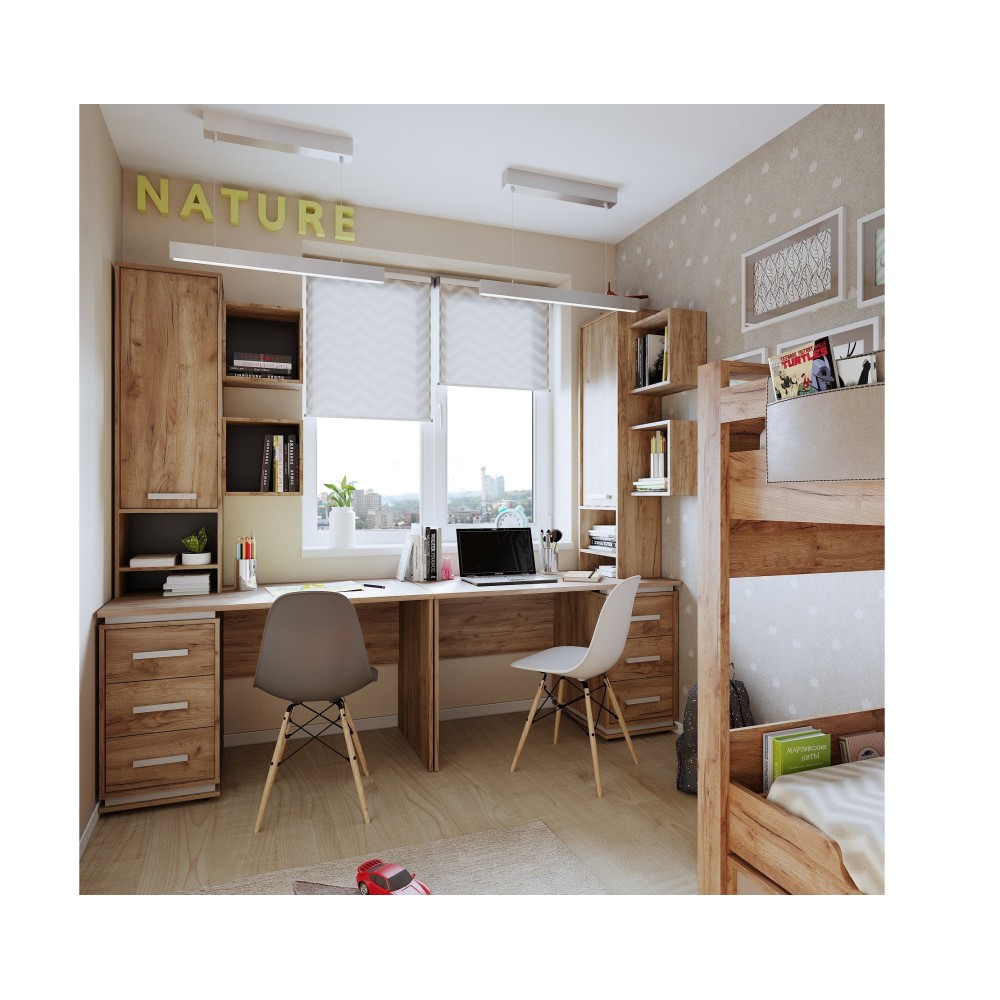 Коллекция для молодежной NATURE в сочетании древесного декора Дуб Табачный и Мокко в тиснении лофт подойдет как для детей, так и для подростков. Мебель в трендовых декорах выглядит действительно круто! Мы постарались сделать молодежную NATURE такой, чтобы детям любого пола и возраста было в их комнате удобно и комфортно.