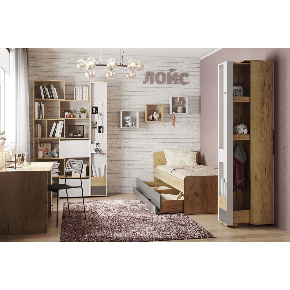 Мебель из коллекции Лойс - универсальный вариант обустройства молодежной комнаты в современном стиле. Благодаря разнообразию модулей Вы сможете с комфортом организовать спальную зону, рабочий уголок и зону хранения вещей ребенка. Уникальная функциональность, качественные долговечные материалы производства и визуальная привлекательность делает данную коллекцию трендом на рынке корпусной мебели для детских! Ознакомьтесь с каждым из модулей и подберите комплект, подходящий именно Вашему ребенку.
