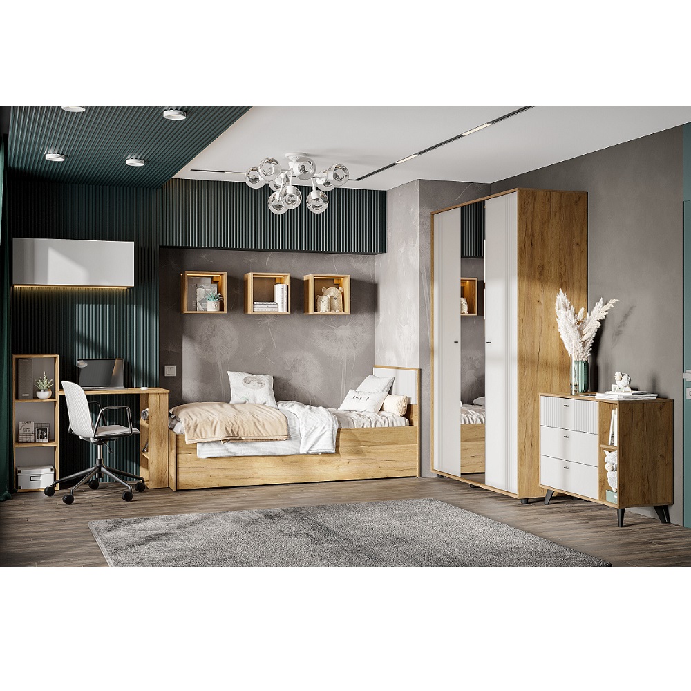 Модульная коллекция Милан выполнена в современном стиле и привлекает внимание сочетанием теплого древесного декора корпуса и белыми текстурными фасадами. Коллекция создана для ценителей глубоких и продуманных интерьеров.