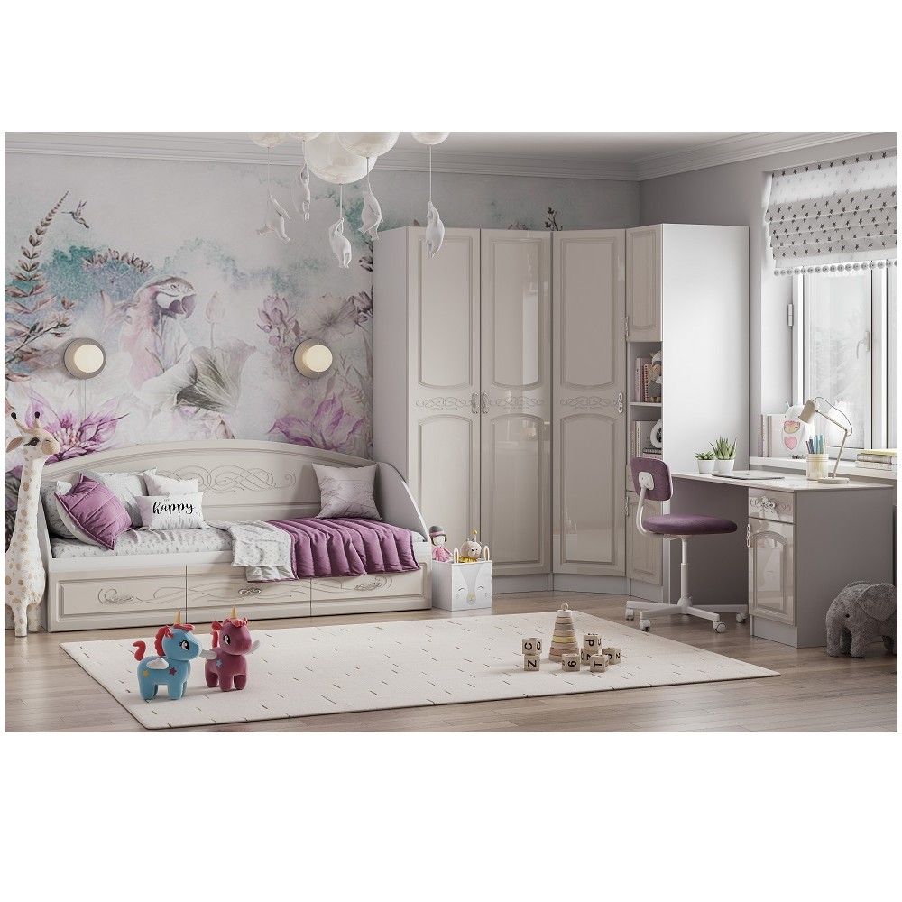 Обратите внимание на коллекцию Венеция, если мечтаете обустроить подростковую в классическом стиле. Сочетание приятных оттенков, фрезерованные фасады, продуманный состав модулей – это еще не все преимущества Венеции.