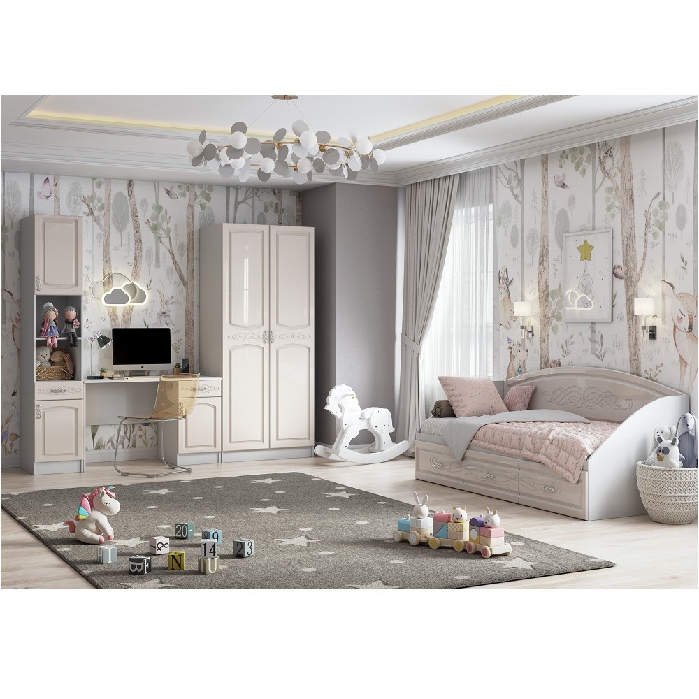 Обратите внимание на коллекцию Венеция, если мечтаете обустроить подростковую в классическом стиле. Сочетание приятных оттенков, фрезерованные фасады, продуманный состав модулей – это еще не все преимущества Венеции.