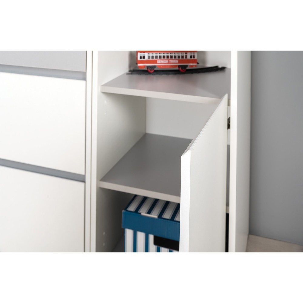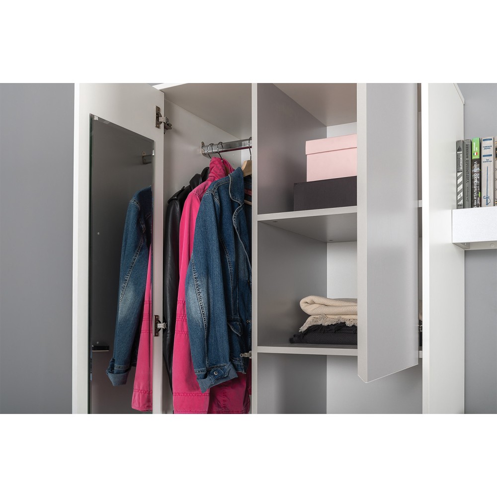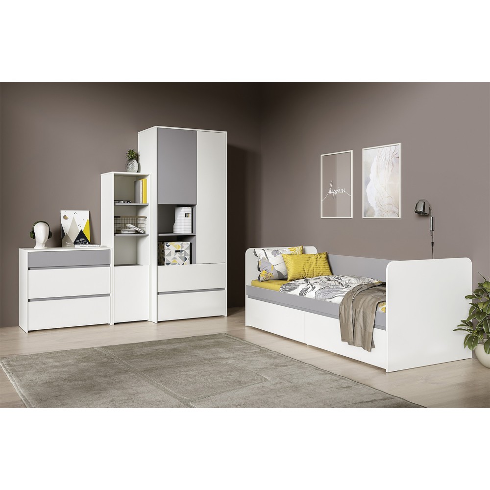 Базовый белый цвет, сочетаясь с акцентным серым, создаёт нейтральную основу интерьера, чтобы подчеркнуть личные вещи и аксессуары.