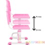 Сиденье и спинка стула имеют насыщенный розовый цвет, матовая поверхность материала сиденья защищает от скольжения. Имеются горизонтальные "прорези", чтобы кожа ребенка дышала при длительных занятиях. Стул регулируется по высоте парты. Имеет устойчивое основание, за счёт низкого расположения опорных стоек. Мебель легко поддаётся влажной уборке. Дизайн и цвет комплекта предназначен для современного детского интерьера, а также для создания положительных эмоций у ребенка в момент занятий.
