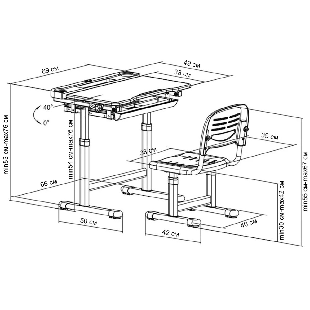 Высота парты регулируется (54-76 см), позволяет подстраивать под рост ребенка.