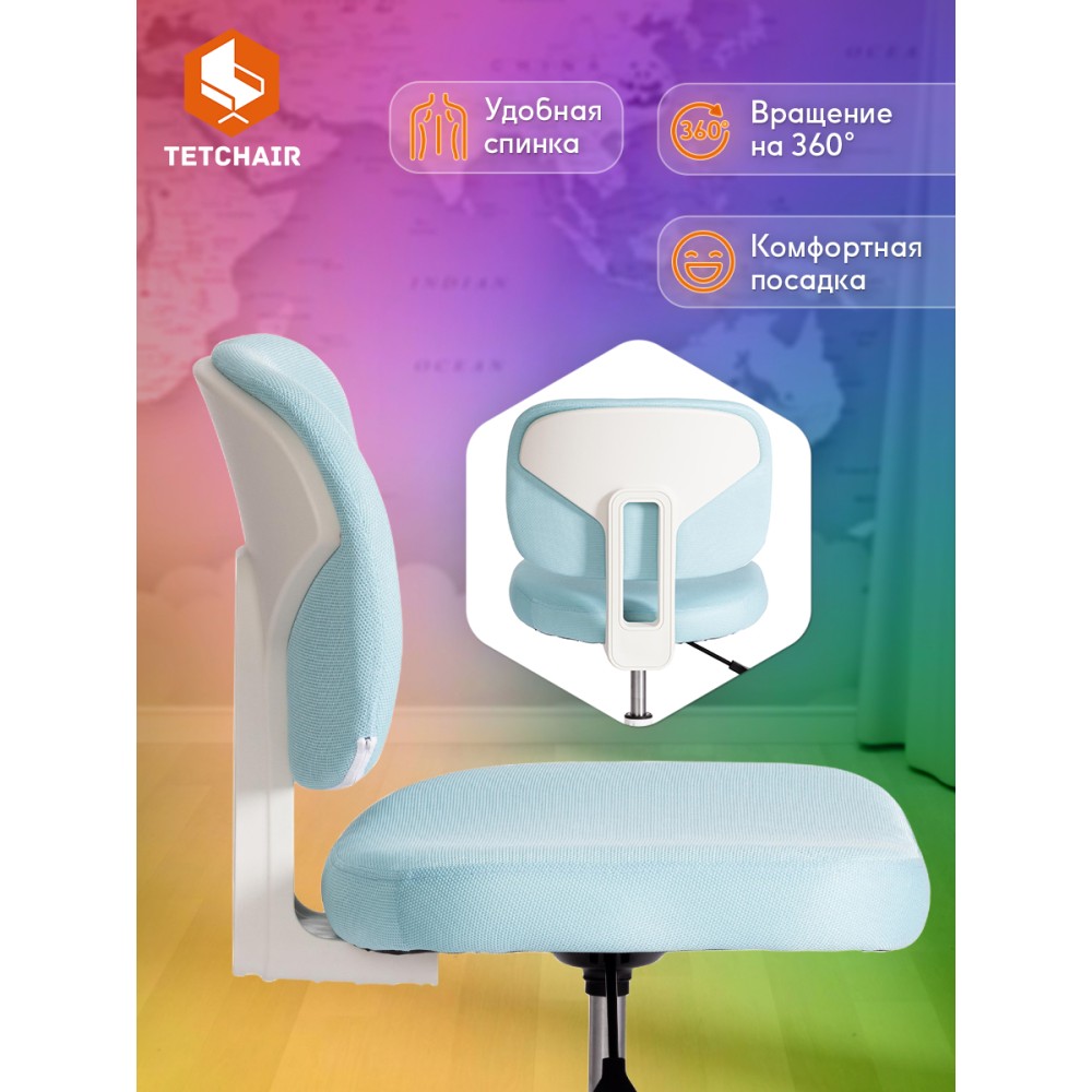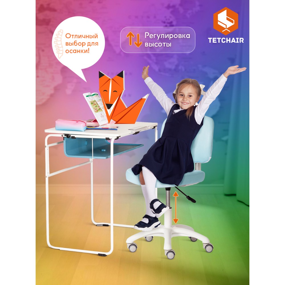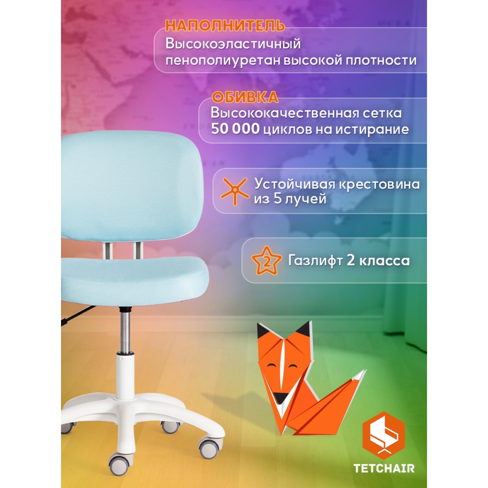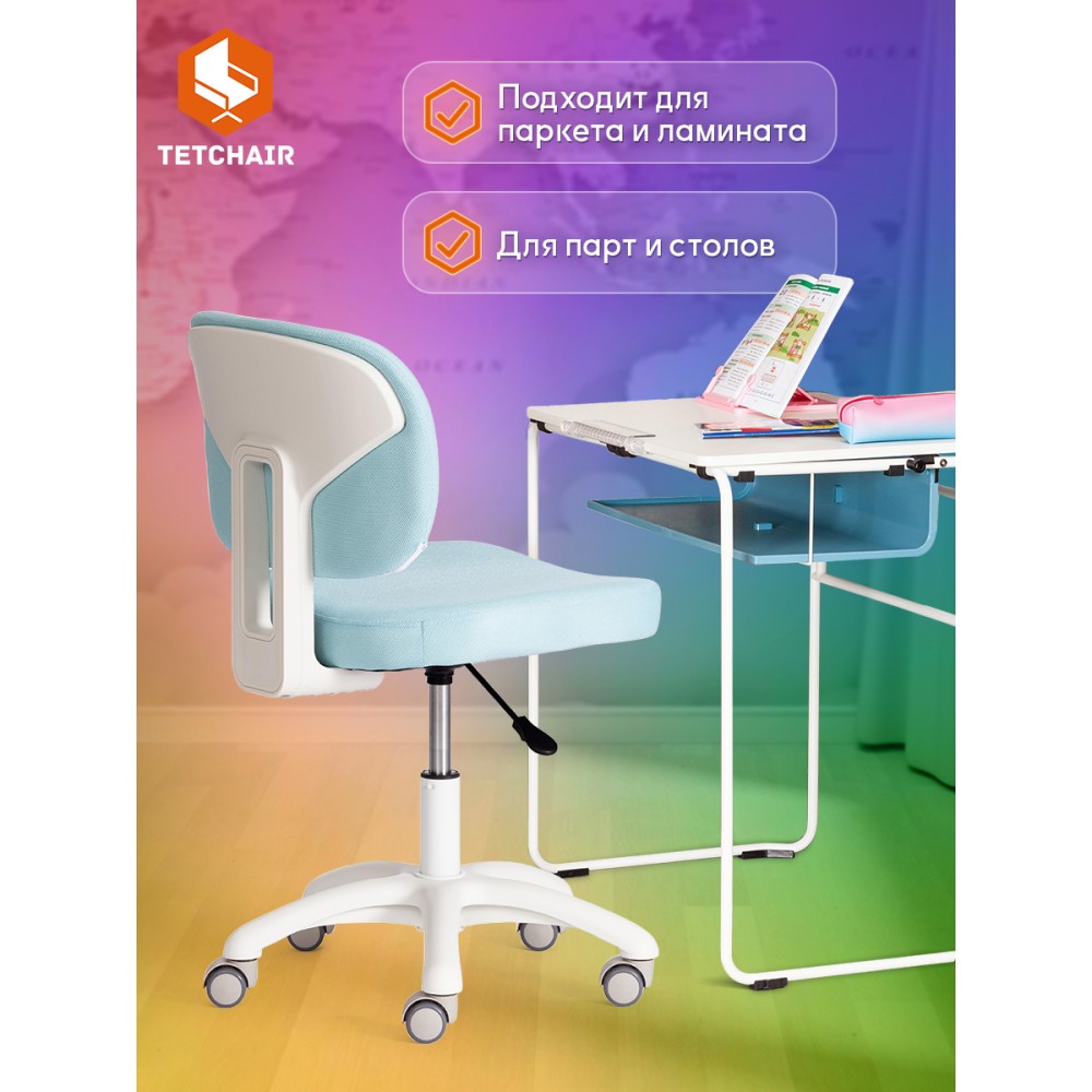 Детское компьютерное кресло Junior – идеальное решение в комнату ребенка младшего школьного возраста. Благодаря своему привлекательному дизайну модель отлично впишется в любой интерьер, создаст атмосферу уюта и легкости как в городской квартире так и в загородном доме. Прочная 5-лучевая крестовина из полипропилена диаметром 600 мм надежна и устойчива к усиленной эксплуатации. Кресло оснащено газлифтом 2 класса. Высококачественные ролики с функцией блокировки при нагрузке дополнительно прорезинены. Отлично подходят для использования на паркете и ламинате. Кресло регулируется по высоте. Эргономичное сиденье с мягким наполнителем из высокоэластичного пенополиуретана 30 кг/м3 не деформируется со временем, не накапливает пыль, хорошо пропускает воздух и отводит влагу, имеет долгий срок службы. Оригинальная модель обита износостойкой мебельной тканью, обладающей отличными эксплуатационными качествами, не требующей сложного ухода, выдерживающей 50 000 циклов на истирание по Мартиндейлу. Сочетание голубой ткани (Blue) и белого пластика выглядит стильно и воздушно. Детское кресло Junior удобно и функционально, будет восхищать вас и вашего ребенка своим первоначальным внешним видом на протяжении длительного времени. Максимальная нагрузка 80 кг. Кресло поставляется в разобранном виде. Необходима простая сборка по прилагаемой инструкции.