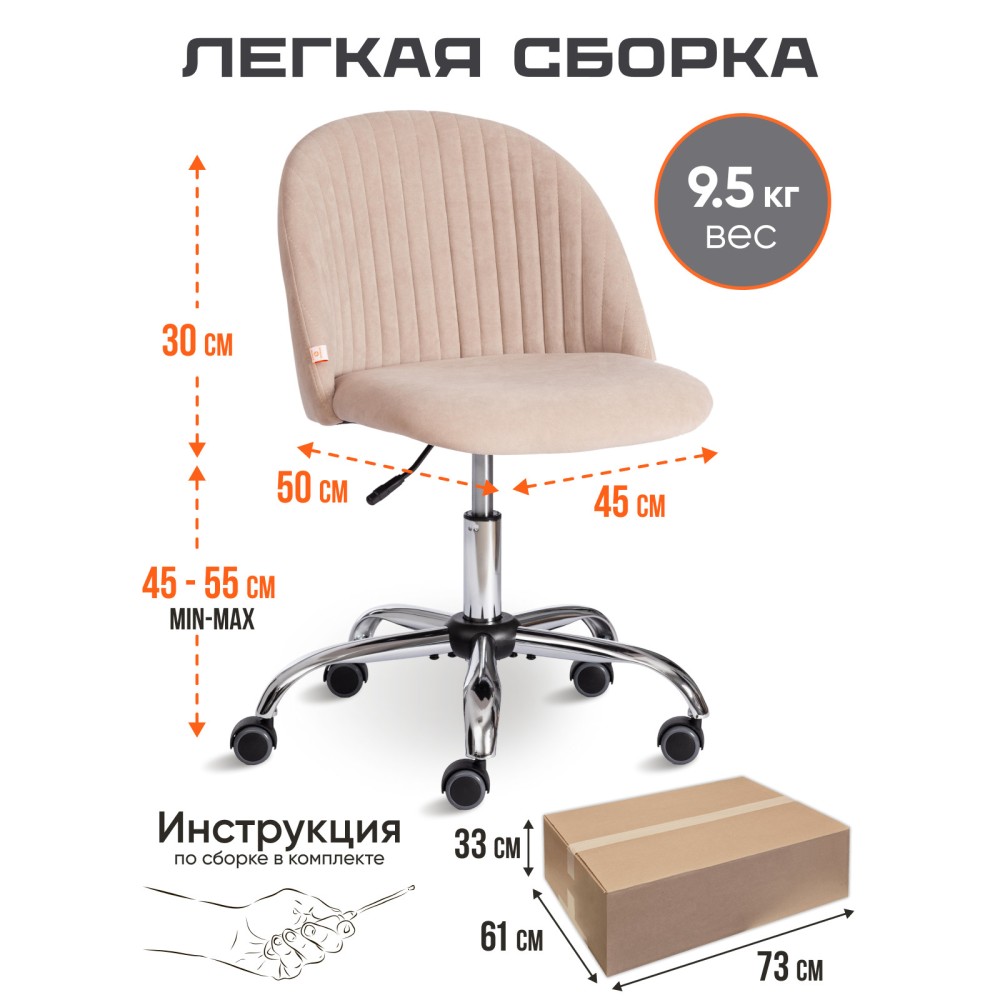 Яркий дизайн компьютерного кресла MELODY из коллекции OFFICE создаст в помещении атмосферу уюта и непринужденности. Модель будет отлично смотреться и в рабочем кабинете, и в комнате школьника. Крепкий каркас выполнен из фанеры толщиной более 10 мм – экологически чистого, надежного и долговечного материала. Сиденье с мягким наполнителем из пенополиуретана (до 35 кг/м2) стандартной плотности обладает высокими эксплуатационными качествами, не меняет форму со временем. Компьютерный стул регулируется по высоте с помощью специального прочного механизма. Металлическая хромированная крестовина устойчива, выдерживает большой вес, выглядит привлекательно и стильно. Полиуретановые ролики с прорезиненными вставками бесшумны, имеют долгий срок службы, не повреждают паркет и ламинате. Ролики и крестовина в креслах бренда TETCHAIR соответствуют стандарту BIFMA. Во всех креслах бренда TETCHAIR используются газлифты 3 класса, он способен выдерживать вес до 90 кг. Необычная декоративная стежка на спинке офисного кресла придает изделию особый шарм и оригинальность. Обивка из велюра или флока износостойка, прочна, проста в уходе, приятна на ощупь, сохраняет свой первоначальный вид на протяжении длительного времени. Ткань флок , используемая при изготовлении кресла, выдерживает до 50 000 циклов на истирание по Мартиндейлу, ткань велюр выдерживает до 60 000 циклов. Ткани с прочностью более 35 000 циклов являются самыми долговечными. Мебель, в которой используются такие ткани можно использовать не только дома но и в ресторанах, салонах красоты, приемных. Элегантное компьютерное кресло MELODY изготавливается в черном, сером, коричневом, бежевом, бордовом, оранжевом, розовом, фиолетовом цветах. Также представлены варианты с комбинированной клеткой и комбинированным рисунком. Офисное кресло поставляется в разобранном виде. Необходима простая сборка по прилагаемой инструкции. Максимальная нагрузка модели 90 кг.