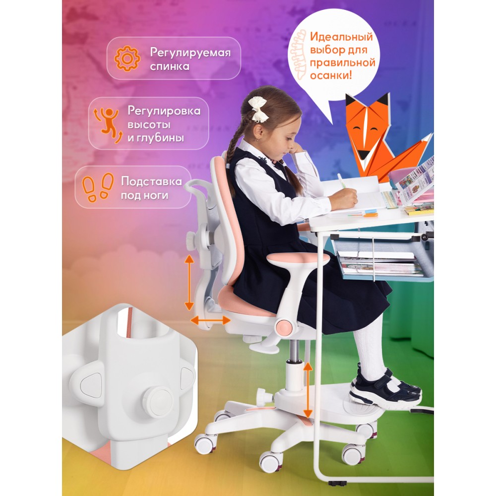 Эргономичная спинка, прочное основание, удобное сиденье детского компьютерного кресла MIRACLE - воплощение комфорта, практичности и оригинальности. Модель в цвете Pink (розовый) отлично впишется в дизайн комнаты школьника. Полипропиленовая крестовина диаметром 600 мм с декоративными вставками надежна и устойчива к усиленной эксплуатации. Модель оснащена газлифтом 3 класса. Высококачественные ролики с отключаемой функцией блокировки дополнительно прорезинены для предотвращения повреждения напольного покрытия. Отлично подходят для использования на паркете и ламинате. Кресло для школьника имеет регулировку глубины посадки, высоты спинки и сиденья. Откидные подлокотники декоративными вставками в цвет обивки помогут расслабиться и принять удобную позу. Эргономичное сиденье с мягким наполнителем из высокоэластичного пенополиуретана высокой плотности не деформируется со временем, не накапливает пыль, хорошо пропускает воздух и отводит влагу, имеет долгий срок службы. Анатомическая спинка с динамической поддержкой повторяет естественные изгибы спины, поддерживая позвоночник и поясницу в нужных точках. Для большего комфорта в кресле предусмотрена подставка для ног. Она вращается вокруг своей оси и регулируется по высоте. Оригинальная модель обита износостойкой мебельной тканью, обладающей отличными эксплуатационными качествами, не требующей сложного ухода, выдерживающей 50 000 циклов на истирание по Мартиндейлу. Детское кресло MIRACLE удобно, долговечно и функционально, будет радовать вас и вашего ребенка своим исходным видом на протяжении длительного времени. Стильный и яркий дизайн модели удивит даже самого требовательного владельца. Максимальная нагрузка 90 кг. Модель поставляется в разобранном виде. Необходима несложная сборка по прилагаемой инструкции.