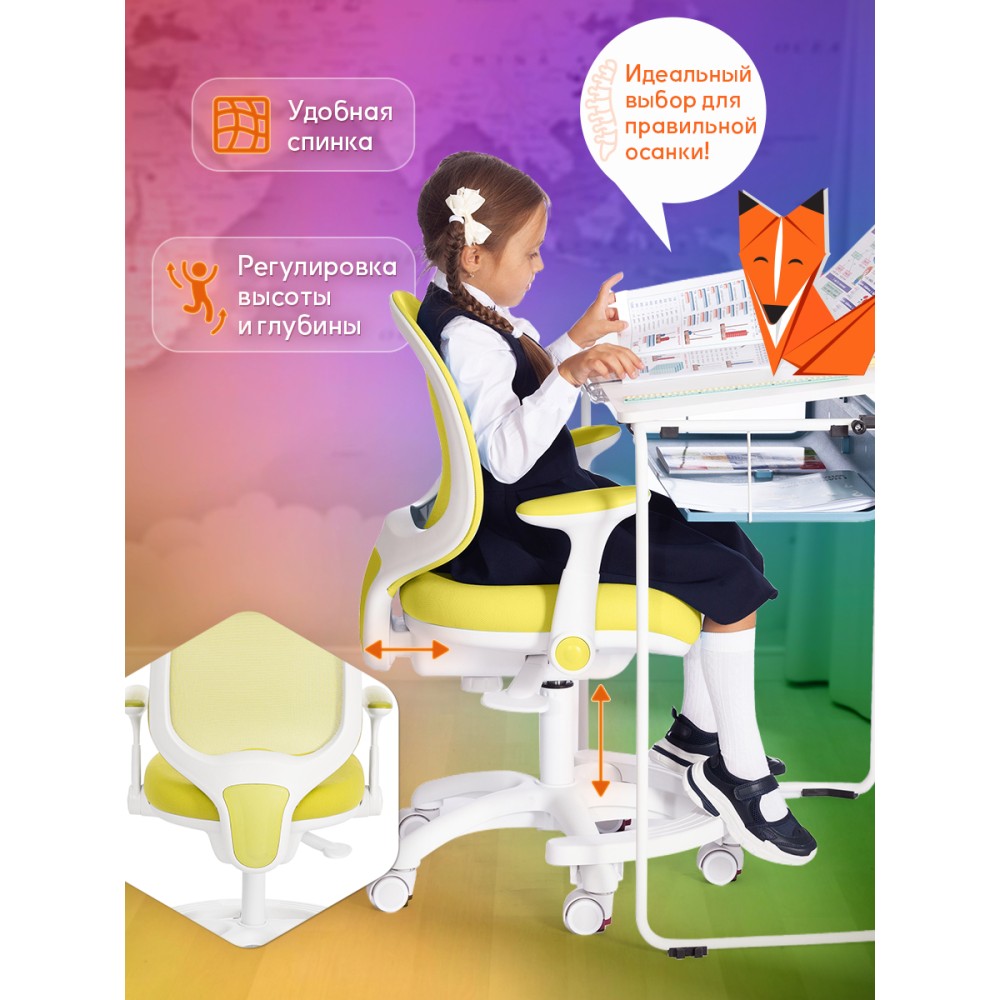 Оригинальный дизайн детского компьютерного кресла RAINBOW создаст в вашем доме атмосферу комфорта и уюта. Модель в цвете Green (салатовый) прекрасно впишется в интерьер комнаты школьника. Полипропиленовая крестовина диаметром 600 мм с подставкой под ноги устойчива, прочна и имеет долгий срок службы. Модель оснащена газлифтом 3 класса. Высококачественные ролики с отключаемой функцией блокировки дополнительно прорезинены для предотвращения повреждения напольного покрытия. Такие колесики отлично подходят для использования на паркете и ламинате. Откидные пластиковые подлокотники с декоративными накладками в цвет обивки, механизм регулировки глубины посадки и высоты сиденья помогут принять комфортную позу и снять напряжение с позвоночника. Сетчатая спинка обеспечит вентиляцию, что очень важно в летний период времени. Эргономичное сиденье с мягким наполнителем из высокоэластичного пенополиуретана высокой плотности не деформируется со временем, не накапливает пыль, хорошо пропускает воздух и отводит влагу. Детское мягкое кресло обито износостойкой мебельной тканью, выдерживающей 50 000 циклов на истирание по Мартиндейлу. Такой материал не требует специального ухода, обладает отличными эксплуатационными качествами. Модель выглядит стильно и необычно, станет ярким акцентом в комнате школьника, будет радовать своей долговечностью, красотой и практичностью продолжительное время. Максимальная нагрузка 90 кг. Модель поставляется в разобранном виде. Необходима несложная сборка по прилагаемой инструкции.