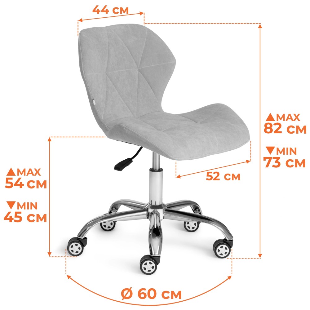 Современный стильный дизайн кресла SELFI из коллекции OFFICE станет прекрасным дополнением в интерьере рабочего кабинета загородного дома, городской квартиры или офиса или салона красоты. Модель, имеющая яркий дизайн и привлекательный внешний вид, понравится даже самому требовательному владельцу. Каркас выполнен из прочной, экологически безопасной и основательной фанеры толщиной более 10 мм. Сиденье с мягким наполнителем из пенополиуретана (до 35 кг/м2) стандартной плотности обладает долгим сроком службы, не меняет форму со временем, пропускает воздух, отводит влагу и не накапливает пыль. Элегантное кресло регулируется по высоте, что позволяет настроить его максимально комфортно для продолжительной работы. Модель обита флоком. Ткань флок, используемая при изготовлении кресла, выдерживает до 50 000 циклов на истирание по Мартиндейлу. Ткани с прочностью более 35 000 циклов являются самыми долговечными. Такой материал обладает повышенной износостойкостью и прочностью, хорошо отталкивает воду, не требует сложного ухода и чистки. Металлическая хромированная крестовина устойчива к усиленной эксплуатации, выглядит стильно и утонченно. Ролики из полиуретана с прорезиненными вставками не царапают напольное покрытие, бесшумны и украшены элегантными декоративными вставками. Ролики и крестовина в креслах бренда TETCHAIR соответствуют стандарту BIFMA. Во всех креслах бренда TETCHAIR используются газлифты 3 класса, он способен выдерживать вес до 90 кг. Оригинальная стежка на ткани кресла добавляет неповторимый и уникальный образ изделию. Модель SELFI представлена в нескольких цветовых вариантах: синем, розовом, коричневом, сером и оливковом. Кресло поставляется в разобранном виде. Необходима простая сборка по прилагаемой инструкции. Максимальная нагрузка 90 кг.