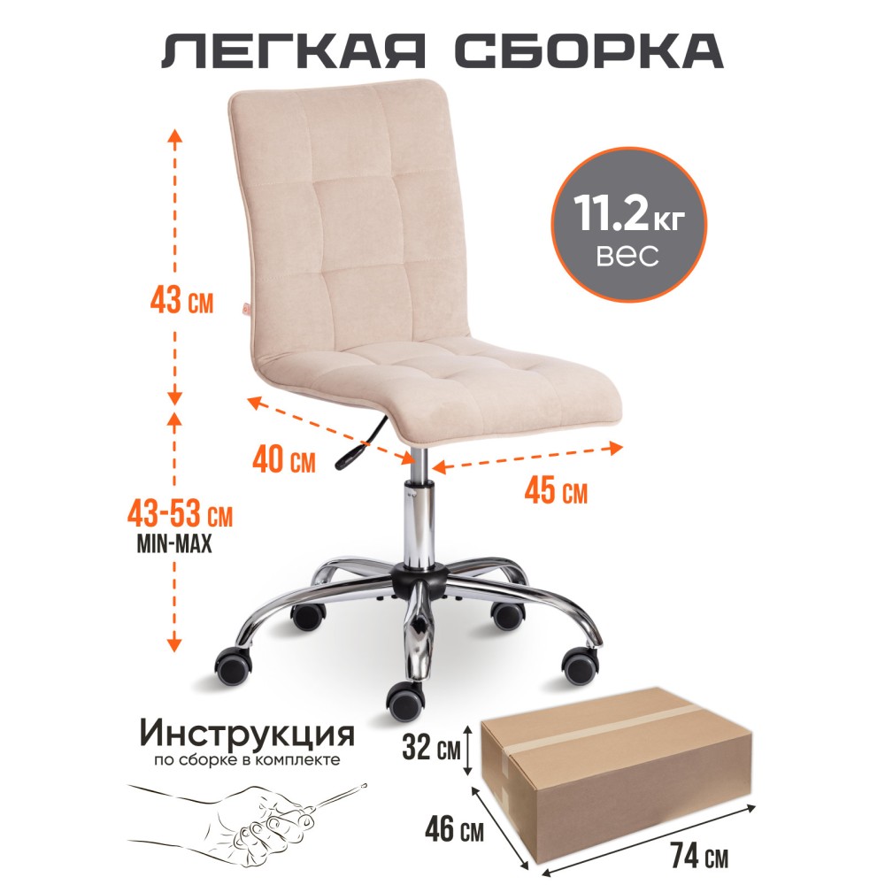 Эргономичная спинка, прочный каркас, мягкое сиденье компьютерного кресла ZERO из коллекции OFFICE - воплощение элегантности, практичности и оригинальности. Модель отлично подойдет как для комнаты школьника, так и для рабочего кабинета в офисе или дома. Каркас модели изготовлен из фанеры толщиной более 10 мм. Такой материал обладает отличными эксплуатационными качествами, прочен и долговечен. Сиденье кресла с мягким наполнителем из пенополиуретана стандартной плотности (до 35 кг/м2) не деформируется со временем, не накапливает пыль, хорошо пропускает воздух и отводит влагу, имеет долгий срок службы. В кресле установлен механизм плавной регулировки по высоте. Металлическая хромированная крестовина надежна, устойчива, способна выдерживать большие нагрузки. Полиуретановые ролики с прорезиненными вставками не шумят при передвижении кресла и не оставляют царапин на паркете или ламинате. Ролики и крестовина в креслах бренда TETCHAIR соответствуют стандарту BIFMA. Во всех креслах бренда TETCHAIR используются газлифты 3 класса, он способен выдерживать вес до 90 кг. при интенсивном использовании кресла. Рабочее кресло ZERO изготовлено из износостойкой высокопрочной экокожи, флока, велюра, а также из экокожи и сетки, ткани и сетки в нескольких вариантах: черном, коричневом, бежевом, сером, синем, бордовом, оливковом, розовом, горчичном, зеленом и белом цветах. Экокожа, используемая при изготовлении кресла, выдерживает до 50 000 циклов на истирание по Мартиндейлу, ткань флок также выдерживает до 50 000 циклов, ткань велюр выдерживает до 60 000 циклов. Ткани с прочностью более 35 000 циклов являются самыми долговечными. Мебель, в которой используются такие ткани можно использовать не только дома но и в ресторанах, салонах красоты, приемных. Элегантная модель не требует сложного ухода, практична, функциональна, обладает отличными эксплуатационными качествами, прослужит своему владельцу долгие годы. Кресло поставляется в разобранном виде. Необходима простая сборка по прилагаемой инструкции. Максимальная нагрузка 90 кг.