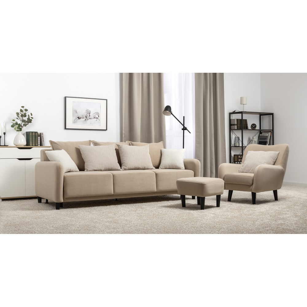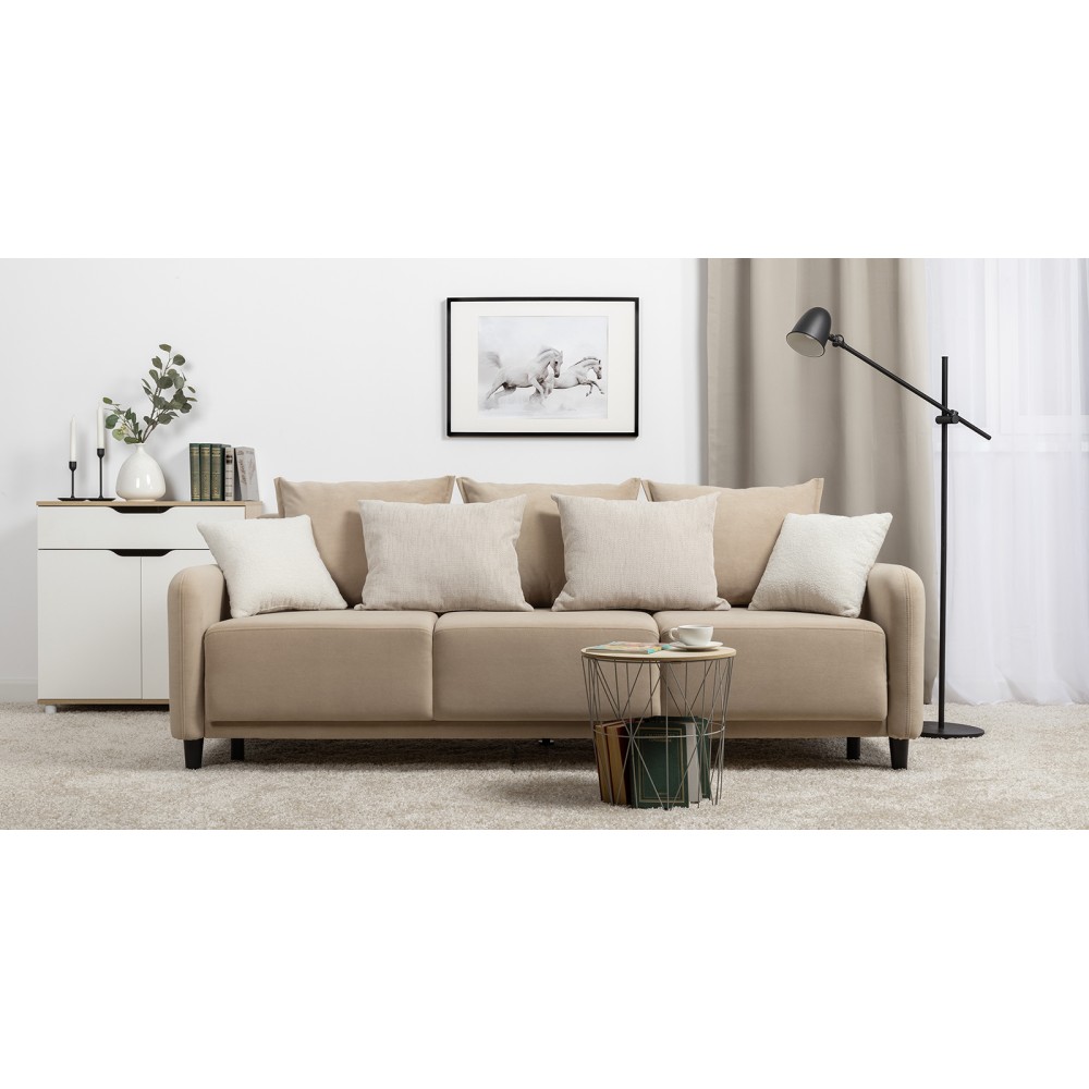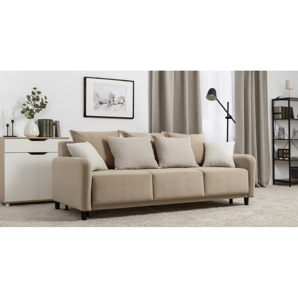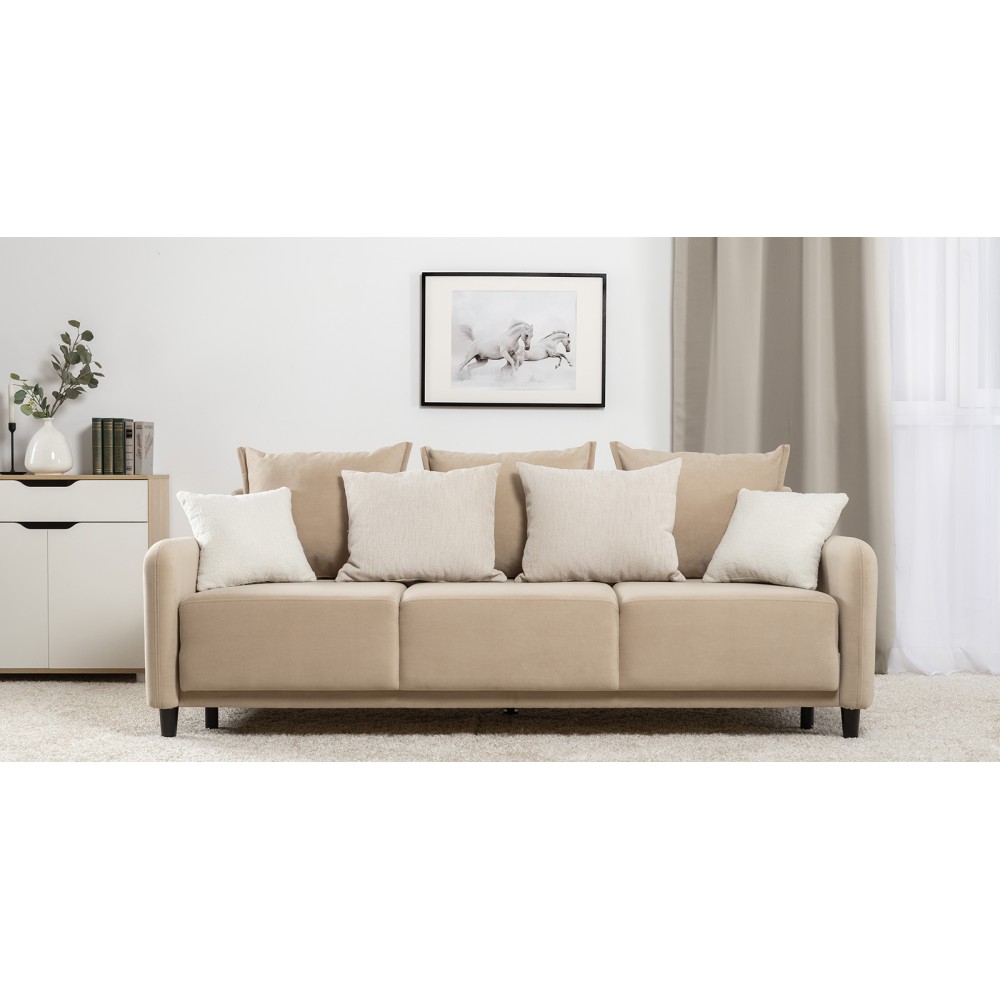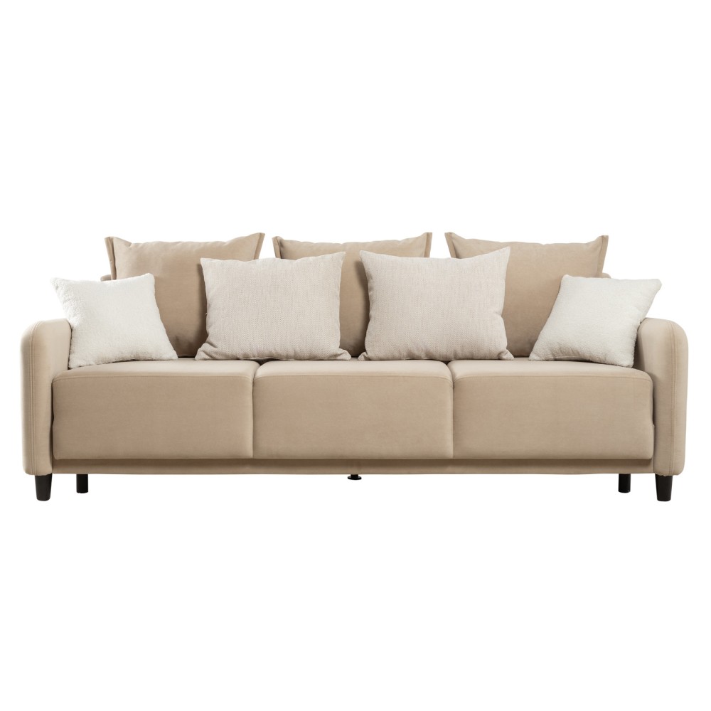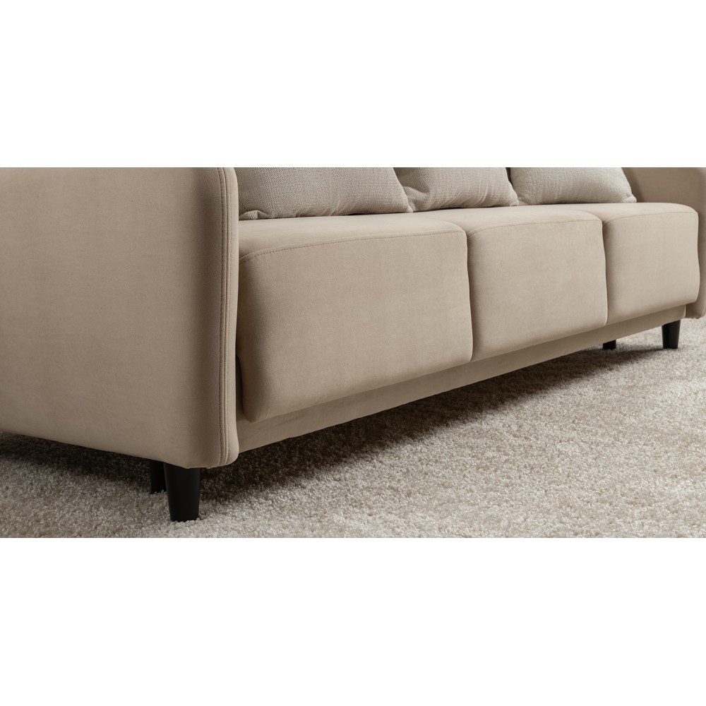 Диван-кровать «Дакота» — это стильное и функциональное решение для вашей гостиной. Опоры из массива дерева придают ему изысканный вид, а объёмные подушки обеспечивают комфорт во время отдыха. В комплекте идут пять двусторонних приспинных подушек и две декоративные подушки-думки из ткани букле. Благодаря надёжному механизму трансформации и ровному спальному месту, вы сможете наслаждаться полноценным сном.