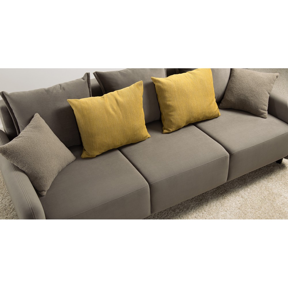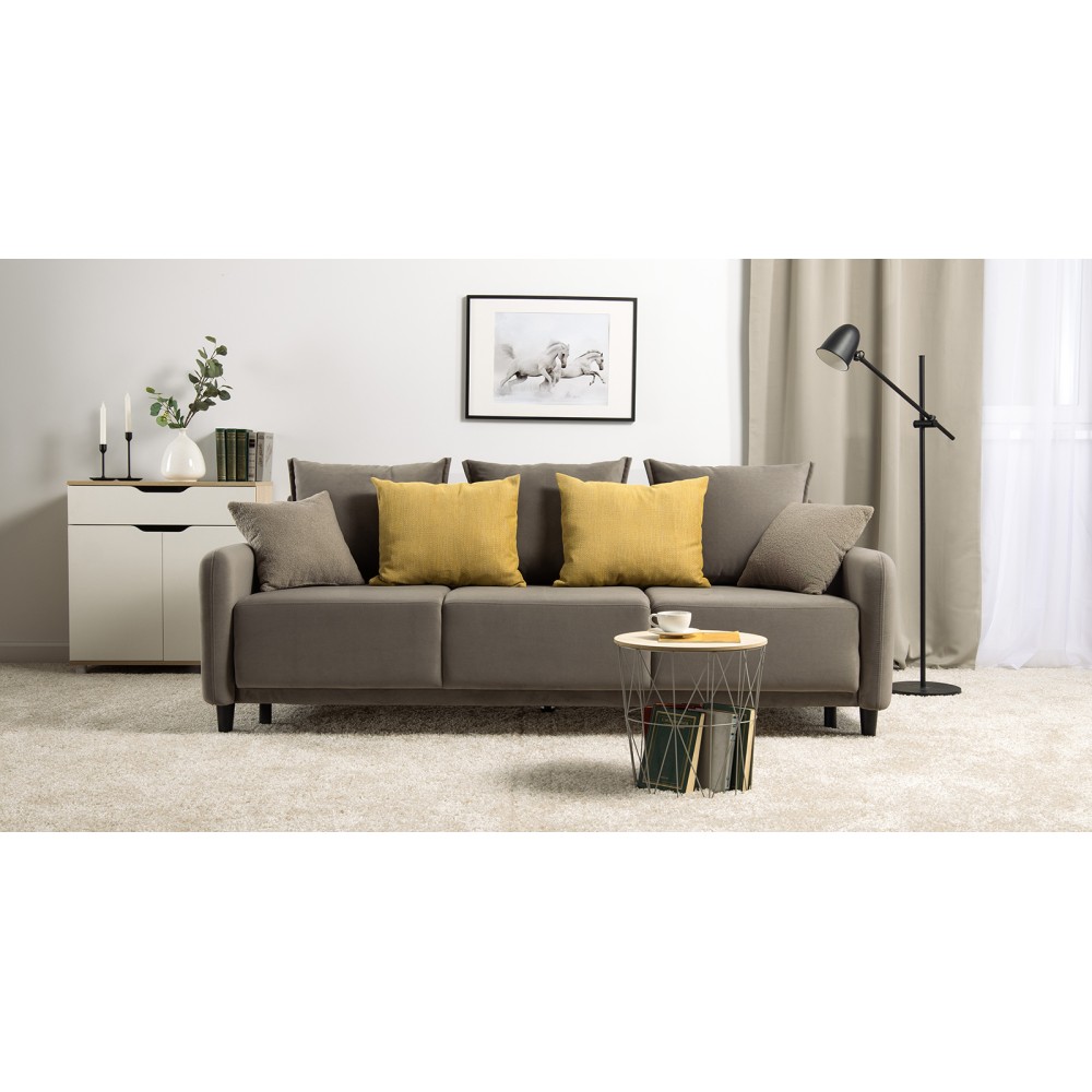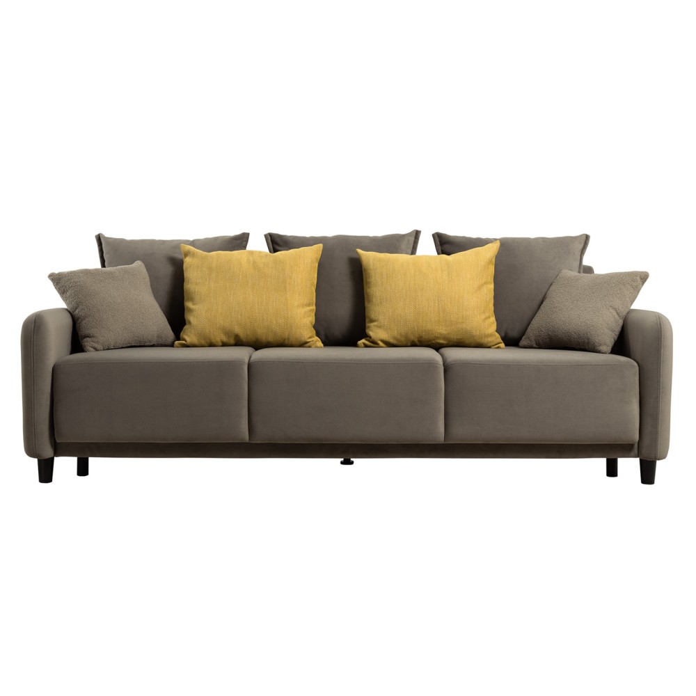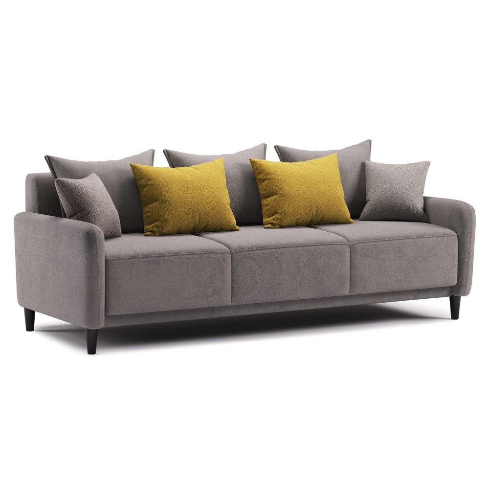 Диван-кровать «Дакота» — это стильное и функциональное решение для вашей гостиной. Опоры из массива дерева придают ему изысканный вид, а объёмные подушки обеспечивают комфорт во время отдыха. В комплекте идут пять двусторонних приспинных подушек и две декоративные подушки-думки из ткани букле. Благодаря надёжному механизму трансформации и ровному спальному месту, вы сможете наслаждаться полноценным сном.