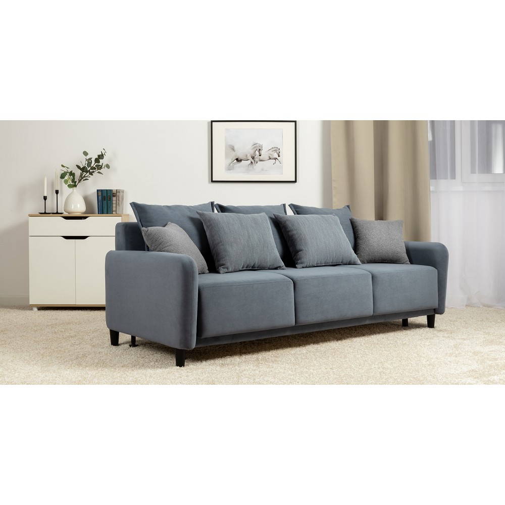 Диван-кровать «Дакота» — это стильное и функциональное решение для вашей гостиной. Опоры из массива дерева придают ему изысканный вид, а объёмные подушки обеспечивают комфорт во время отдыха. В комплекте идут пять двусторонних приспинных подушек и две декоративные подушки-думки из ткани букле. Благодаря надёжному механизму трансформации и ровному спальному месту, вы сможете наслаждаться полноценным сном.