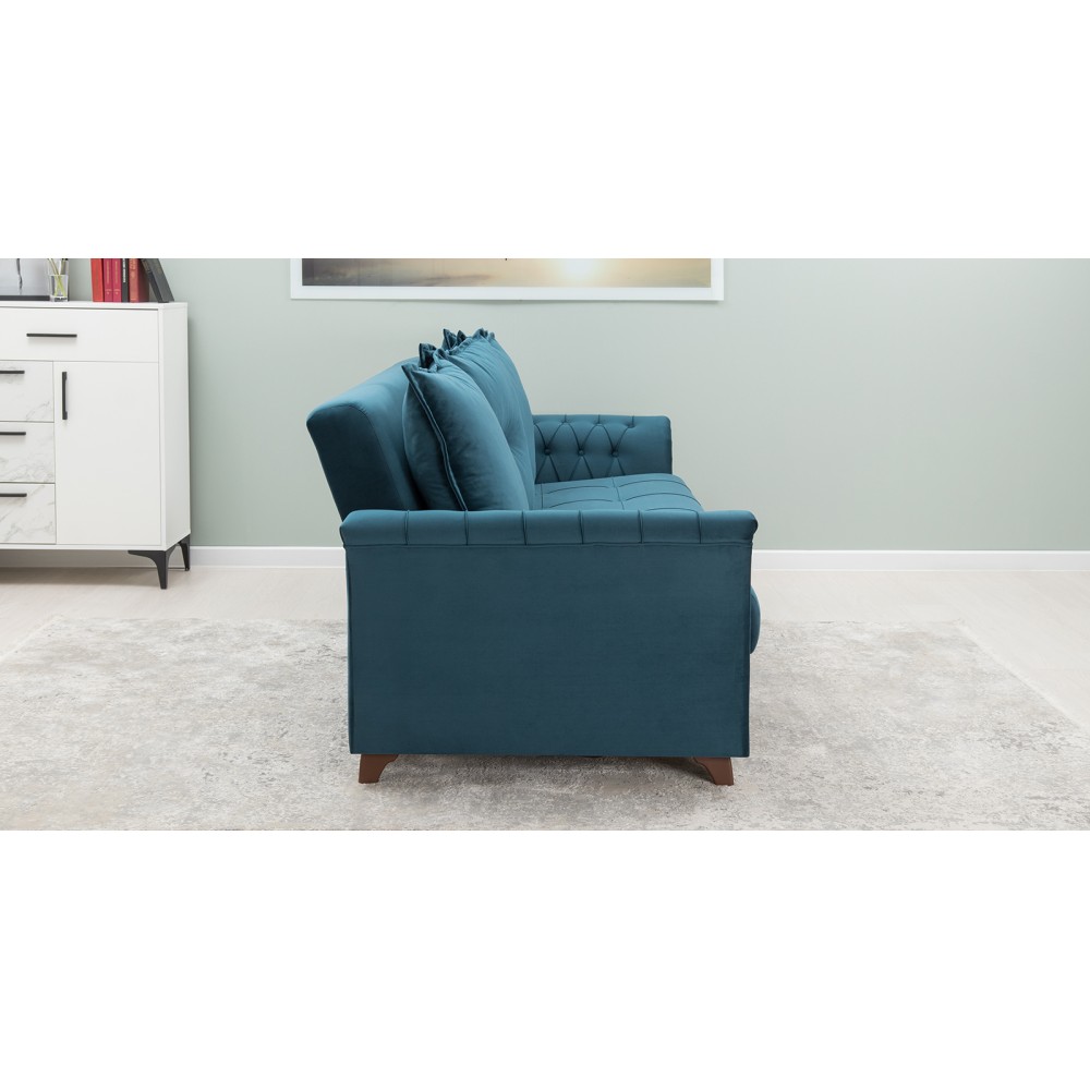 Обивка дивана-кровати выполнена из велюра Tenerife, состоящего из 100 % полиэстера. Велюр обладает объёмным густым ворсом, тактильной мягкостью и устойчивостью к зацепкам. Благодаря технологии бондинга Circle knitting волокна защищены от деформации, а устойчивость цвета к ультрафиолетовым лучам, сухому и мокрому трению гарантирует сохранение первоначального вида изделия на протяжении всего срока эксплуатации.