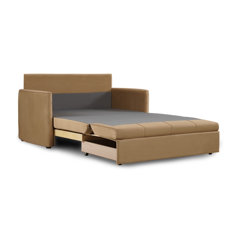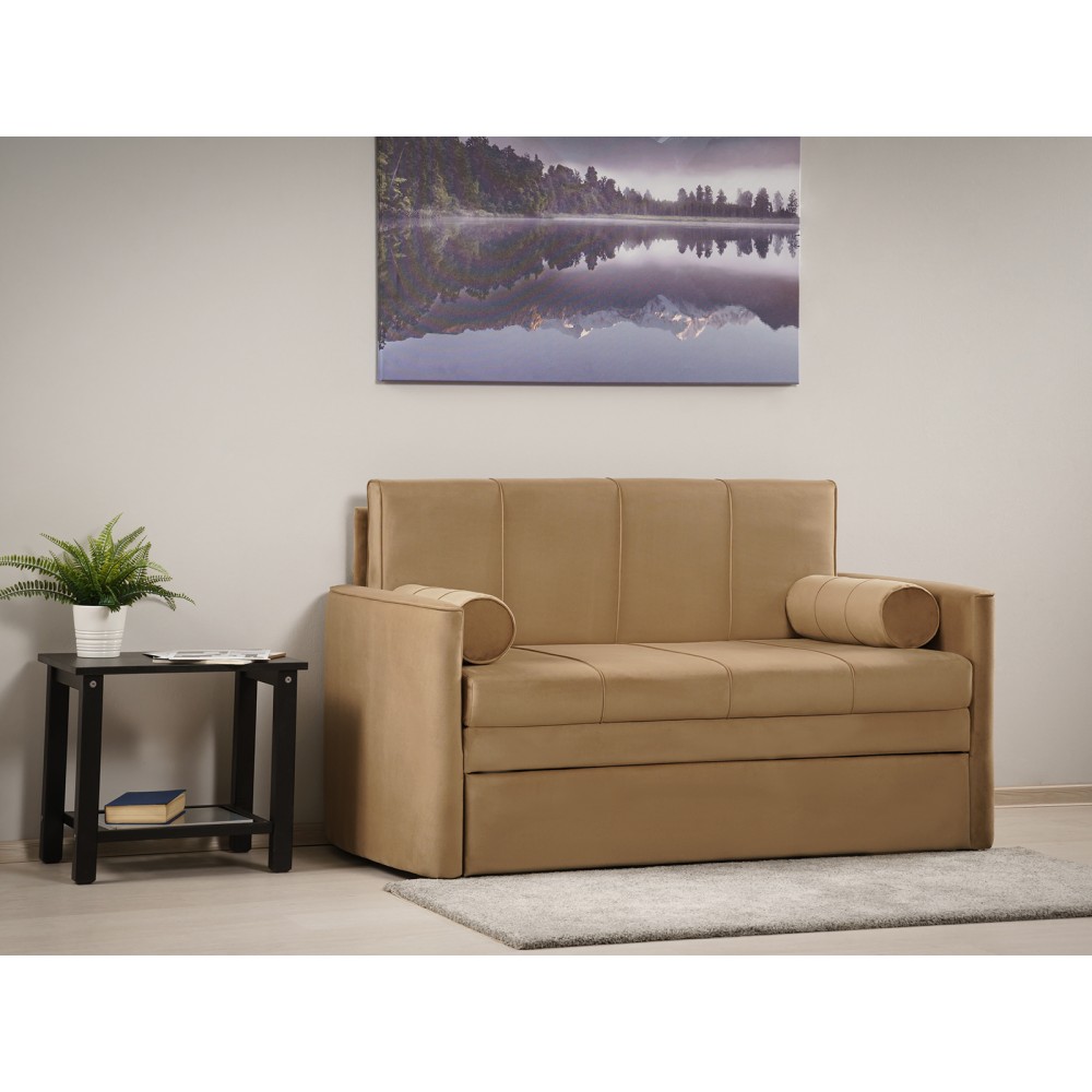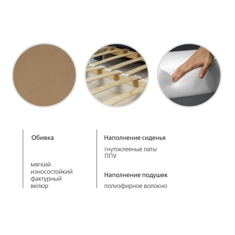 Диван-кровать Мелани Р (120) — это компактный современный диванчик со скруглёнными подлокотниками и кантами, подчёркивающими его эргономичность. Простой и надёжный механизм трансформации обеспечивает удобное спальное место для ребёнка или подростка. Также диван можно использовать как гостевое спальное место для взрослых. Размер спального места составляет 195 x 120 см, имеется небольшой бельевой ящик. Диван выполнен в мягком фактурном велюре с «пальчиковым эффектом» средней интенсивности. Опоры чёрного цвета, круглые, высотой 25 мм, изготовлены из высококачественного пластика. Прочность конструкции обеспечивается рёбрами жёсткости и внутренним креплением фурнитуры.