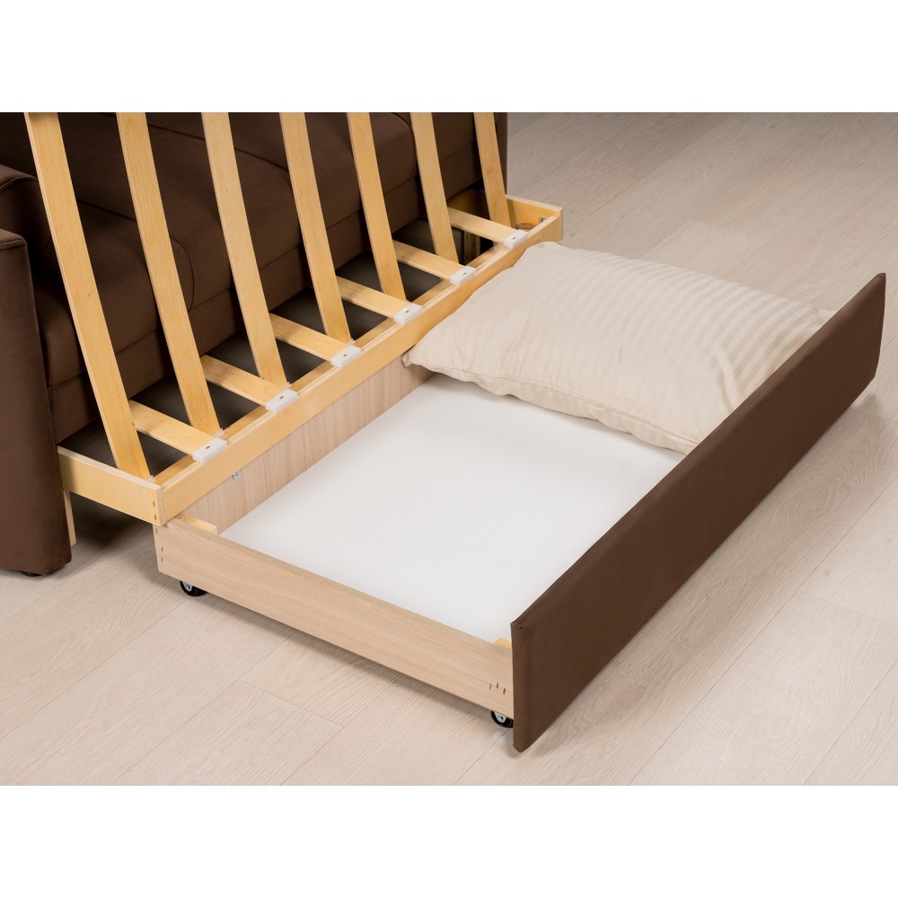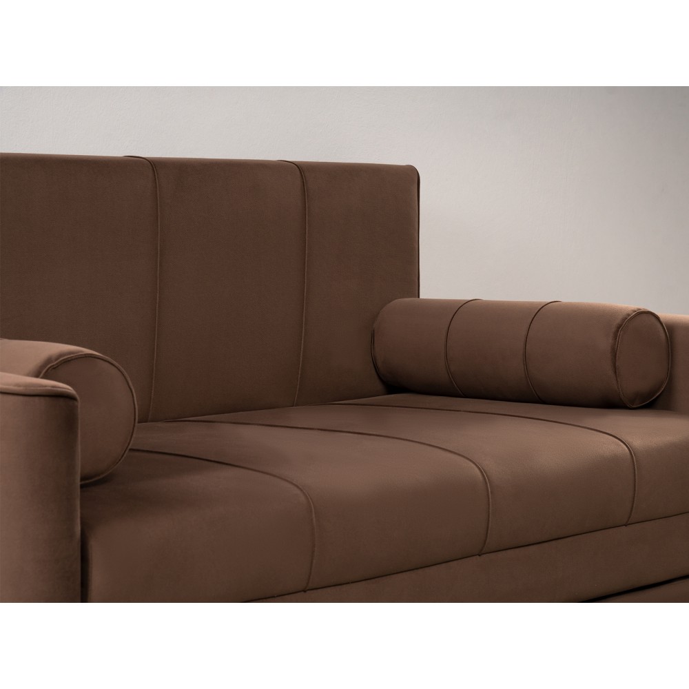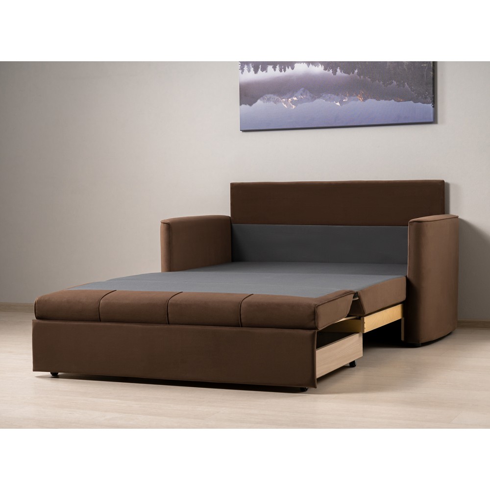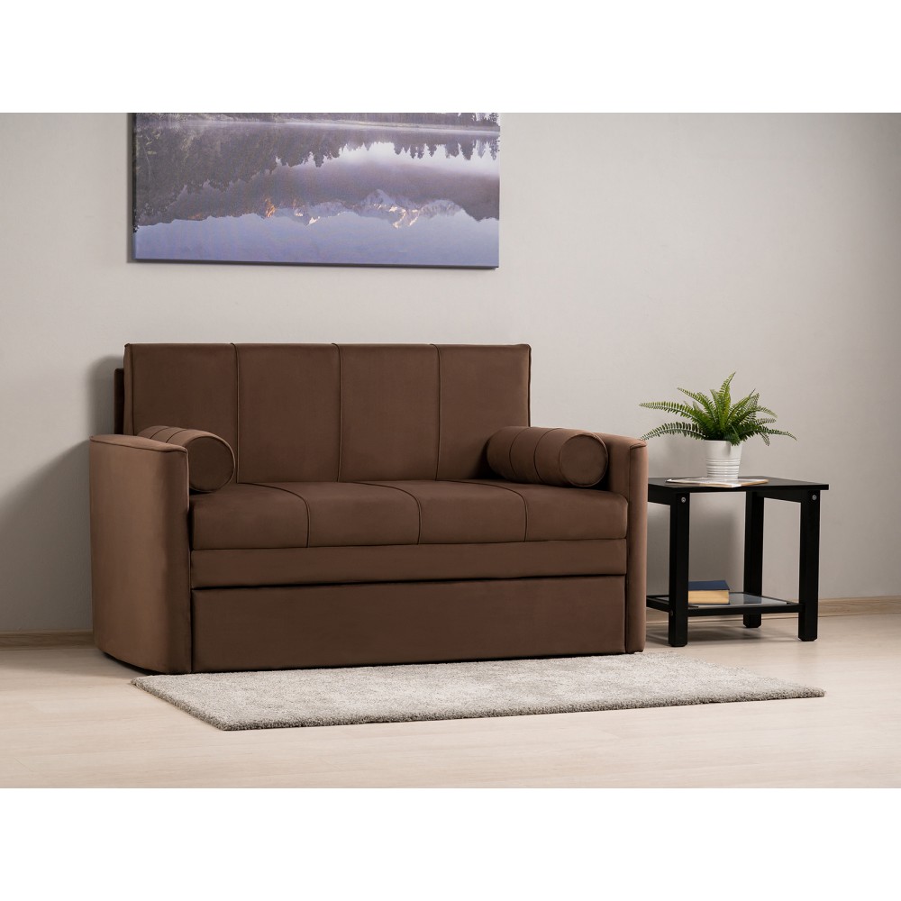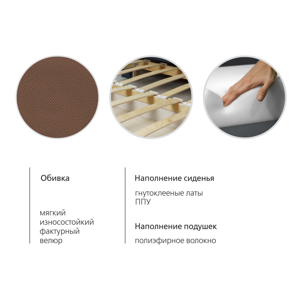 Диван-кровать Мелани Р (120) — это компактный современный диванчик со скруглёнными подлокотниками и кантами, подчёркивающими его эргономичность. Простой и надёжный механизм трансформации обеспечивает удобное спальное место для ребёнка или подростка. Также диван можно использовать как гостевое спальное место для взрослых. Размер спального места составляет 195 x 120 см, имеется небольшой бельевой ящик. Диван выполнен в мягком фактурном велюре с «пальчиковым эффектом» средней интенсивности. Опоры чёрного цвета, круглые, высотой 25 мм, изготовлены из высококачественного пластика. Прочность конструкции обеспечивается рёбрами жёсткости и внутренним креплением фурнитуры.