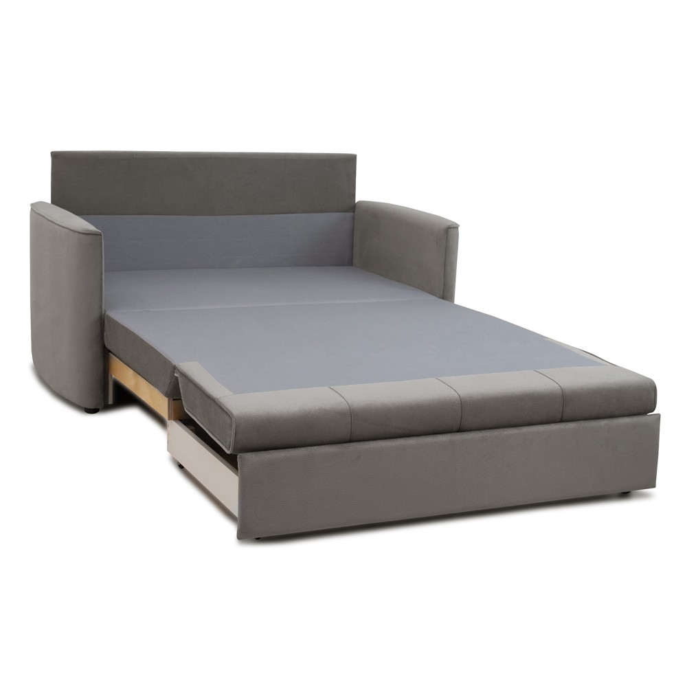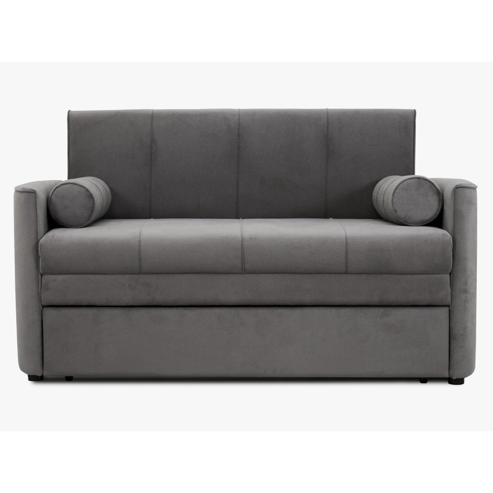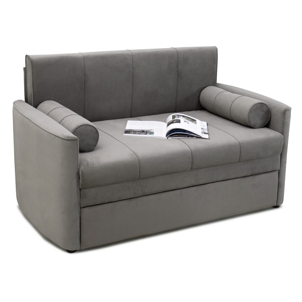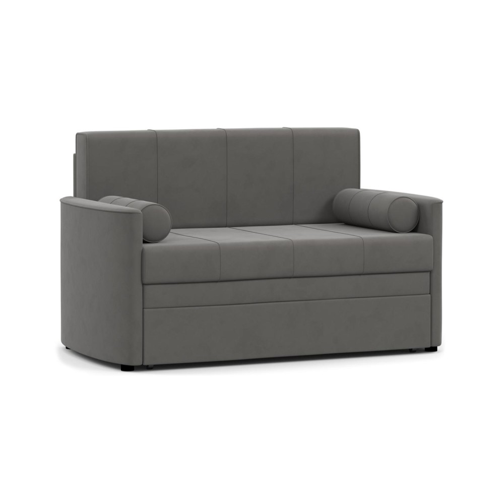 Диван-кровать Мелани Р (120) — это компактный современный диванчик со скруглёнными подлокотниками и кантами, подчёркивающими его эргономичность. Простой и надёжный механизм трансформации обеспечивает удобное спальное место для ребёнка или подростка. Также диван можно использовать как гостевое спальное место для взрослых. Размер спального места составляет 195 x 120 см, имеется небольшой бельевой ящик. Диван выполнен в мягком фактурном велюре с «пальчиковым эффектом» средней интенсивности. Опоры чёрного цвета, круглые, высотой 25 мм, изготовлены из высококачественного пластика. Прочность конструкции обеспечивается рёбрами жёсткости и внутренним креплением фурнитуры.