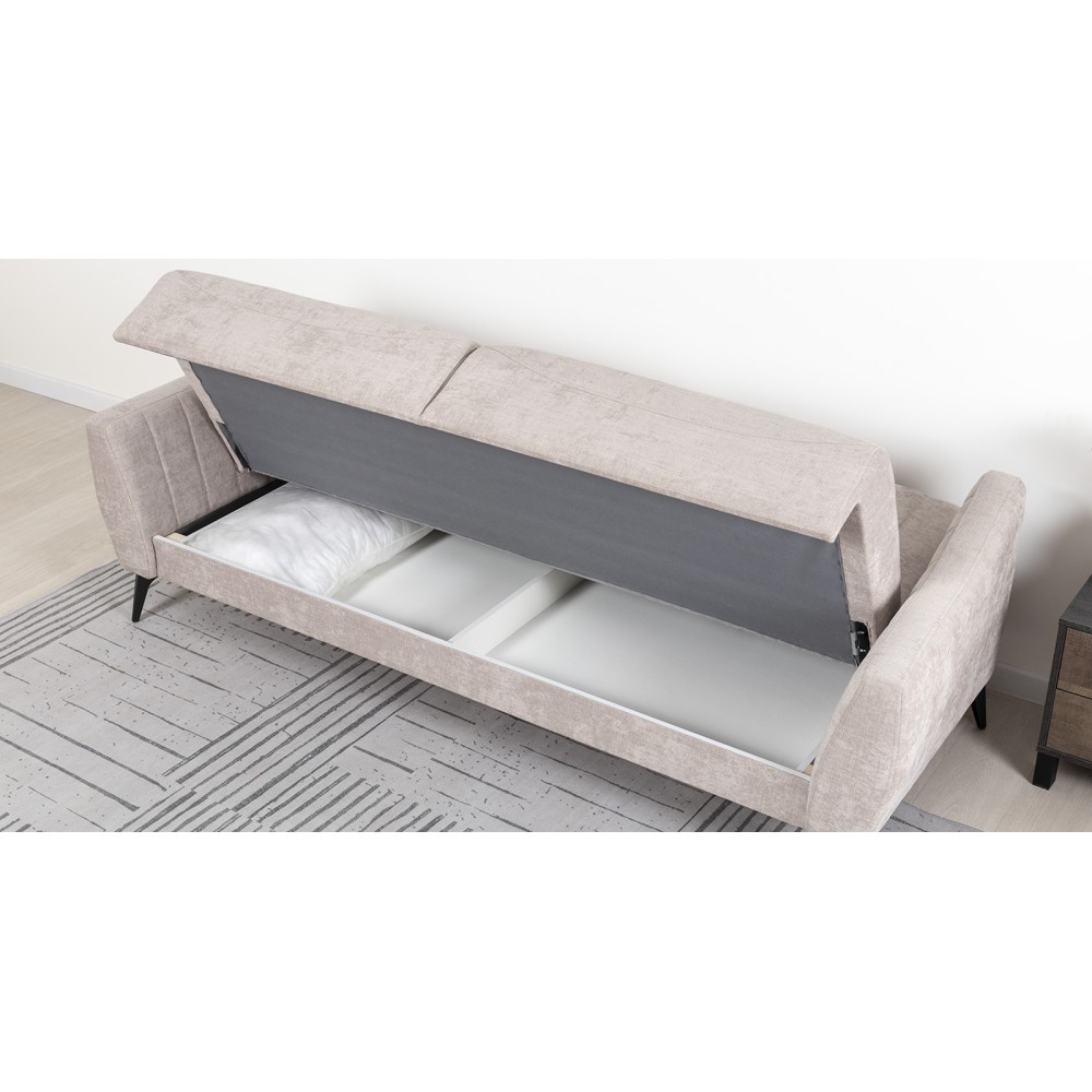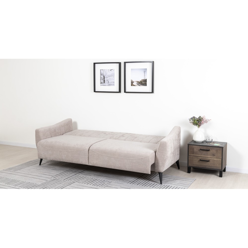 Посадочная и спальная зоны при раскладывании равны, что обеспечивает хороший сон. Механизм трансформации - книжка. Раскладной диван представляет больше возможностей для обустройства интерьера. Черные металлические ножки дивана высотой 160 мм позволят использовать его в интерьере лофт.