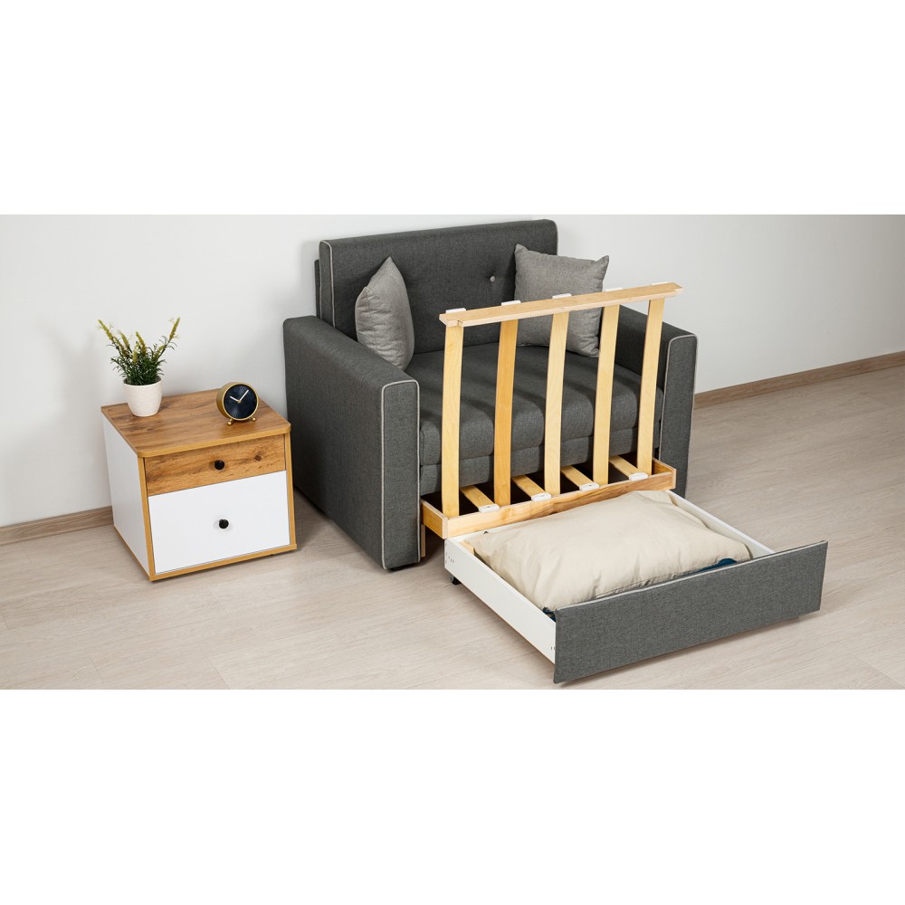 Диван-кровать Найс — это компактное и стильное решение для гостиной, квартиры-студии, детской или комнаты подростка. Он может служить постоянным спальным местом для ребёнка или подростка или гостевым спальным местом для взрослых.