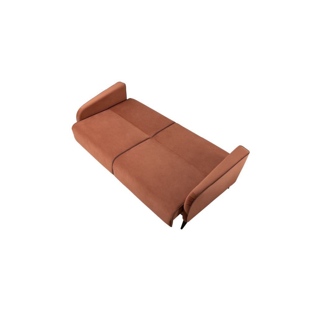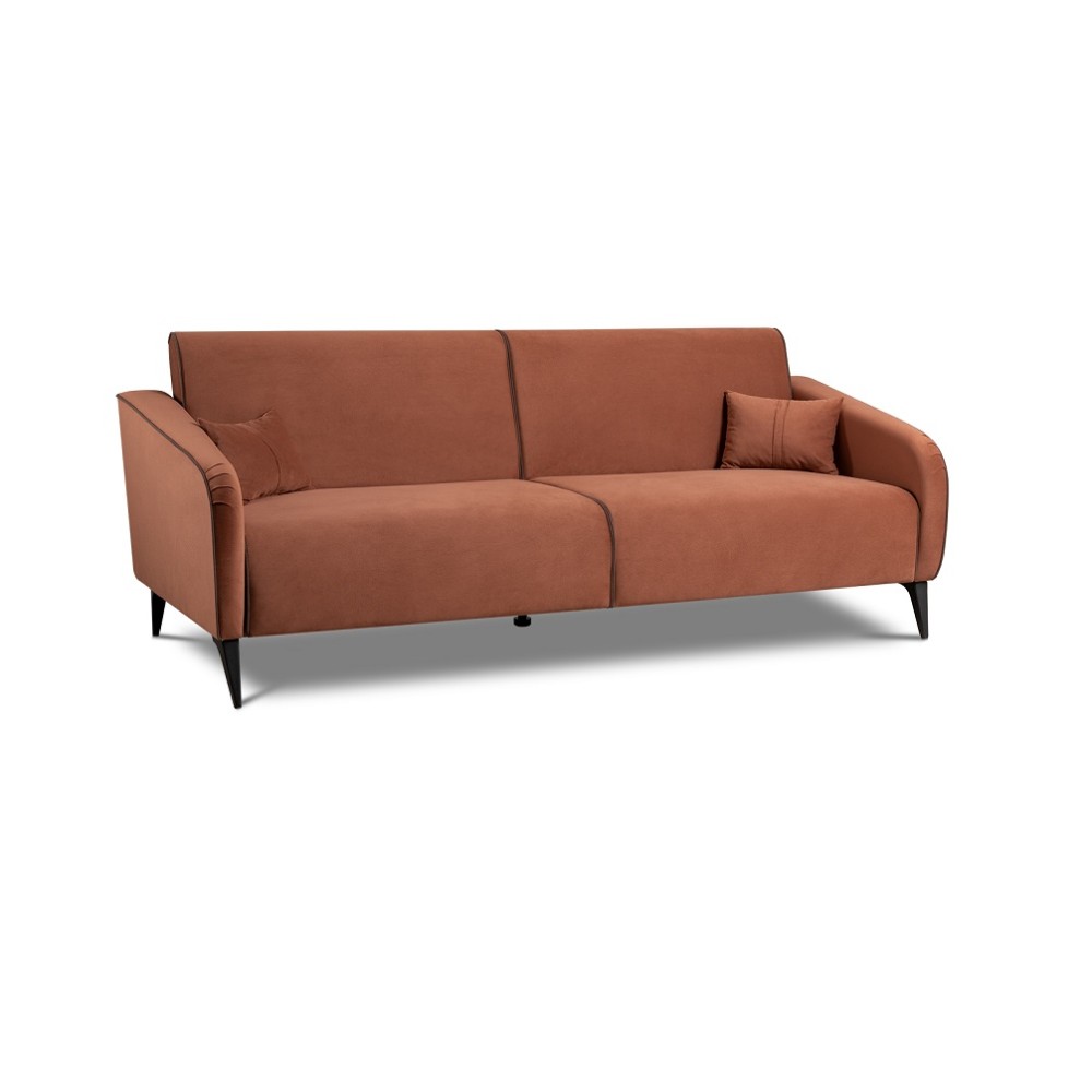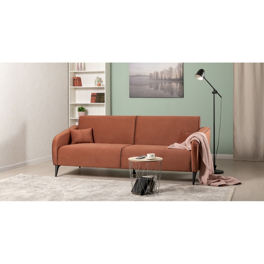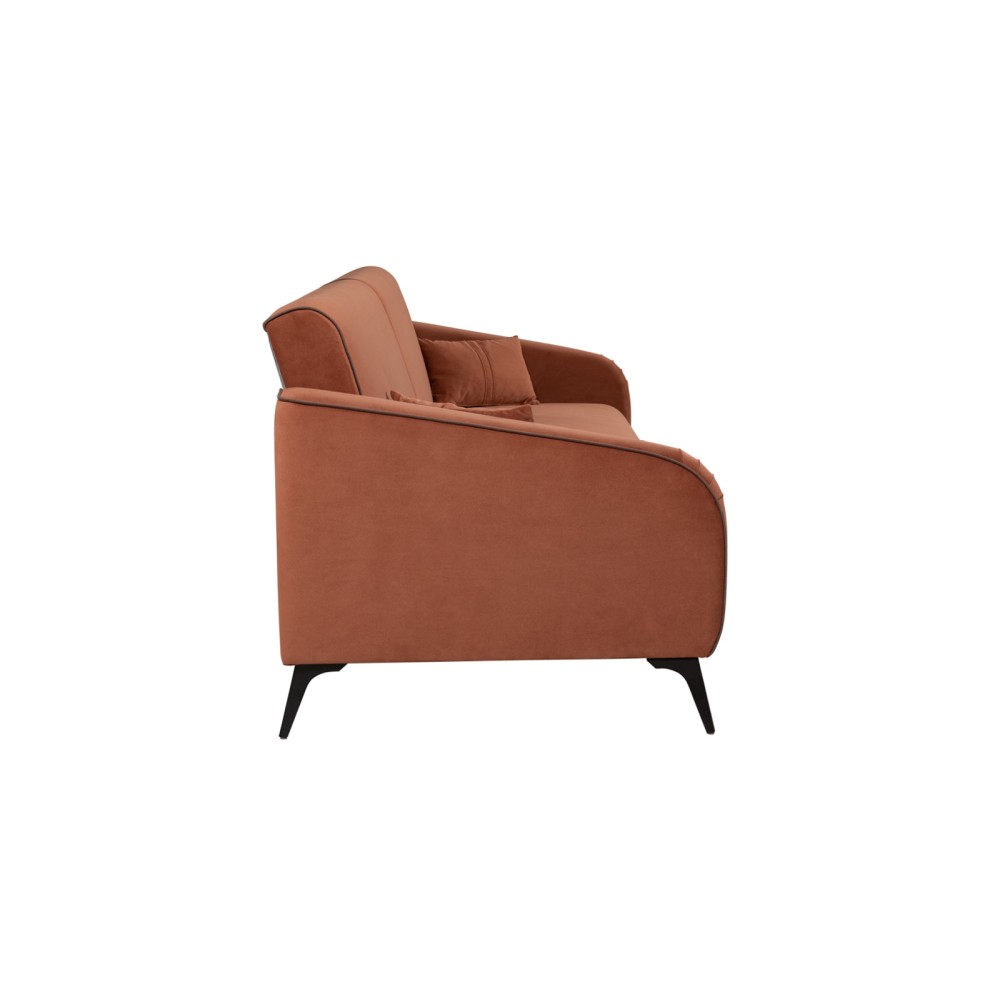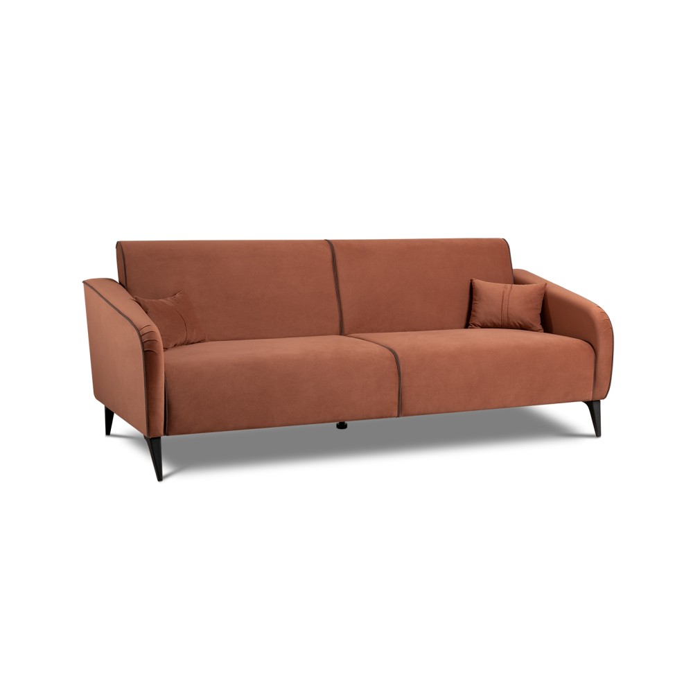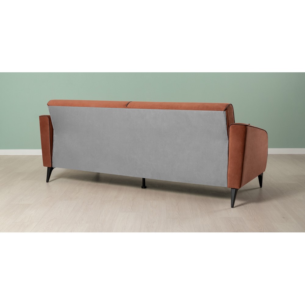 Обивка дивана выполнена из велюра — высококачественного материала, состоящего из 100 % полиэстера. Велюр обладает высокой износостойкостью, легко чистится и имеет средневыраженный «пальчиковый эффект», что обеспечивает долговечность и приятный внешний вид изделия.