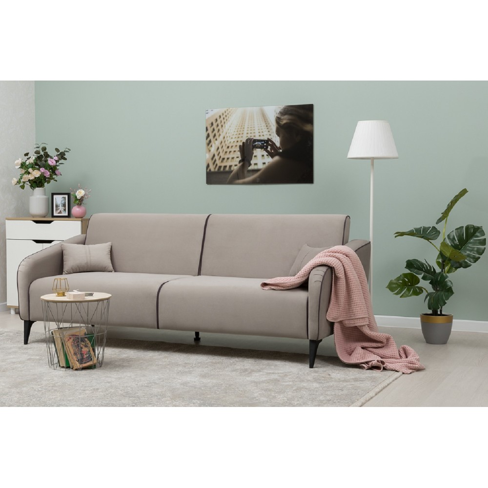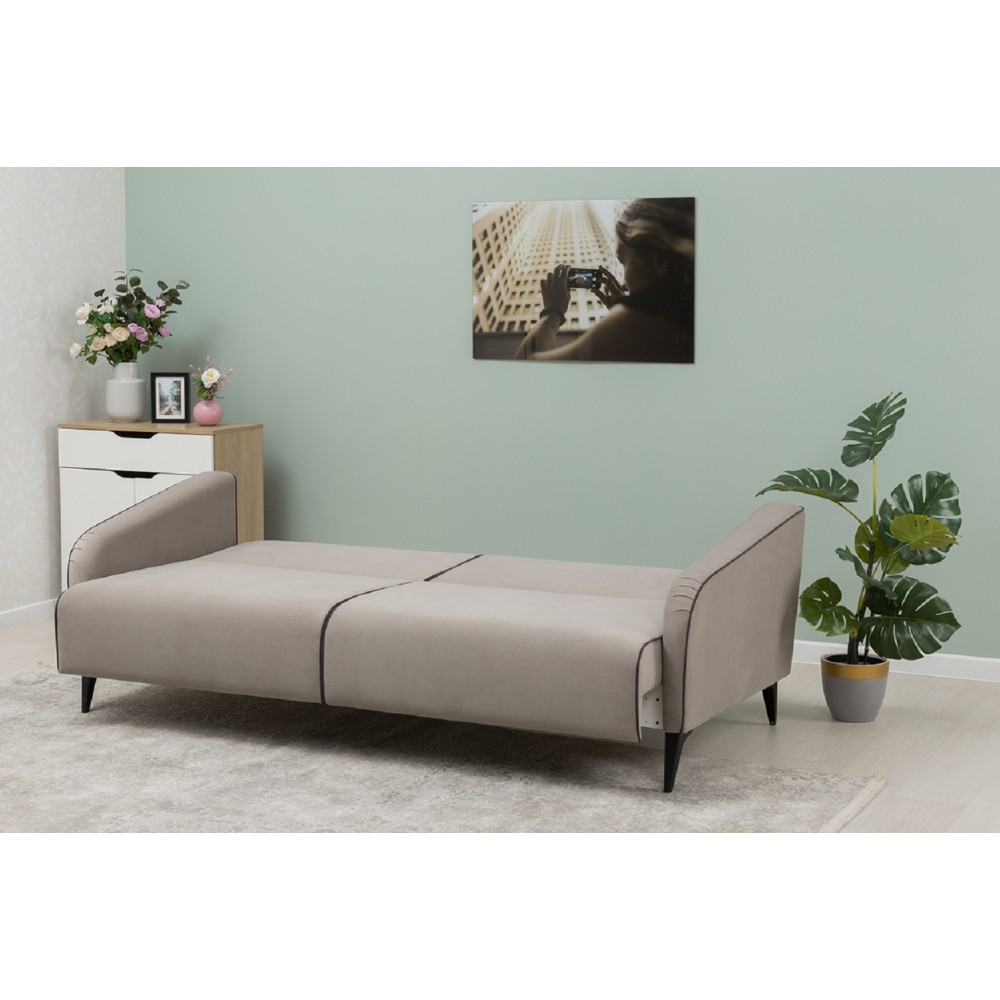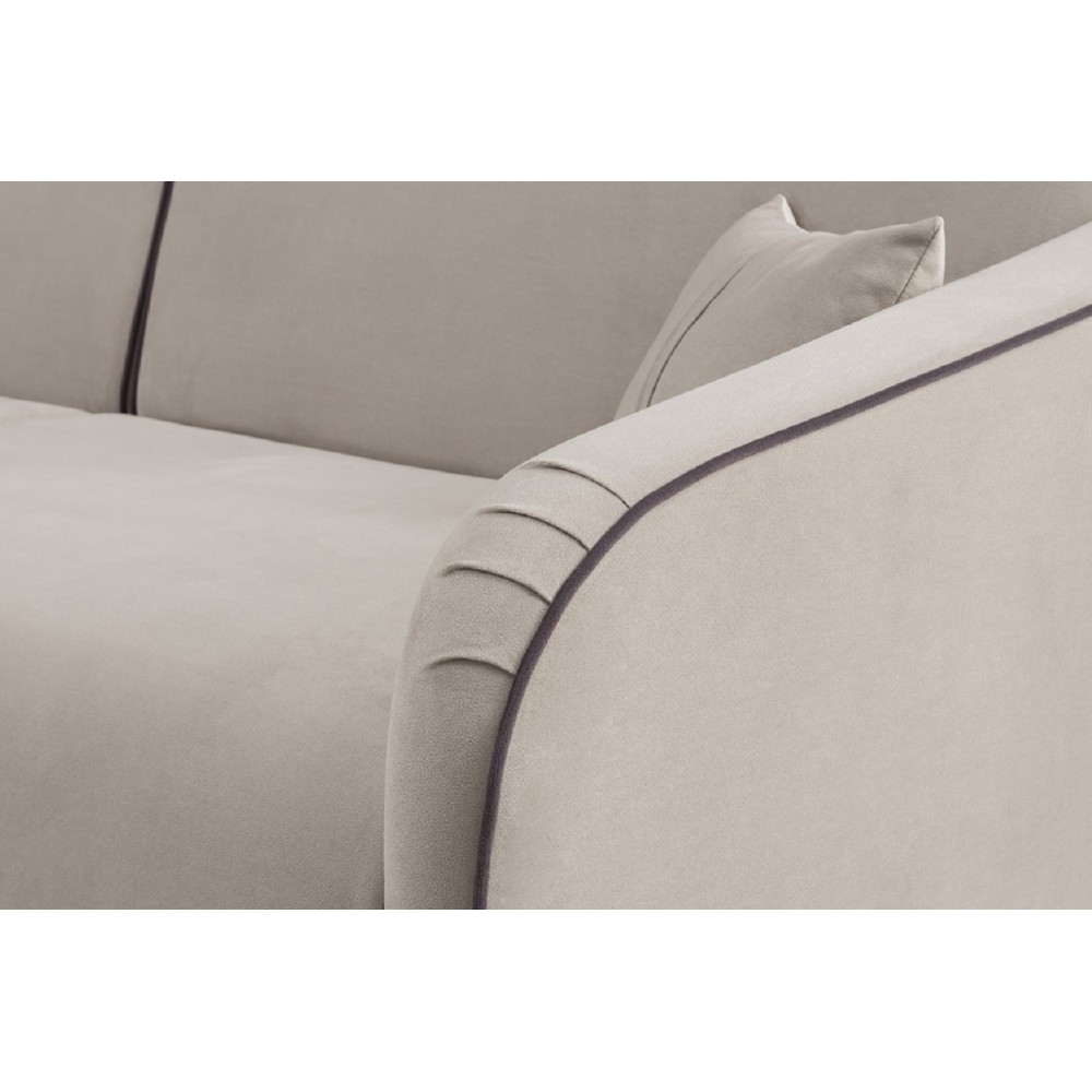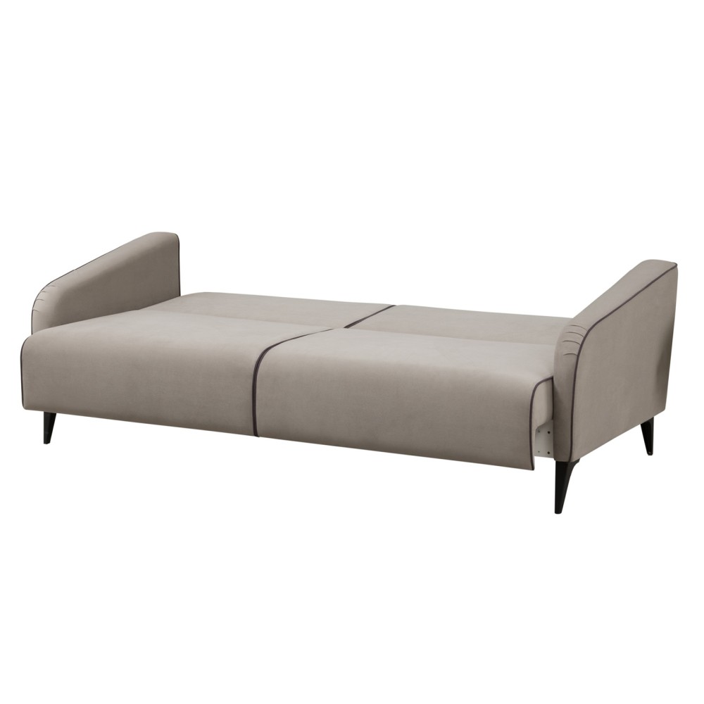 Обивка дивана выполнена из велюра — высококачественного материала, состоящего из 100 % полиэстера. Велюр обладает высокой износостойкостью, легко чистится и имеет средневыраженный «пальчиковый эффект», что обеспечивает долговечность и приятный внешний вид изделия.